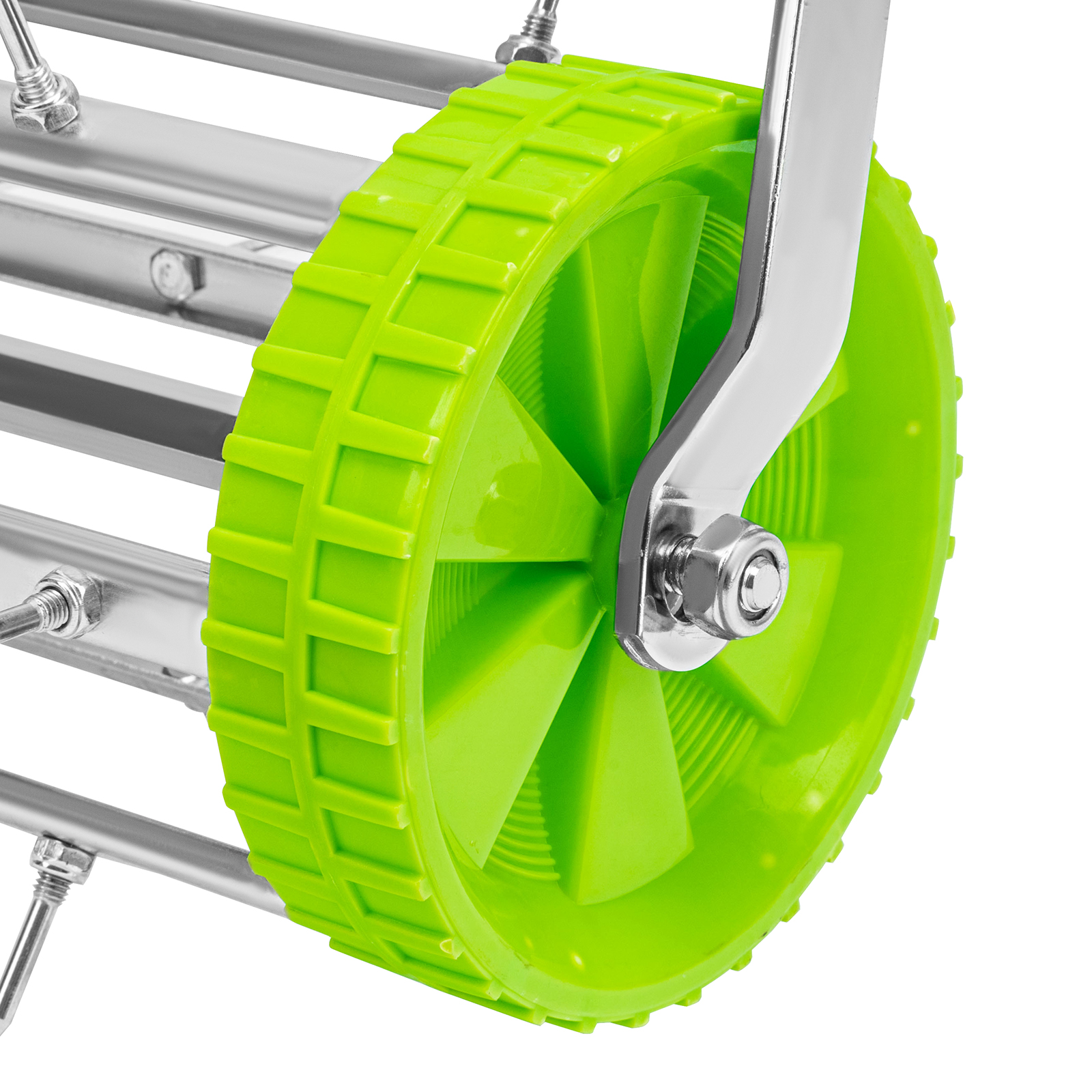 - Легкое перемещение по газону — аэратор оснащен удобными пластиковыми колесами.