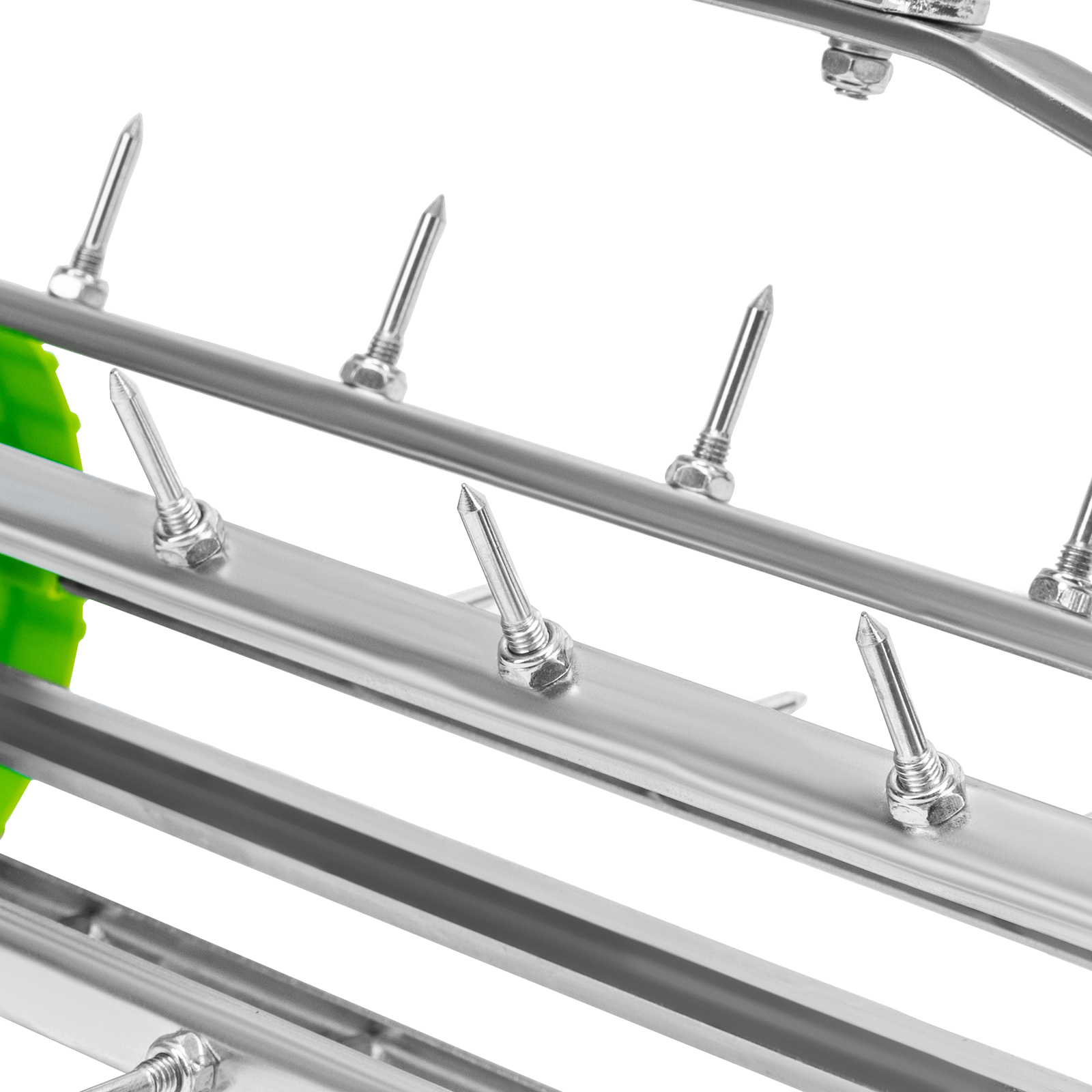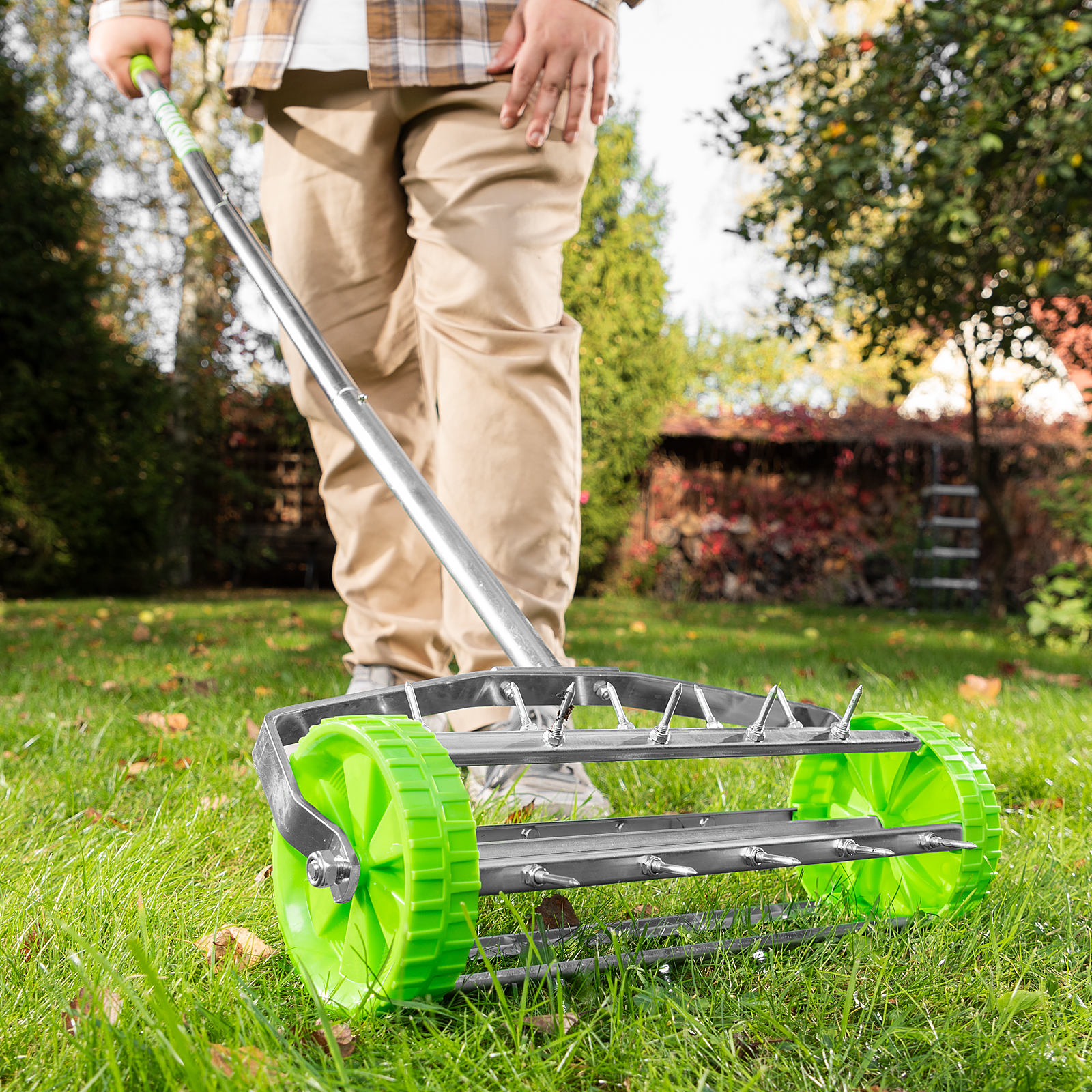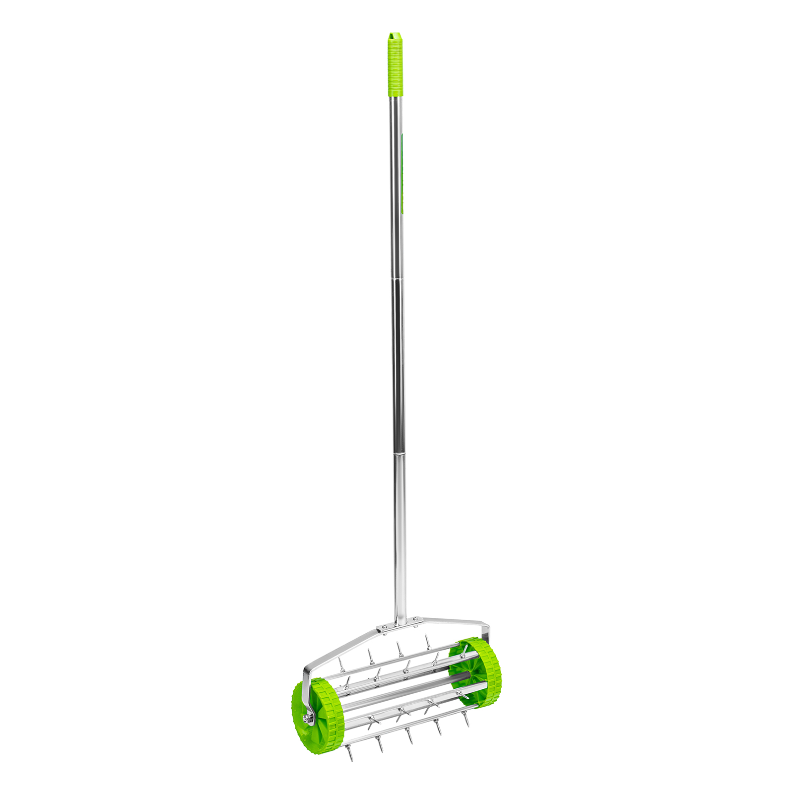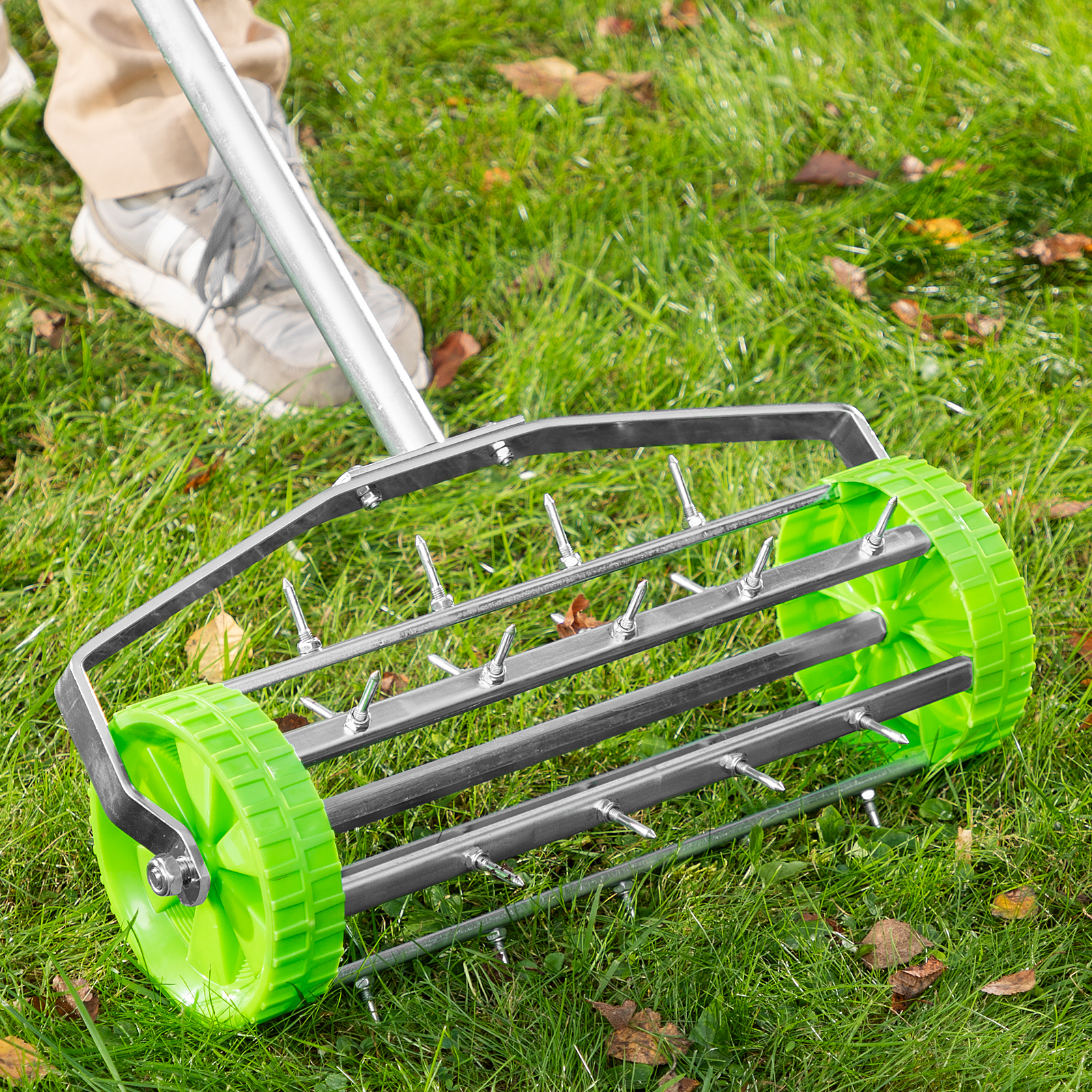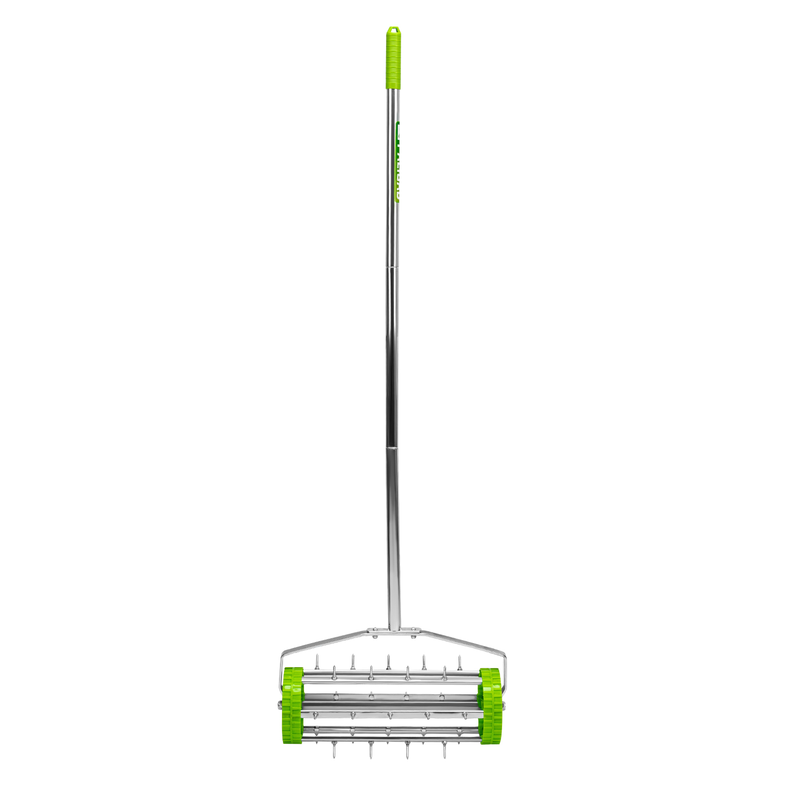 - Эффективная работа без лишних усилий — аэратор с острыми шипами позволяет ускорить процесс естественного роста газона без использования удобрений.