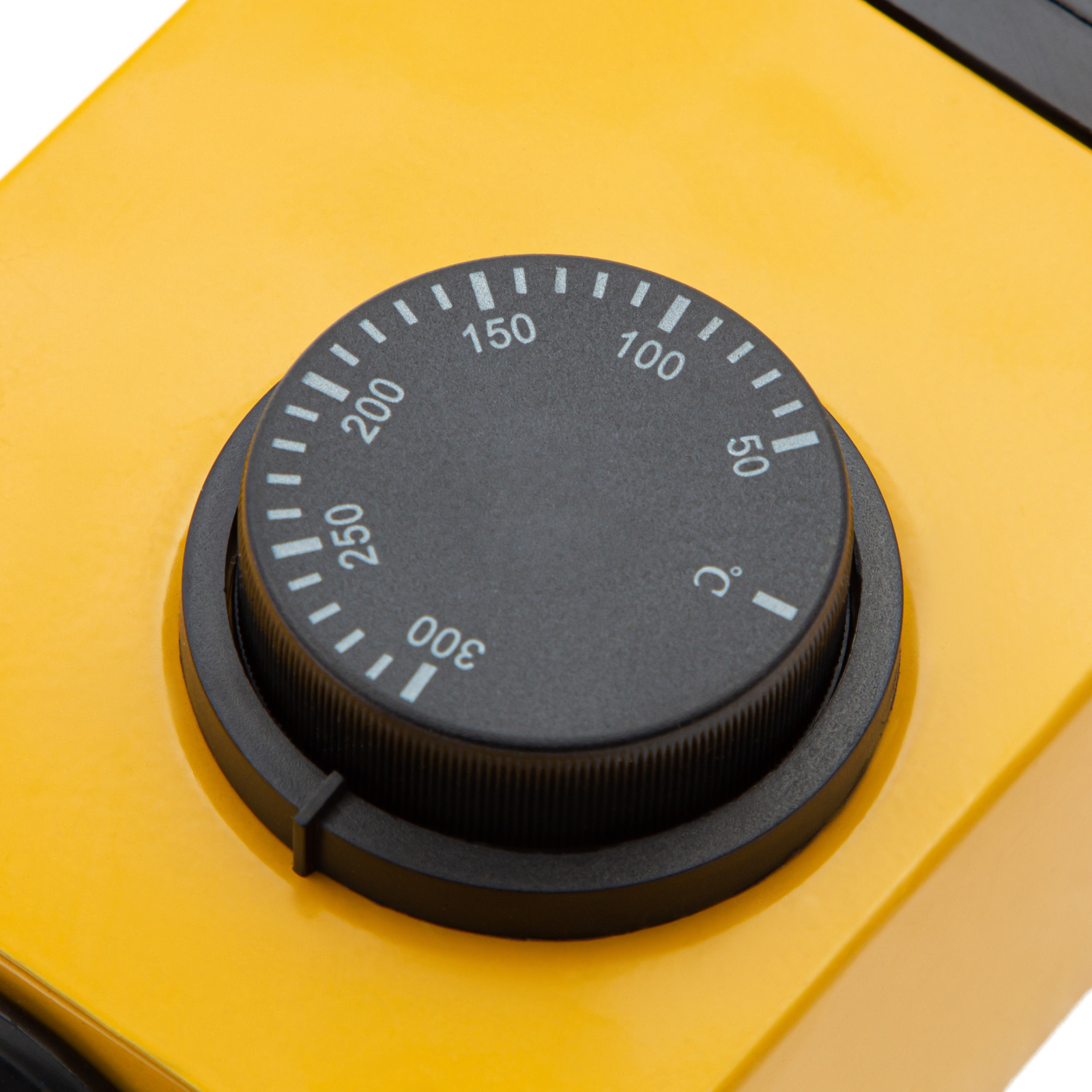 - Надежная фиксация на рабочем столе — производитель предусмотрел жаропрочную подставку с зажимным механизмом (струбциной).