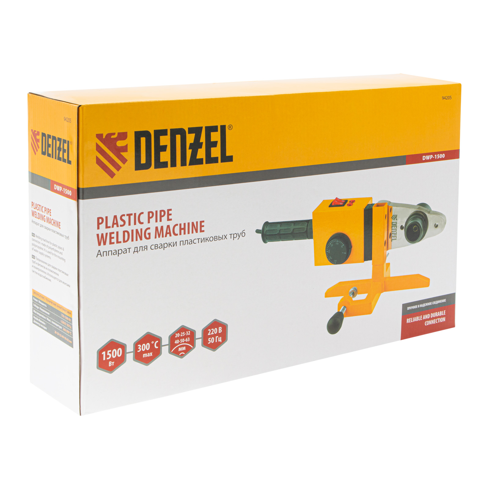 Аппарат для сварки пластиковых труб DWP-1500, 1500 Вт, 260-300 град, комплект насадок, 20-63 мм Denzel в Уфе