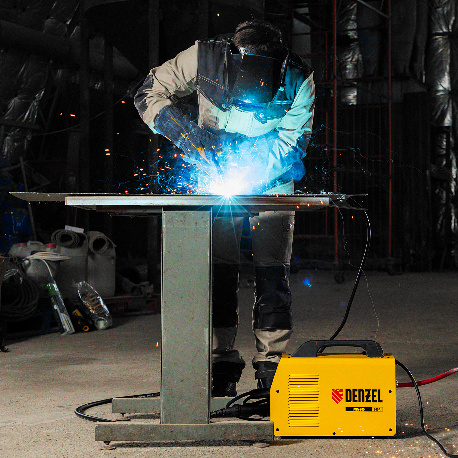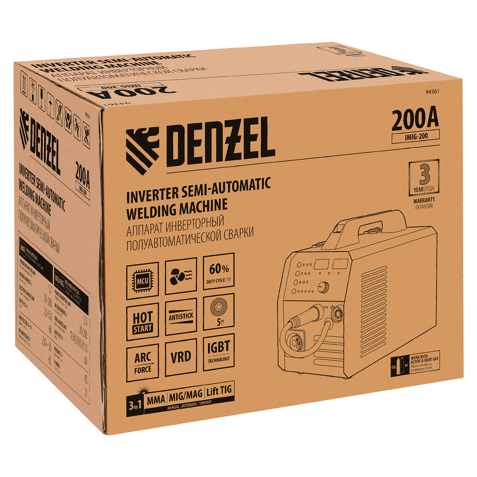 Аппарат инвертор. полуавтомат. cварки IMIG-200, 200 А, ПВ 60%, катушка 5 кг Denzel в Уфе