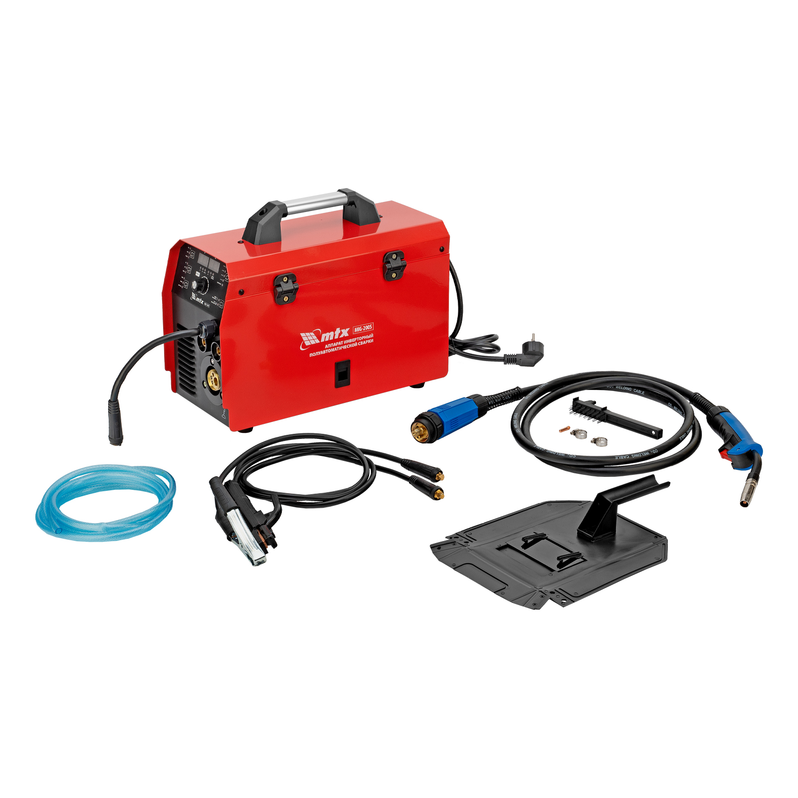 Инверторный аппарат полуавтоматической сварки MTX MIG-200S 94303, предназначенный для сварки на максимальном токе до 200 А, имеет продолжительность включения 60% и совместим с катушками весом до 5 кг. Используется для работы со сталями, черными и цветными металлами. Сварочный аппарат изготовлен с использованием передовой технологии IGBT, позволяющей получать стабильный сварочный ток на выходе. Аппарат имеет высокий КПД при низком энергопотреблении, способен работать при пониженном до 180 В напряжении.