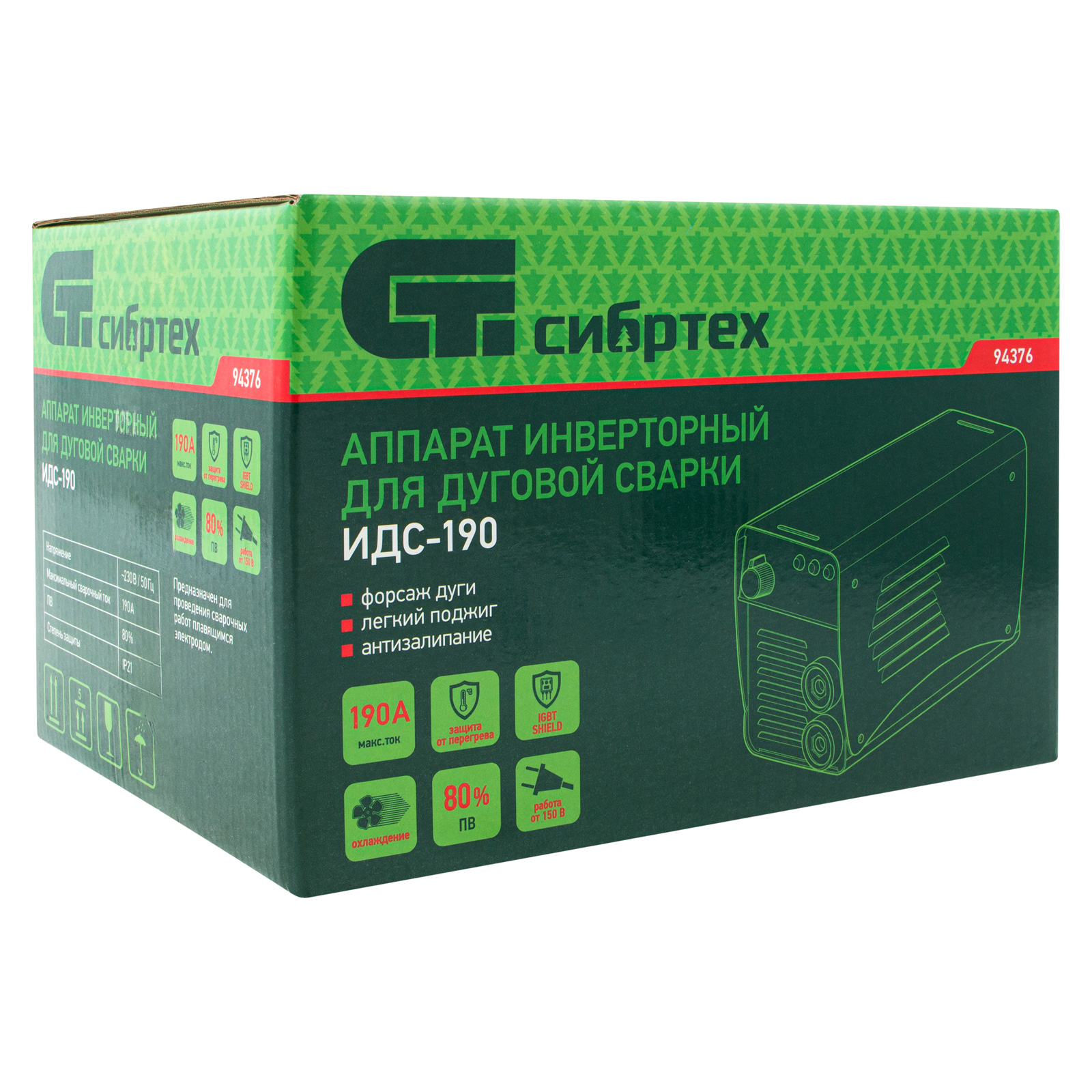 Аппарат инверторный дуговой сварки ИДС-190, 190 А, ПВ 80%, диаметр электрода 1.6-4 мм Сибртех в Уфе
