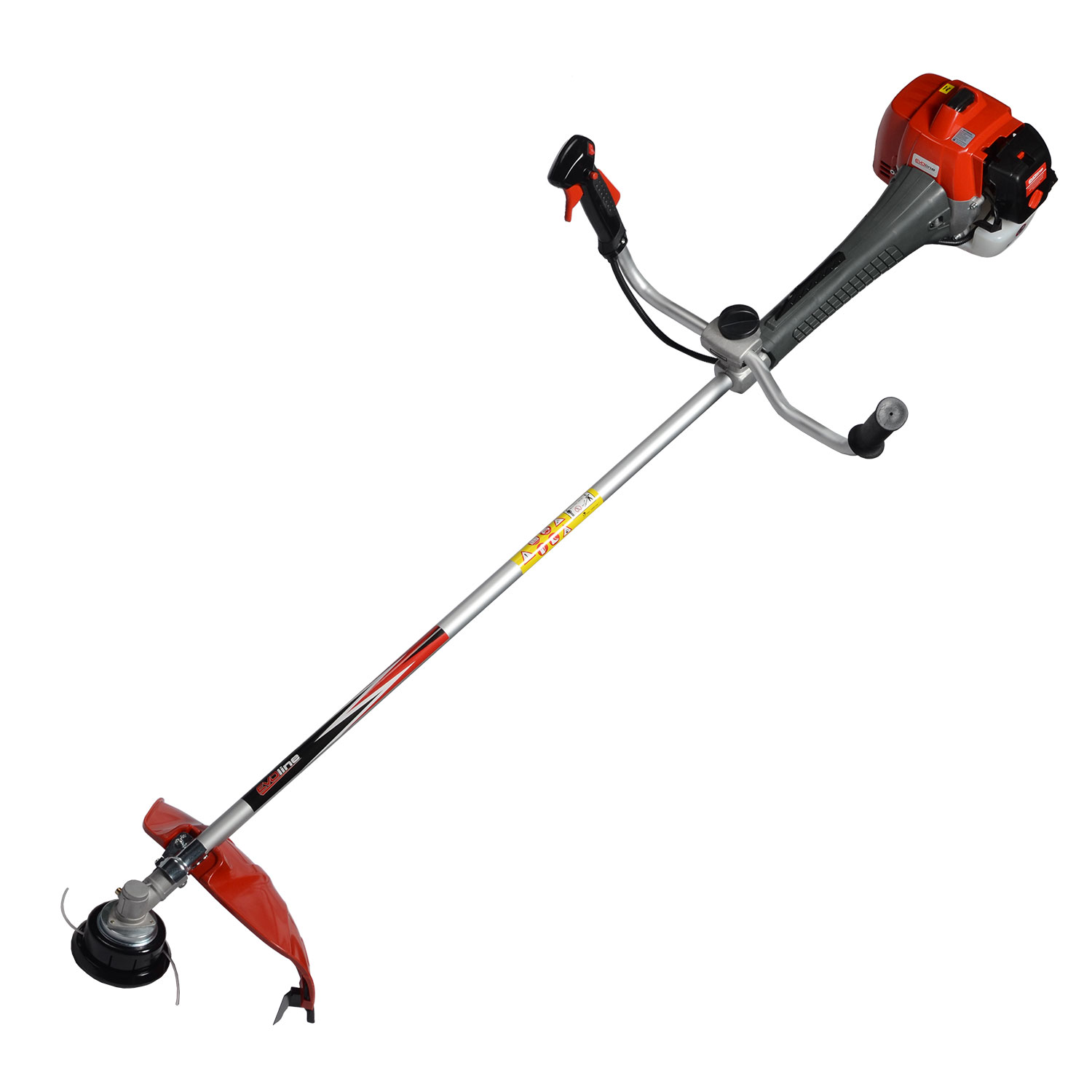 ✓ 3 сменных насадки входят в комплект (стальной диск с 80-ю зубьями толщиной 2 мм, триммерная головка с леской диаметром 2,5 мм и 3-х лопастной металлический нож толщиной 2 мм);