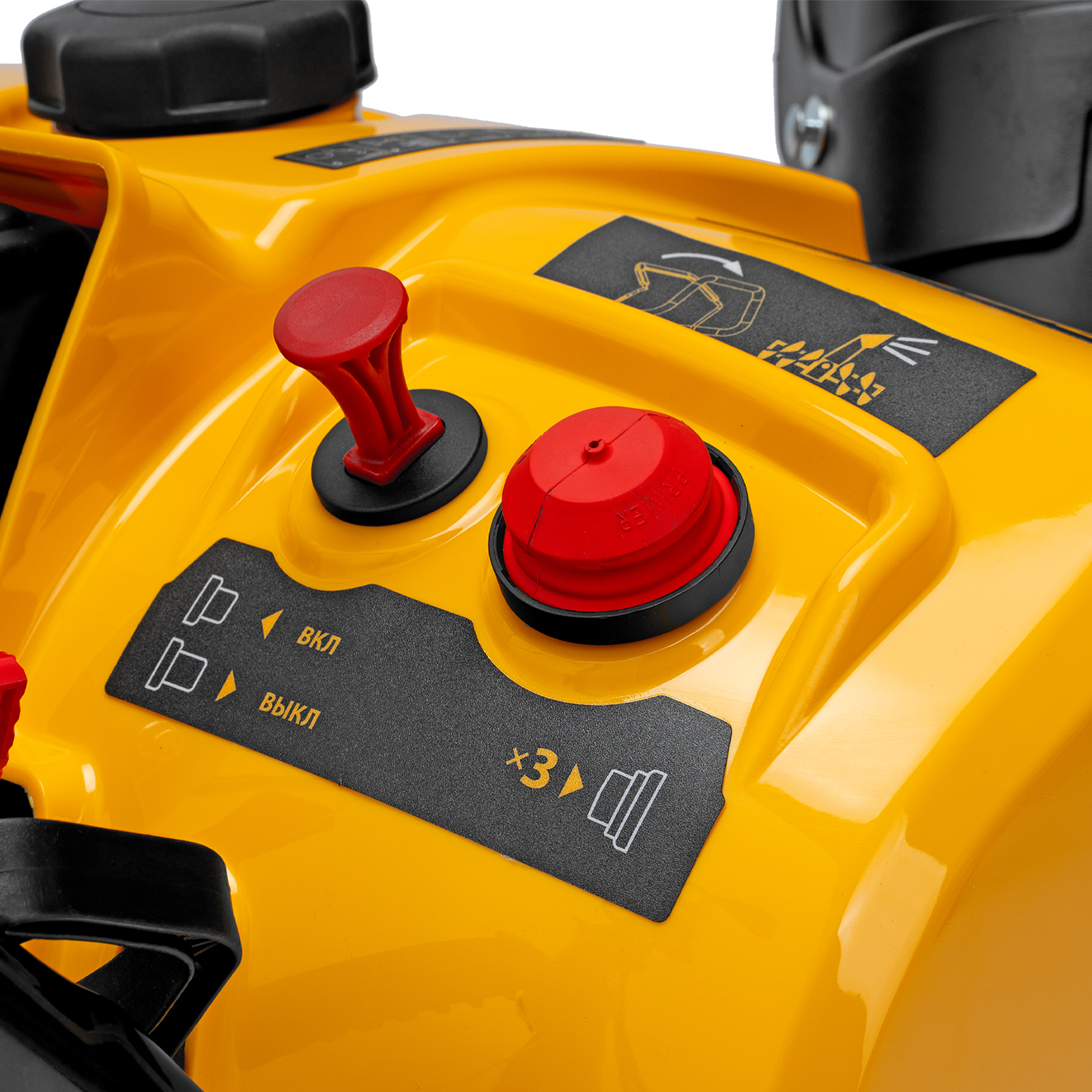 - Удобное управление — широкая рукоятка ручного старта облегчает запуск двигателя, для регулировки угла поворота желоба не нужно наклоняться.