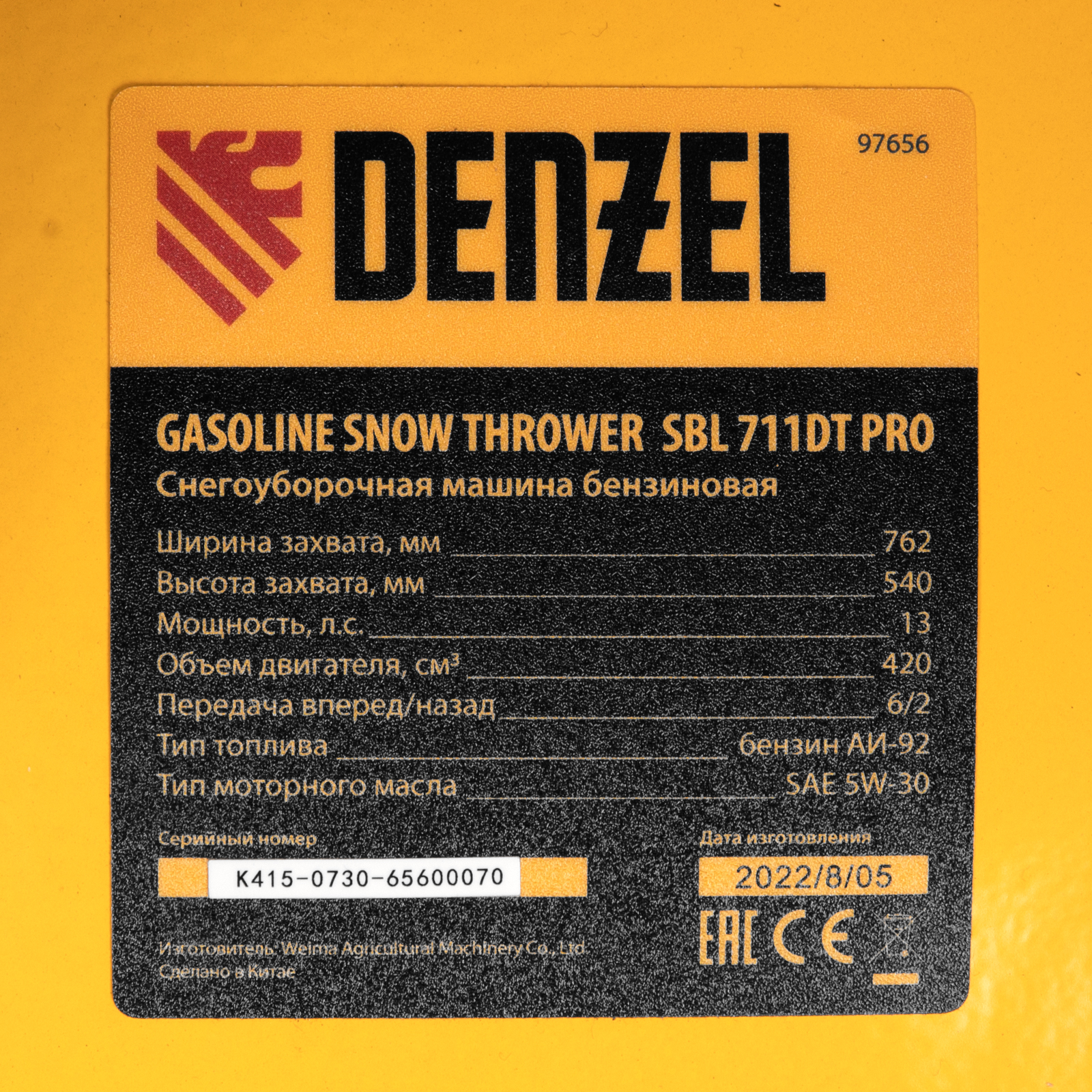 Бензиновая снегоуборочная машина SBL 711DT PRO, 420cc, гусеницы, эл.старт, блок. дифф. Denzel в Уфе