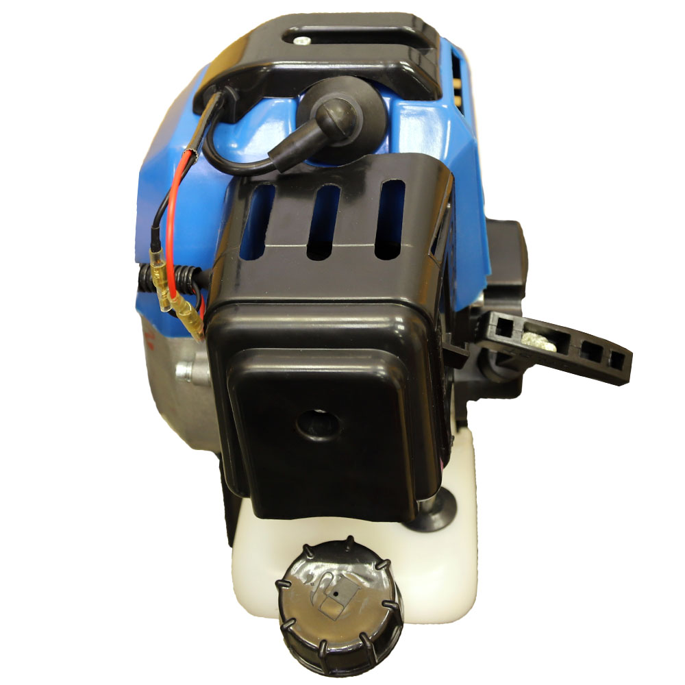 Двухтактный бензиновый двигатель объёмом 43 куб.см работает на смеси 92 безина и масла для 2Т двигателей (!)
