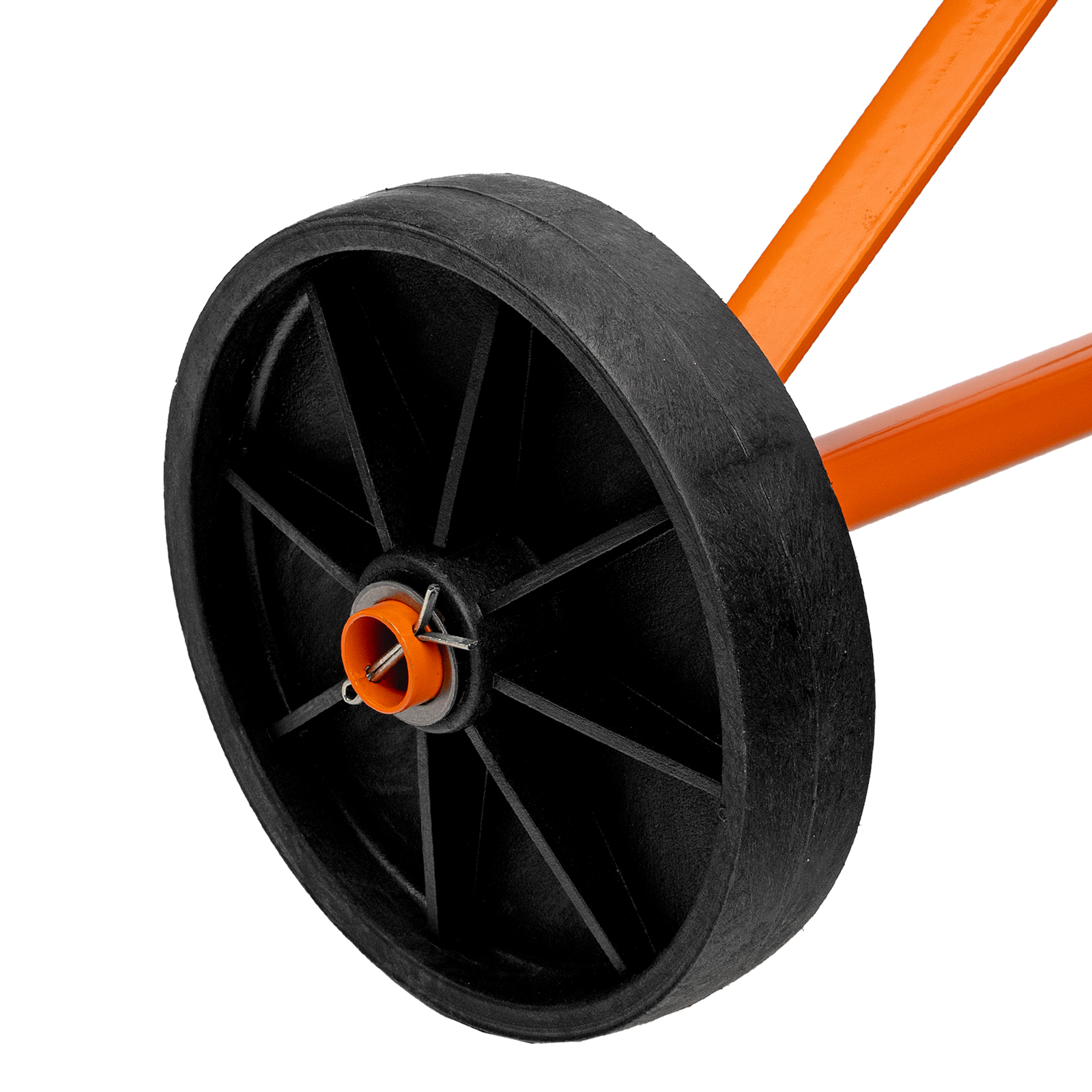 - Продуманная конструкция — увеличенный диаметр колес обеспечивает устойчивость бетоносмесителя во время работы, а также упрощает его перемещение по рабочей площадке.
