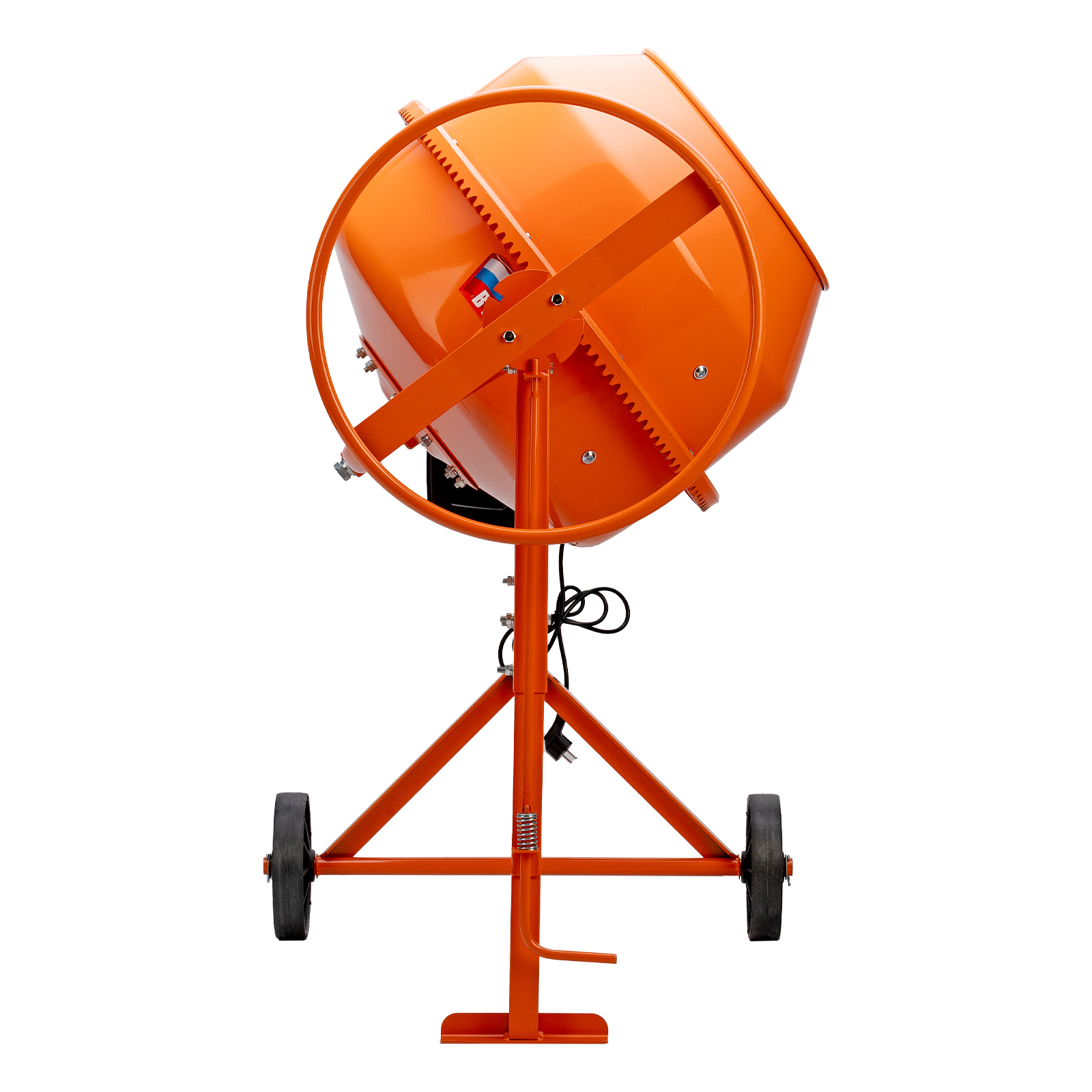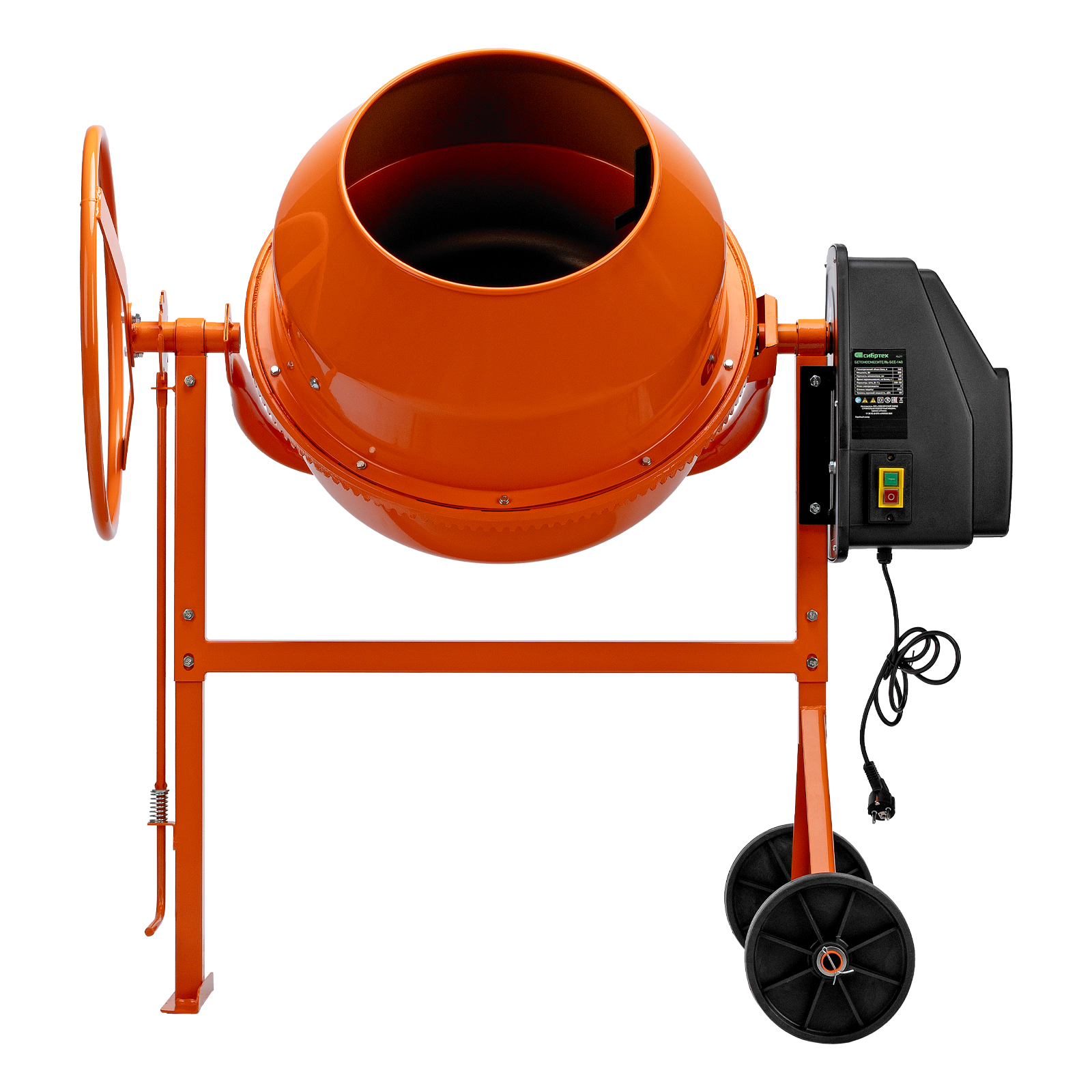 - Удобный механизм наклона — барабан легко фиксируется в нужном положении, что упрощает загрузку компонентов и подачу готовой смеси.