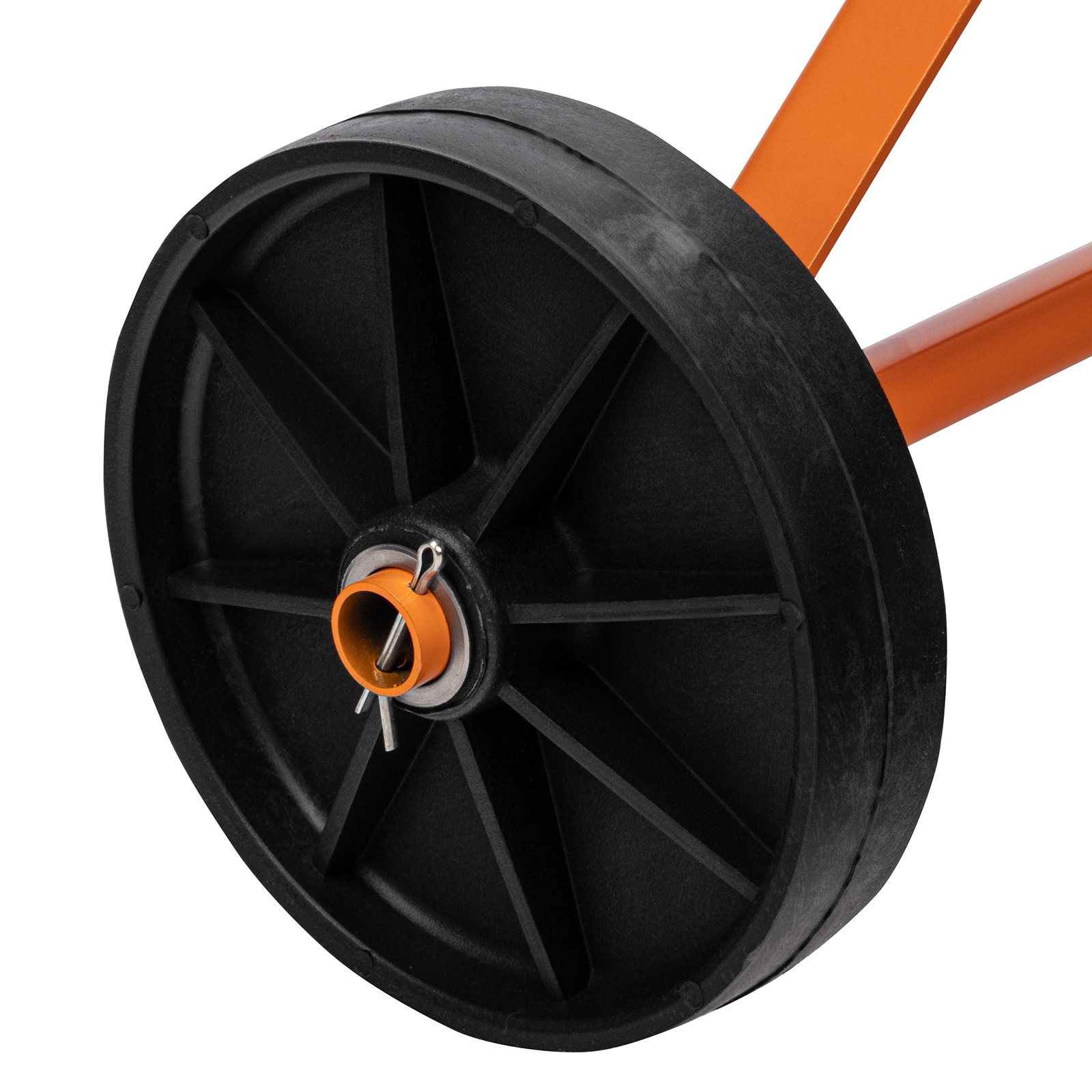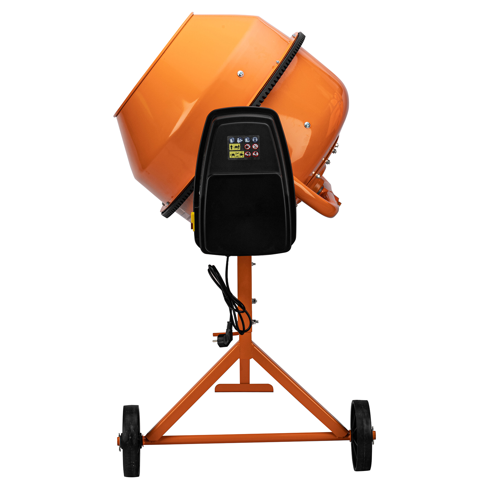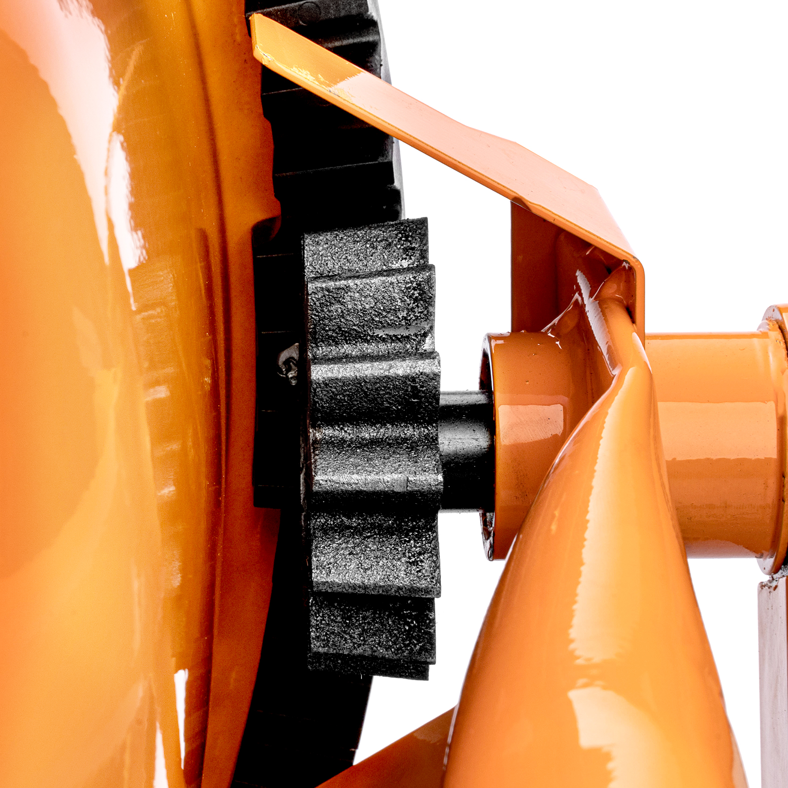 - Продуманная конструкция — увеличенный диаметр колес обеспечивает устойчивость бетоносмесителя во время работы, а также упрощает его перемещение по рабочей площадке.