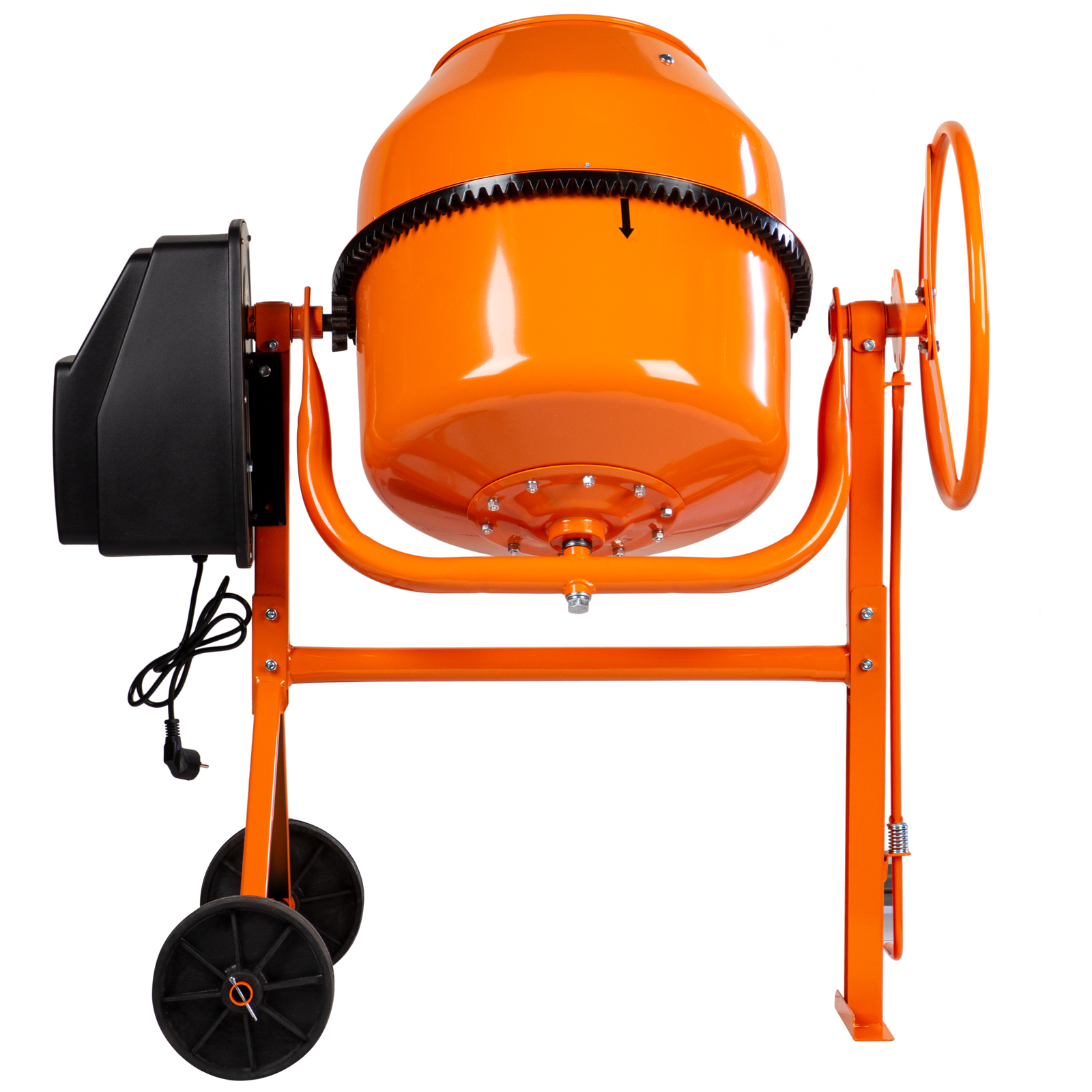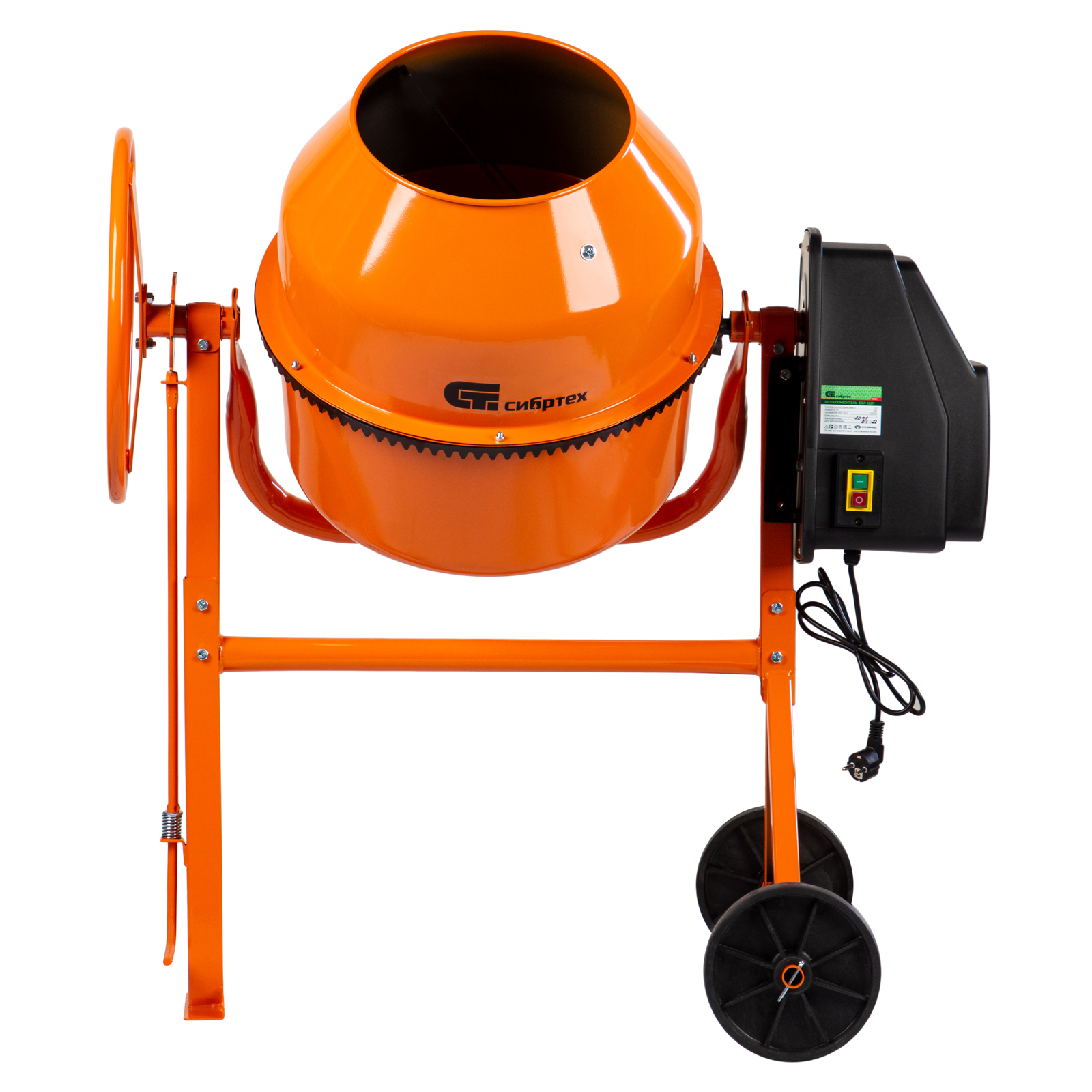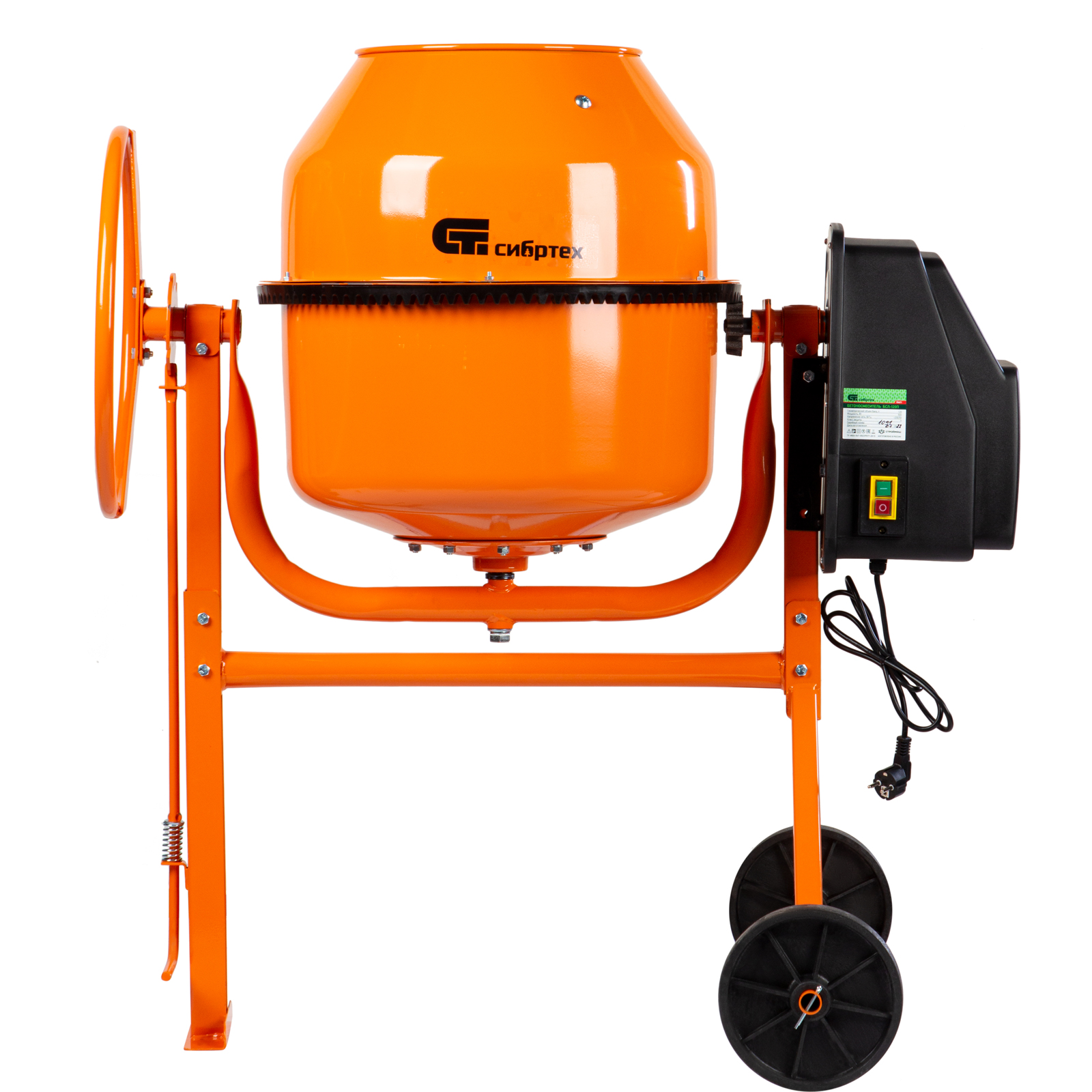 - Удобная транспортировка — колеса диаметром 20,5 см повышают маневренность бетоносмесителя и помогают без лишних усилий доставить его в нужное место.