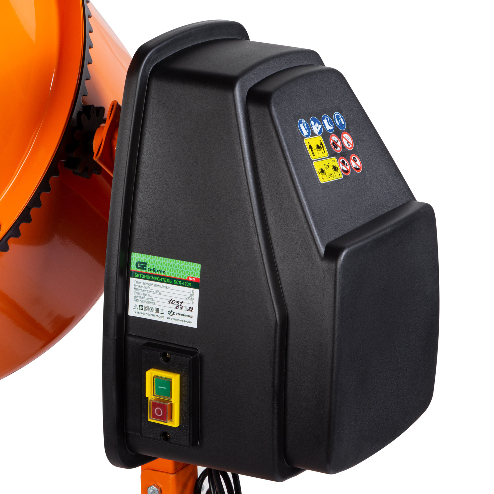 Бетоносмеситель Сибртех БСЛ-120П 95471 объемом 120л и мощностью 500 Вт, с полиамидным венцом, предназначен для производства строительных смесей и штукатурных растворов для заливки фундамента, стяжки пола, укладки кирпича и плитки, выполнения отделочных работ. Быструю скорость перемешивания обеспечивает грушевидный барабан и надежные лопасти. Количество готового раствора при максимальном заполнении бака составляет 46 литров. Благодаря хорошему замешиванию раствор получается однородной консистенции, без комков, и не выливается при движении бака. Бетоносмеситель работает от сети 220В, поэтому оптимален для бытового применения.