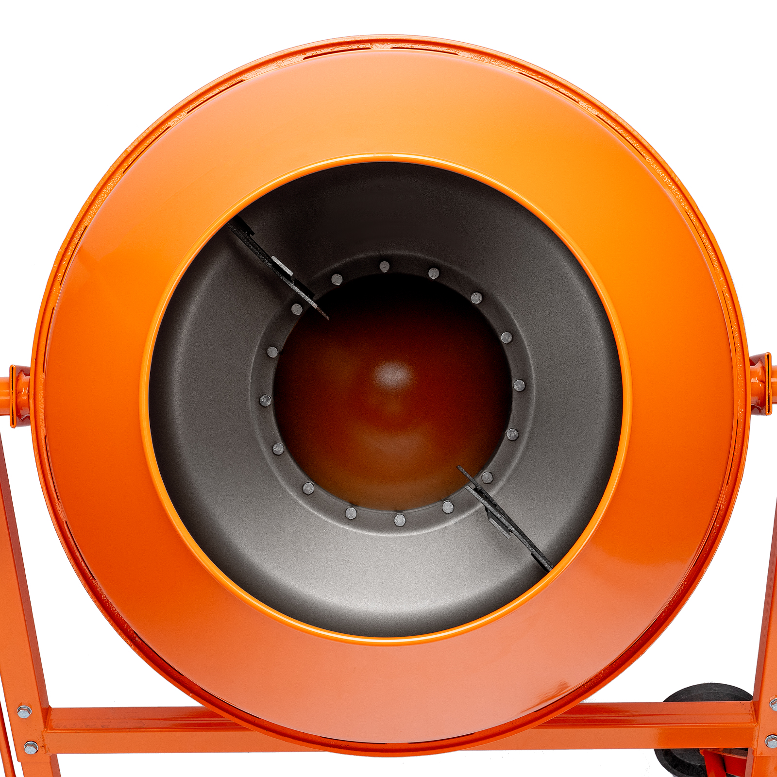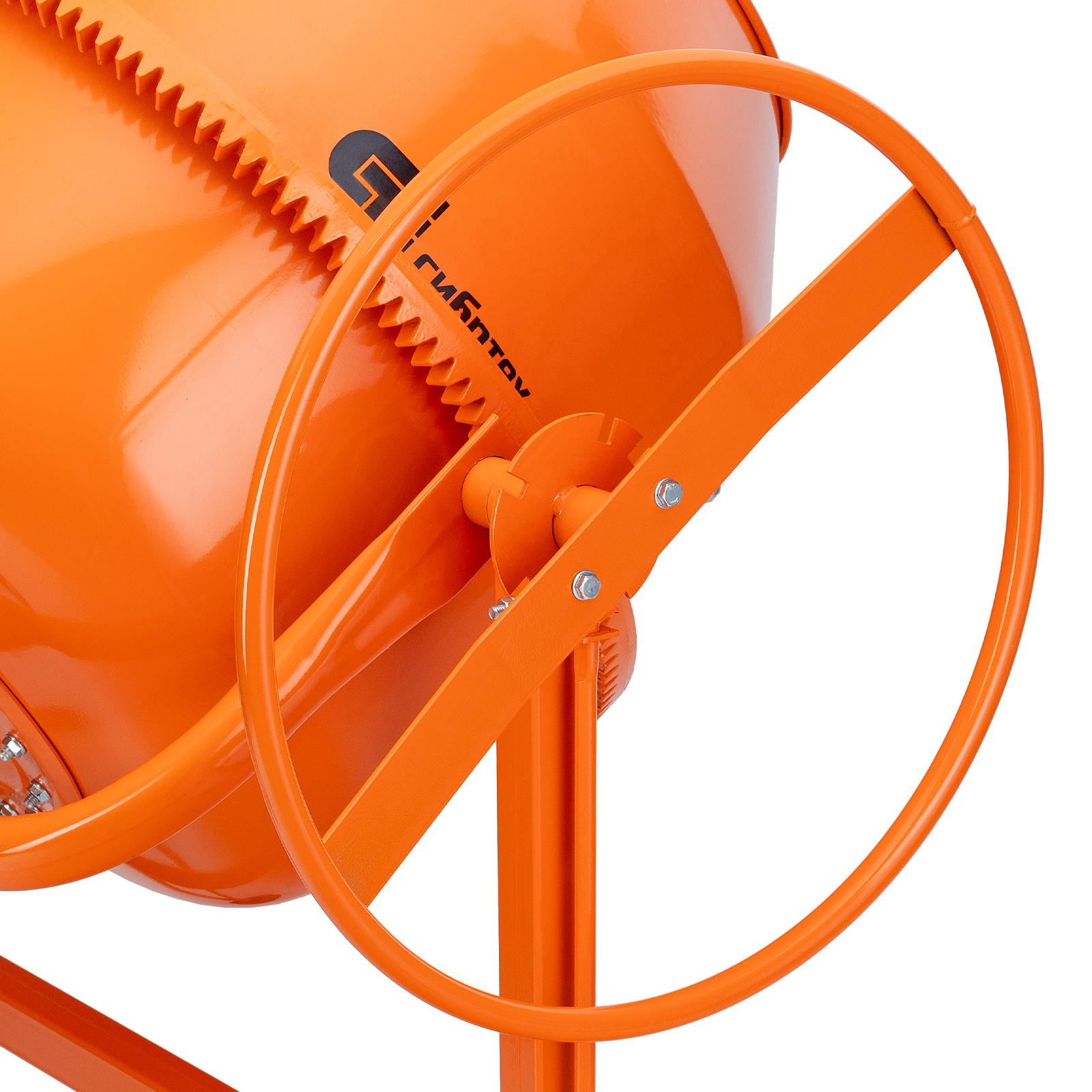 - Удобная загрузка и выгрузка смеси — барабан наклоняется при помощи маховика и легко фиксируется в нужном положении.