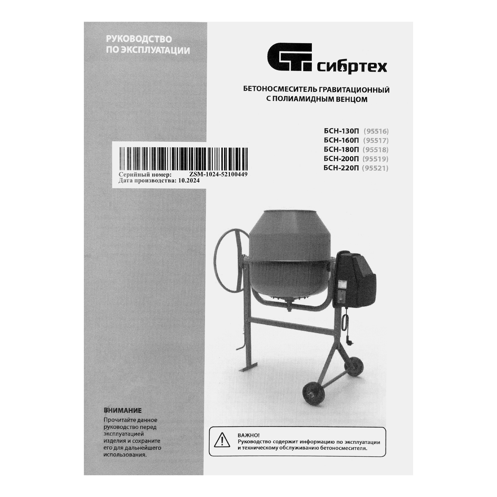 Бетоносмеситель БСЕ-160П, 160 л, 700 Вт, полиамидный венец Сибртех