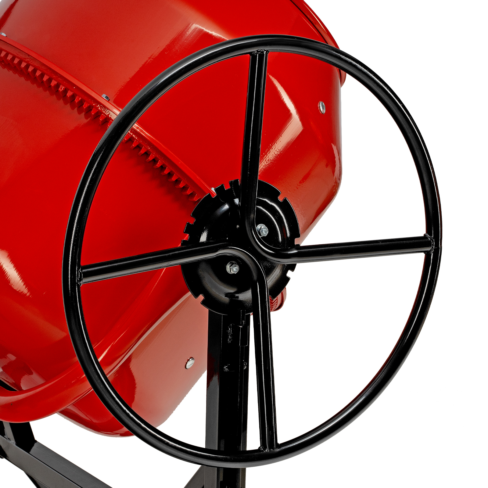 - Удобная загрузка и выгрузка смеси — барабан легко фиксируется под нужным углом при помощи педали.