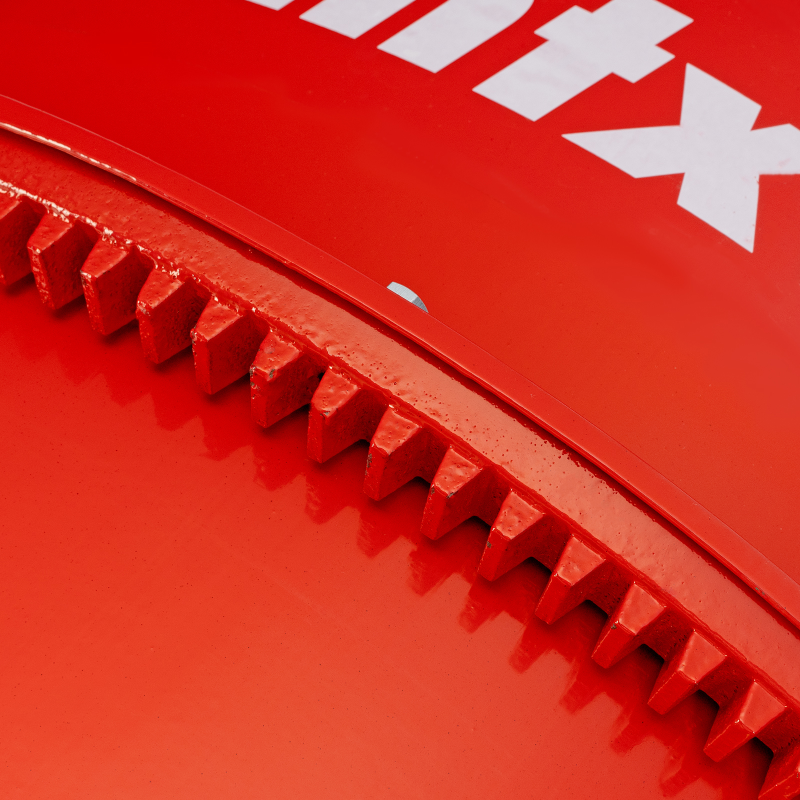 - Эффективное выполнение большого объема работ — венец и шестерня выполнены из чугуна, толщина стенок бака увеличена, широкий шкив со стальной запрессованной втулкой выдерживает высокие нагрузки.