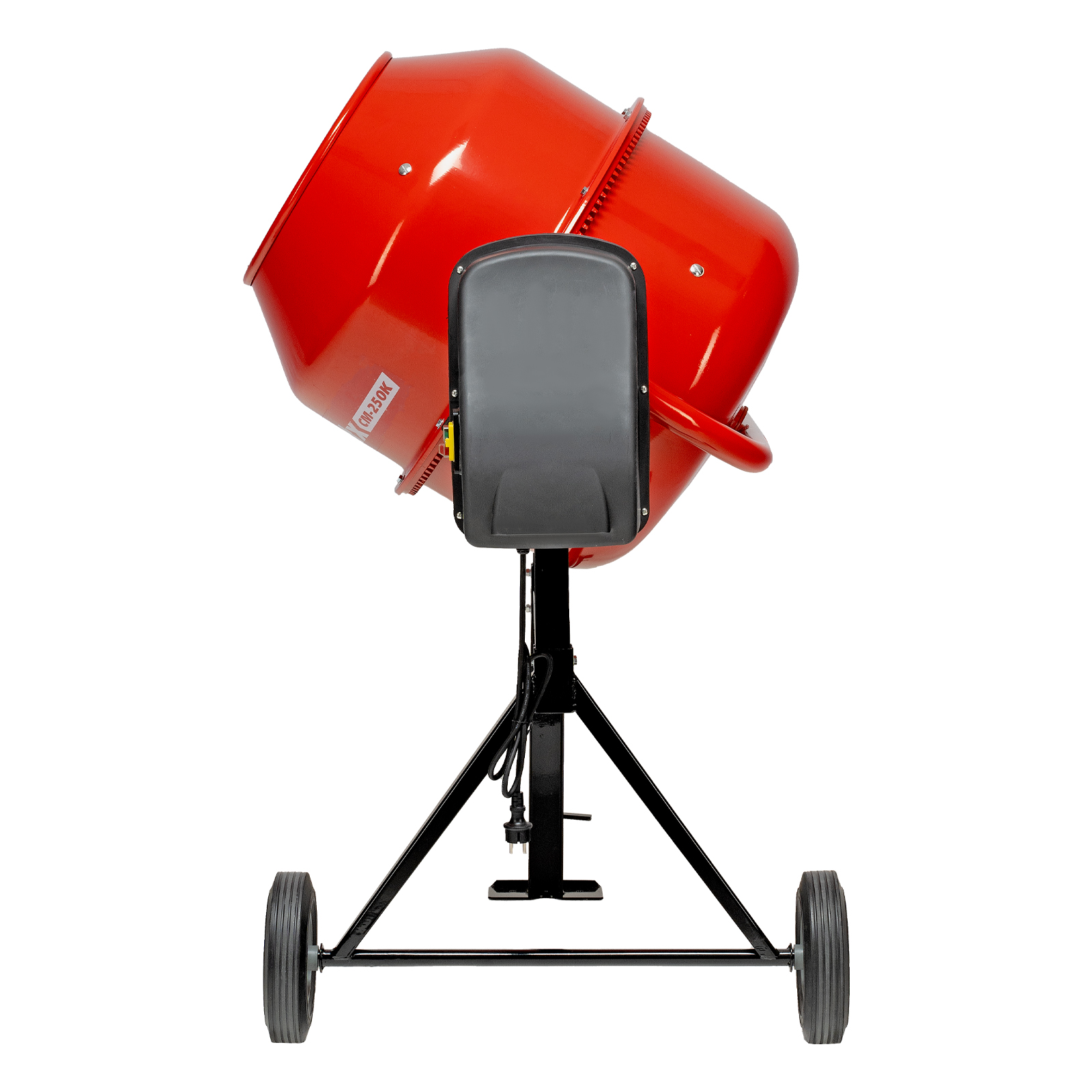 - Удобная загрузка и выгрузка смеси — барабан легко фиксируется под нужным углом при помощи педали.