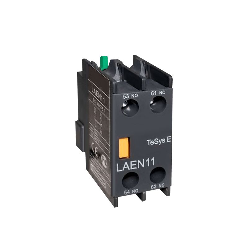 Блок контактора контактный дополнительный LAEN11 служит для увеличения числа дополнительных контактов. Используется совместно со всеми типами контакторов LC1E или с промежуточными реле серии CAE. Устанавливается на передней поверхности контактора или реле защелкой. Присоединение осуществляется с помощью винтовых зажимов. Предназначен для стандартного применения. Контакты: 1НО (нормально-открытый) и 1H3 (нормально-закрытый).
