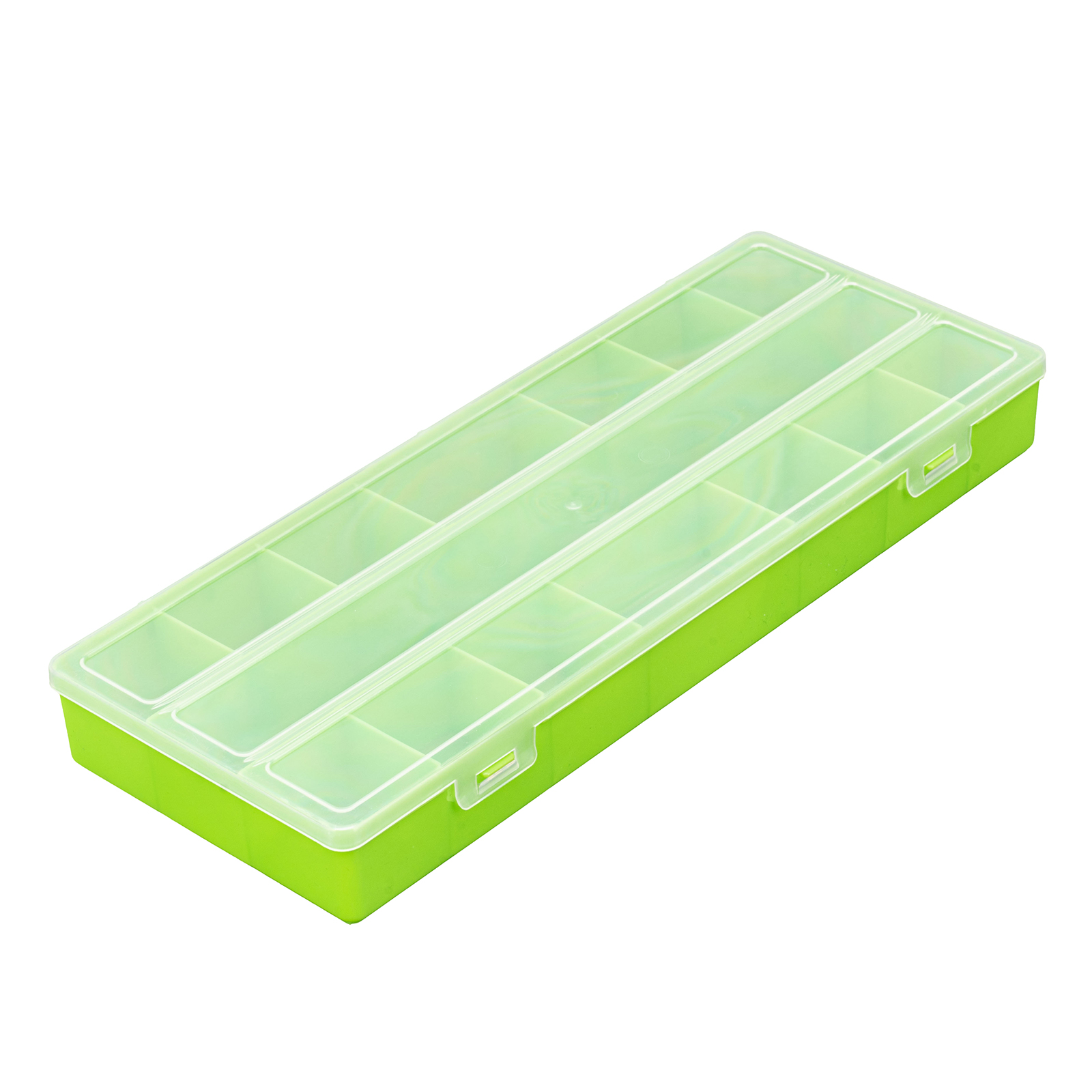 Универсальный бокс Сибртех 90732 размером 382 х 152 х 45 мм используется для хранения и транспортировки мелочей. В него можно положить украшения, снасти, крепежные элементы, канцтовары и др. Контейнер позволит сэкономить пространство, а также упорядочить вещи для более удобного поиска. За счет компактных размеров блок легко поместится в ящике с инструментами, комоде или на столе.