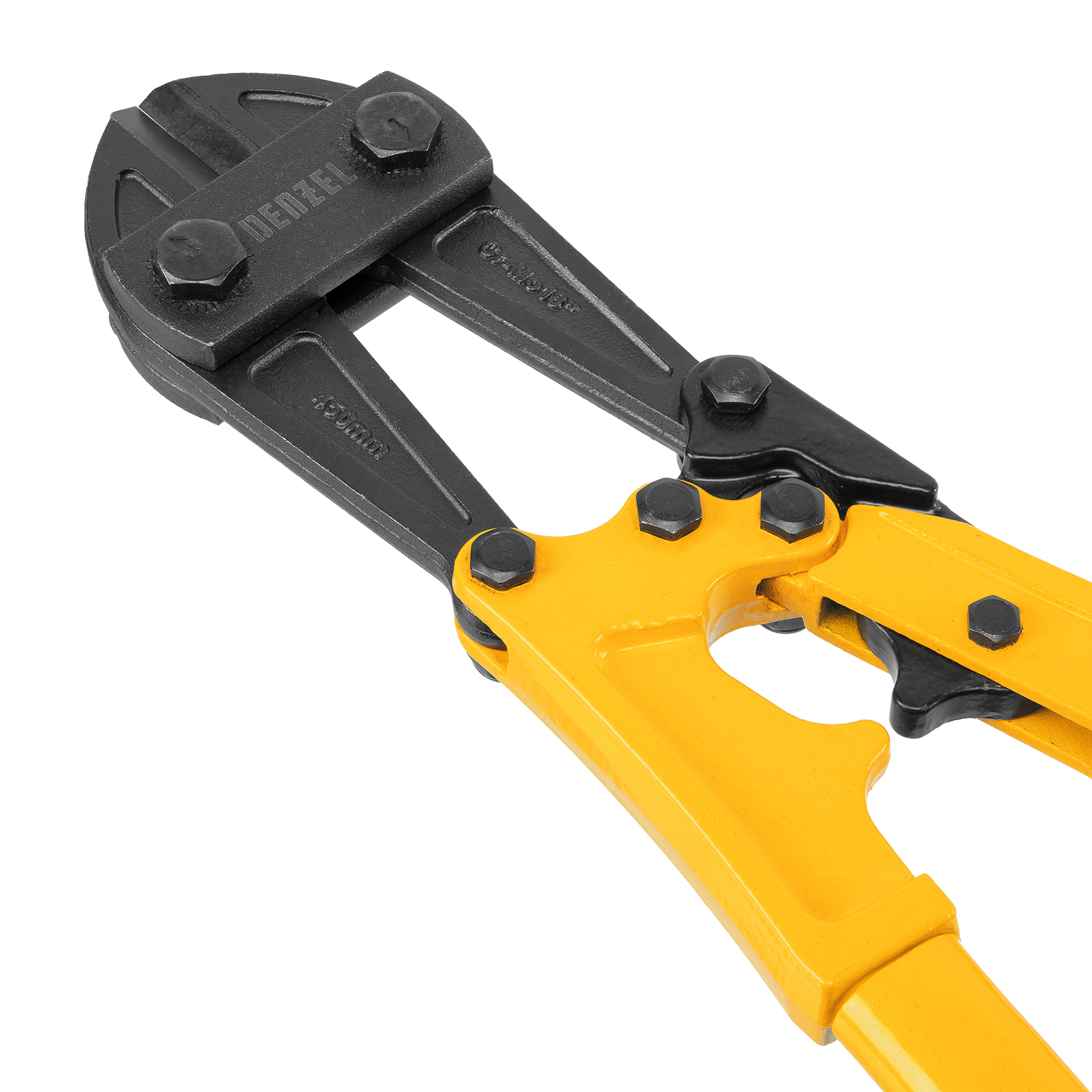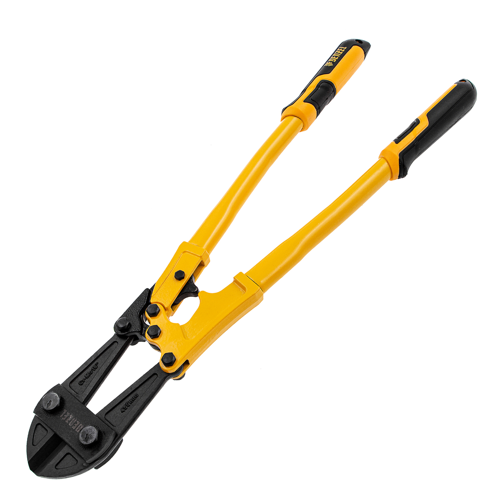 Болторез Denzel 78534 длиной 450 мм (18 дюймов), из стали Cr-Mo, предназначен для перекусывания стальных прутков диаметром 8 мм, болтов и шурупов, тросов, разнородной проволоки.