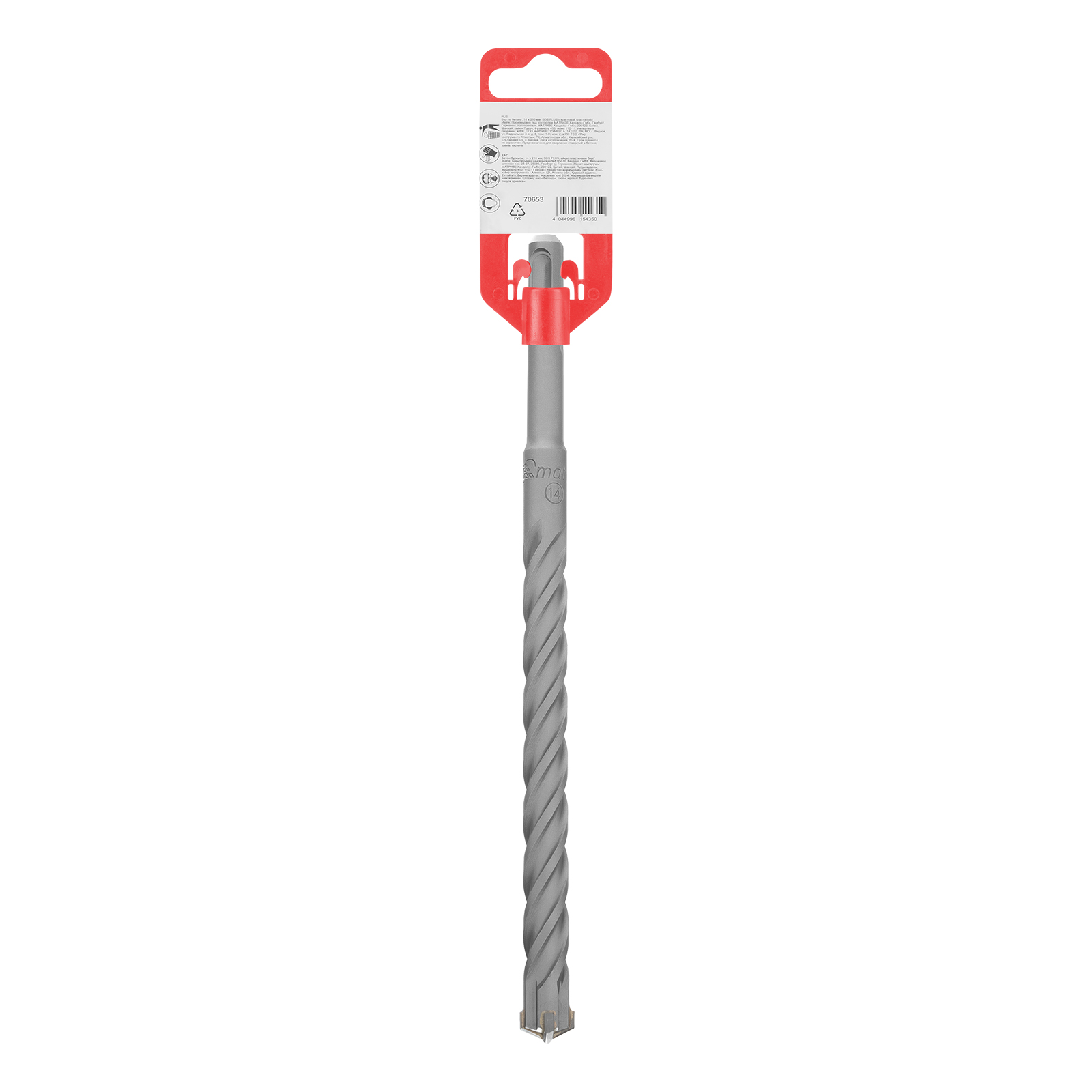 Бур по бетону Matrix 70653 размером 14 х 210 мм используется с перфораторами типа SDS Plus. Используется для получения отверстий в особо твердых поверхностях, таких как бетон, арматура, кирпич, искусственный и натуральный камень. Благодаря твердосплавной пластине с 4 резцами бур успешно справляется с большими объемами работ.