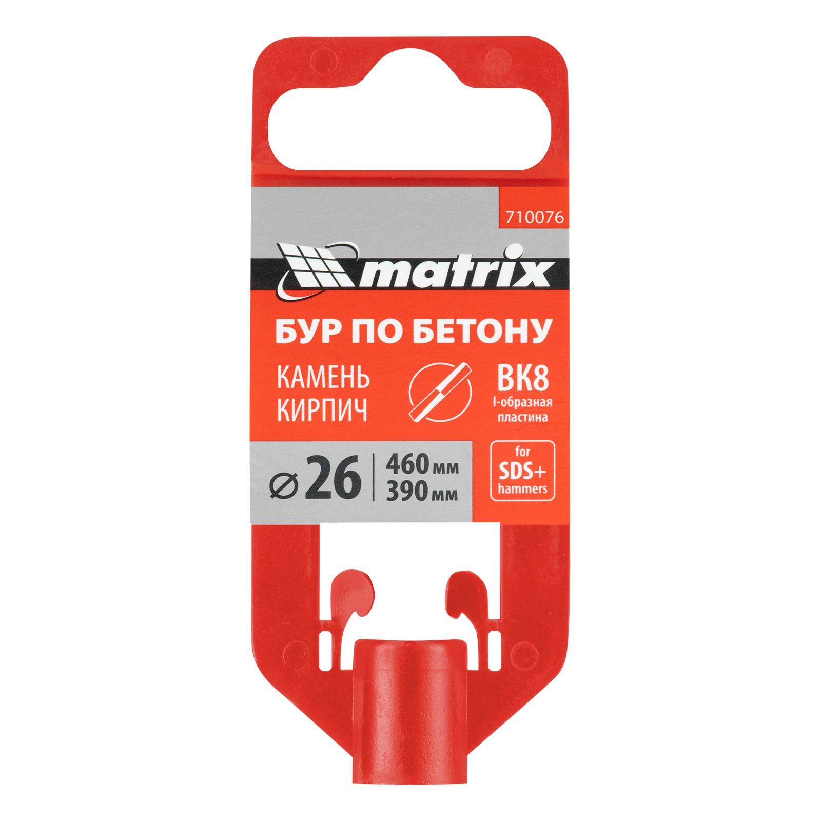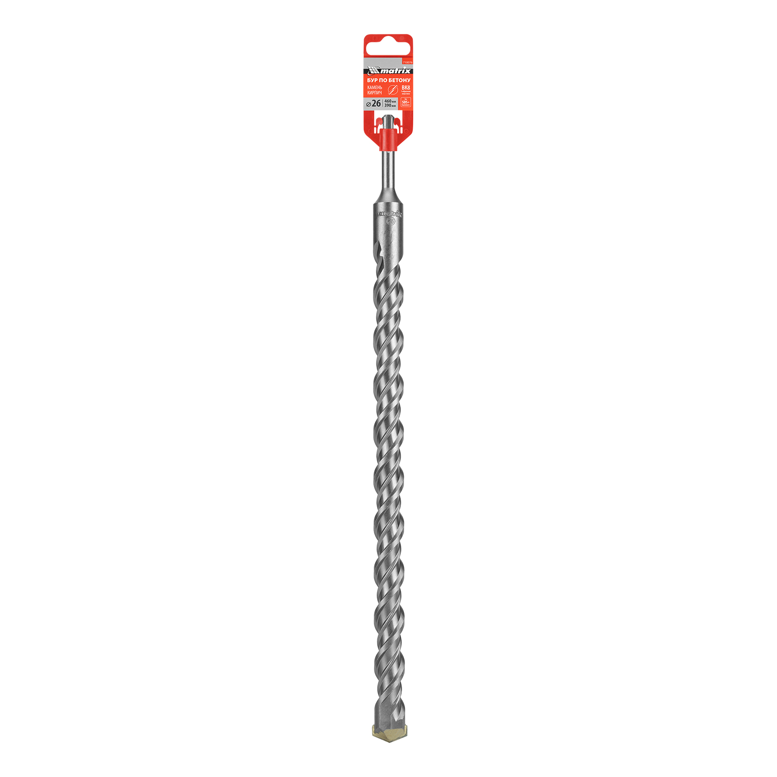 Бур по бетону Matrix 710076 длиной 460 мм, с хвостовиком SDS-plus, предназначен для установки на перфоратор и получения отверстий диаметром 26 мм в бетоне, камне и кирпиче. Позволяет эффективно решать поставленные задачи благодаря режущей пластине из высокотвердого сплава карбида вольфрама ВК8 твердостью 80-90 HRC.