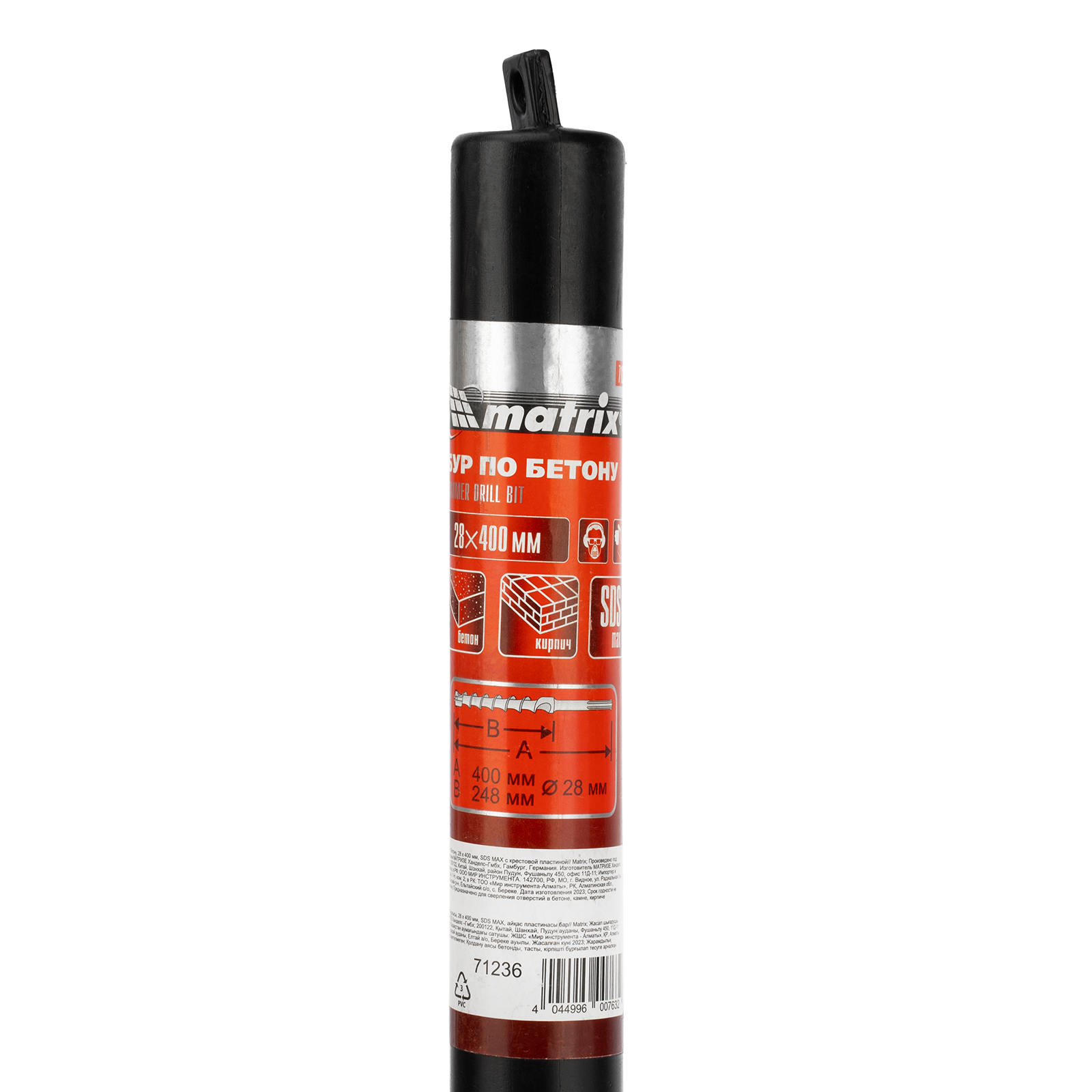 Бур по бетону Matrix 71236 размером 28 х 400 мм используется в качестве оснастки на тяжелых перфораторах с хвостовиком SDS MAX. Подходит для сверления глубоких отверстий в кирпиче и особо прочных материалах: армированном бетоне, природном и искусственном камне.