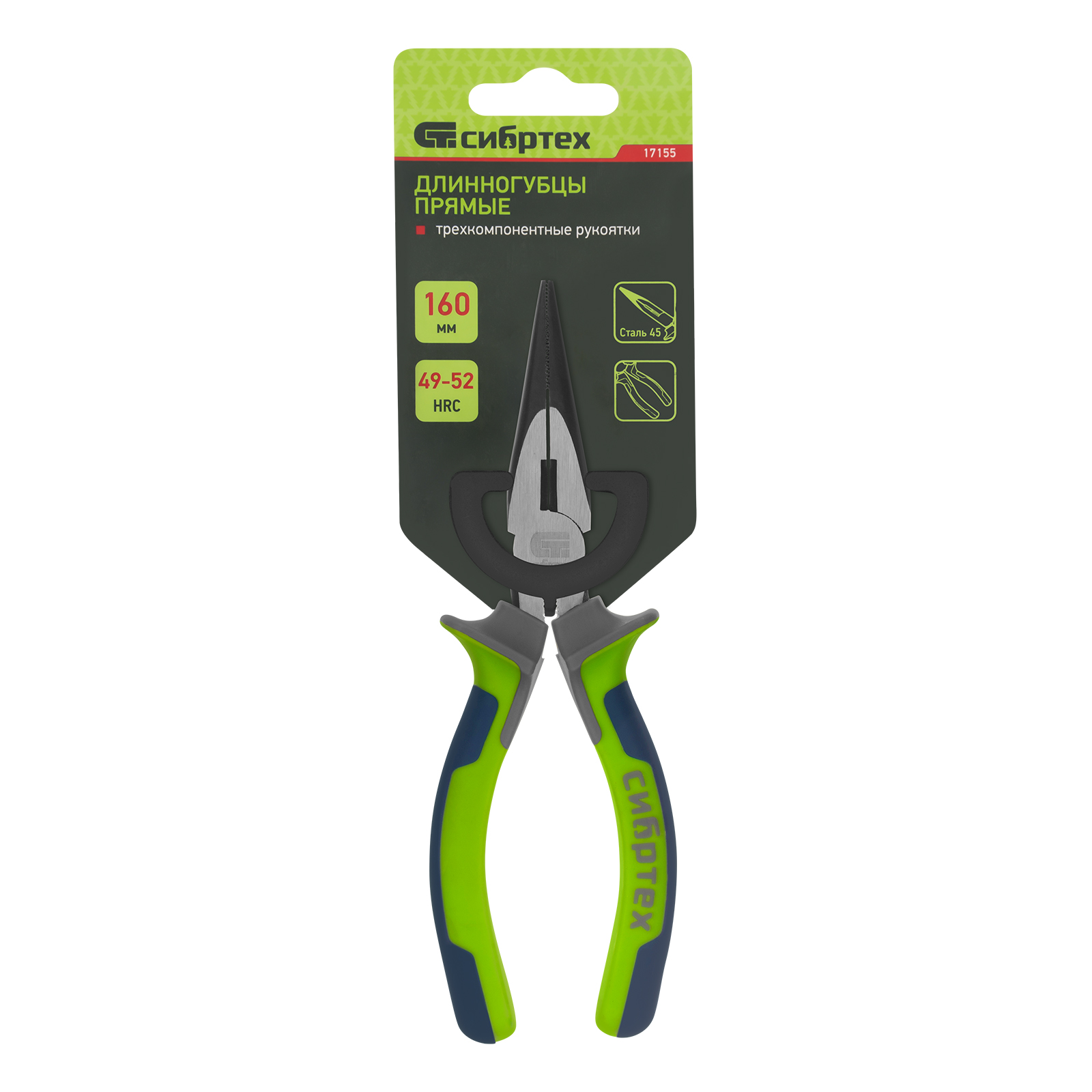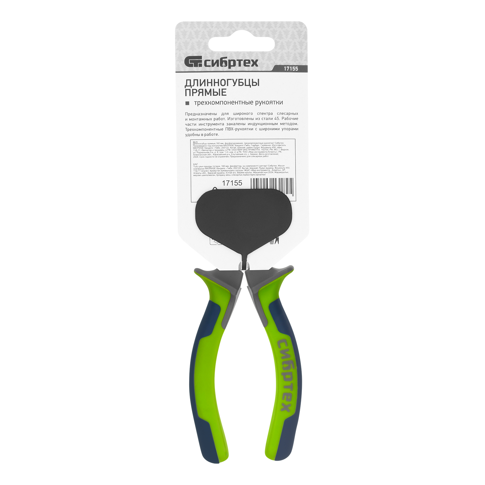 Длинногубцы прямые 160 мм, фосфатирование, трехкомпонентные рукоятки Сибртех в Уфе