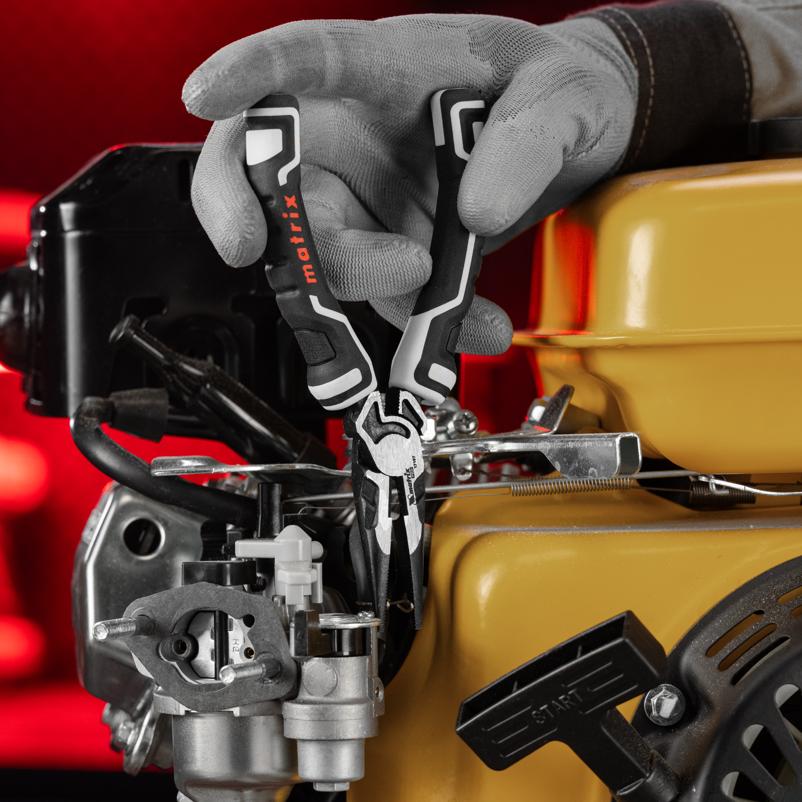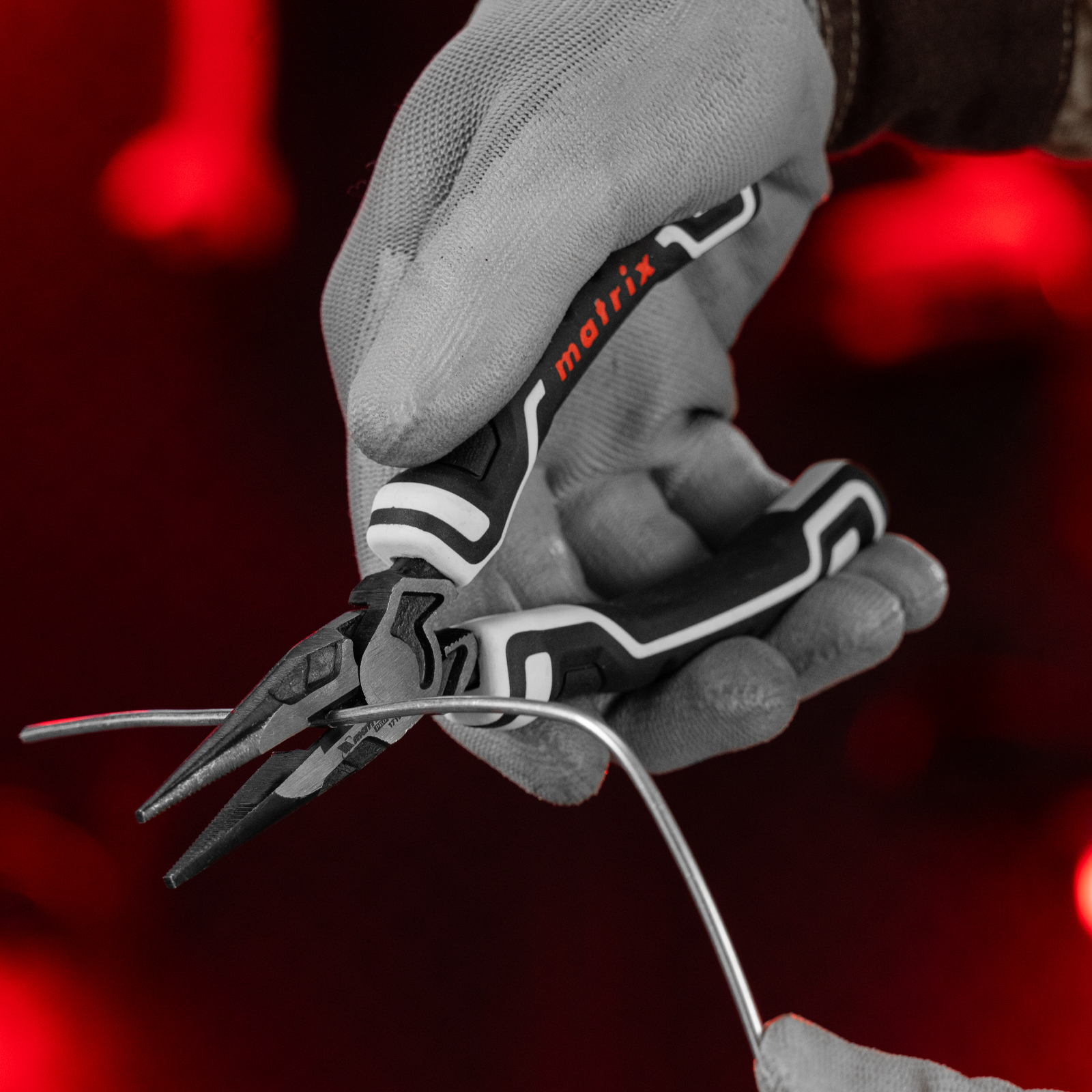 Прямые длинногубцы Matrix PRO 17197 с усиленной системой, длиной 165 мм, станут незаменимым помощником профессиональным мастерам. Пригодятся при проведении широкого спектра слесарных, монтажных и ремонтных работ. За счет удлиненных тонких губок инструмент легко проникает в труднодоступные места, позволяет захватить и удержать мелкие детали, перекусить прутки, проволоку, провод и т.д.