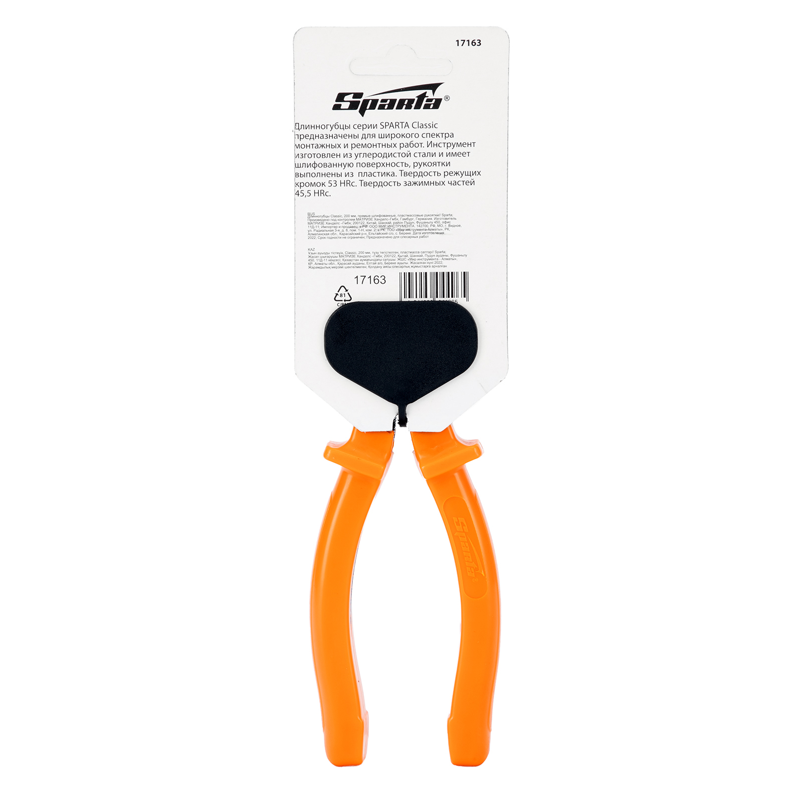 Длинногубцы прямые Classic, 200 мм, шлифованные, пластмассовые рукоятки Sparta в Уфе