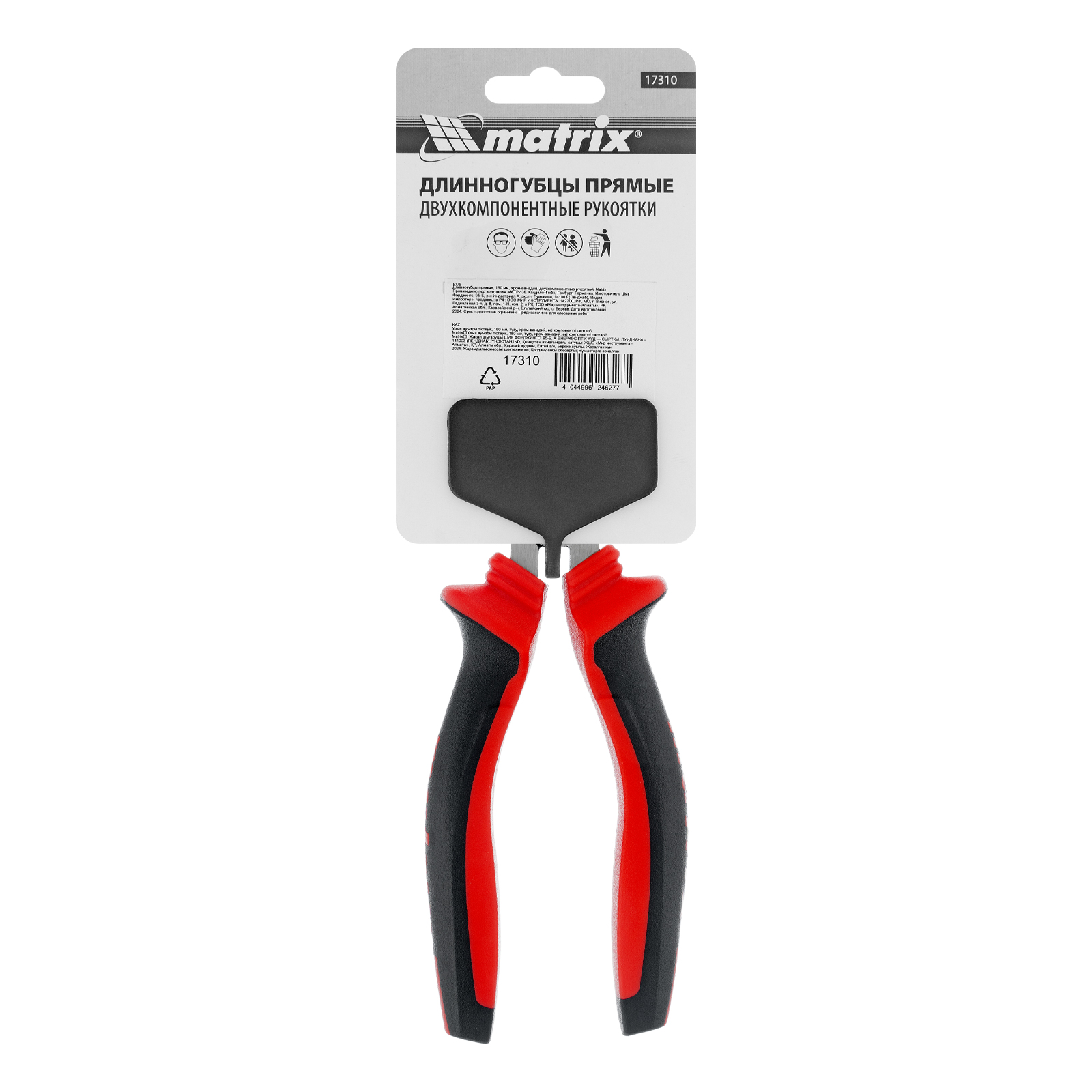 Длинногубцы прямые, 180 мм, хром-ванадий, двухкомпонентные рукоятки Matrix в Уфе