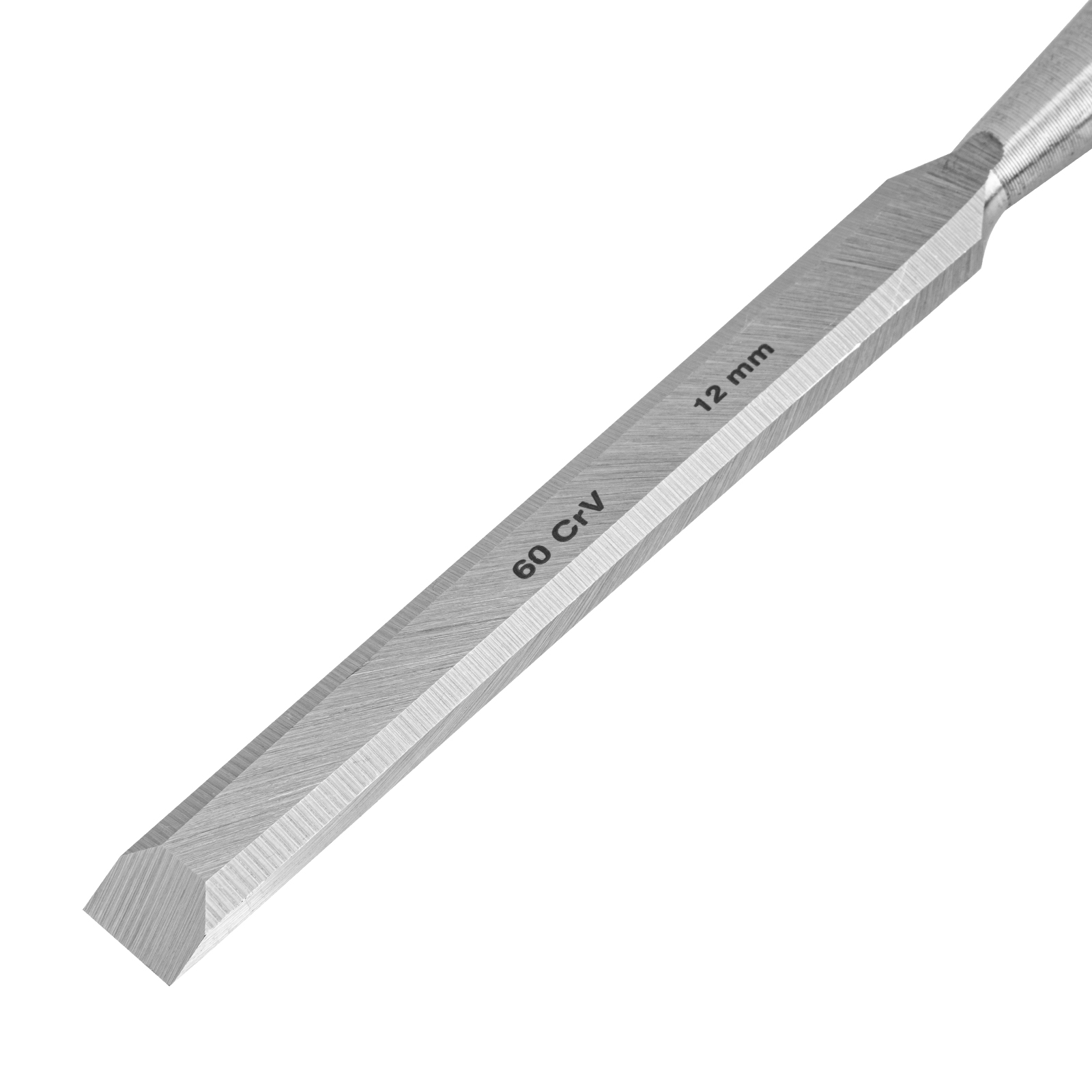 - Длительное сохранение режущих свойств — долото-стамеска обладает твердостью 65 HRC (0,7 длины рабочей части полотна), острое, как бритва, лезвие обработано на заводе под углом 20-35°, повторная заточка потребуется минимум через 6 месяцев.