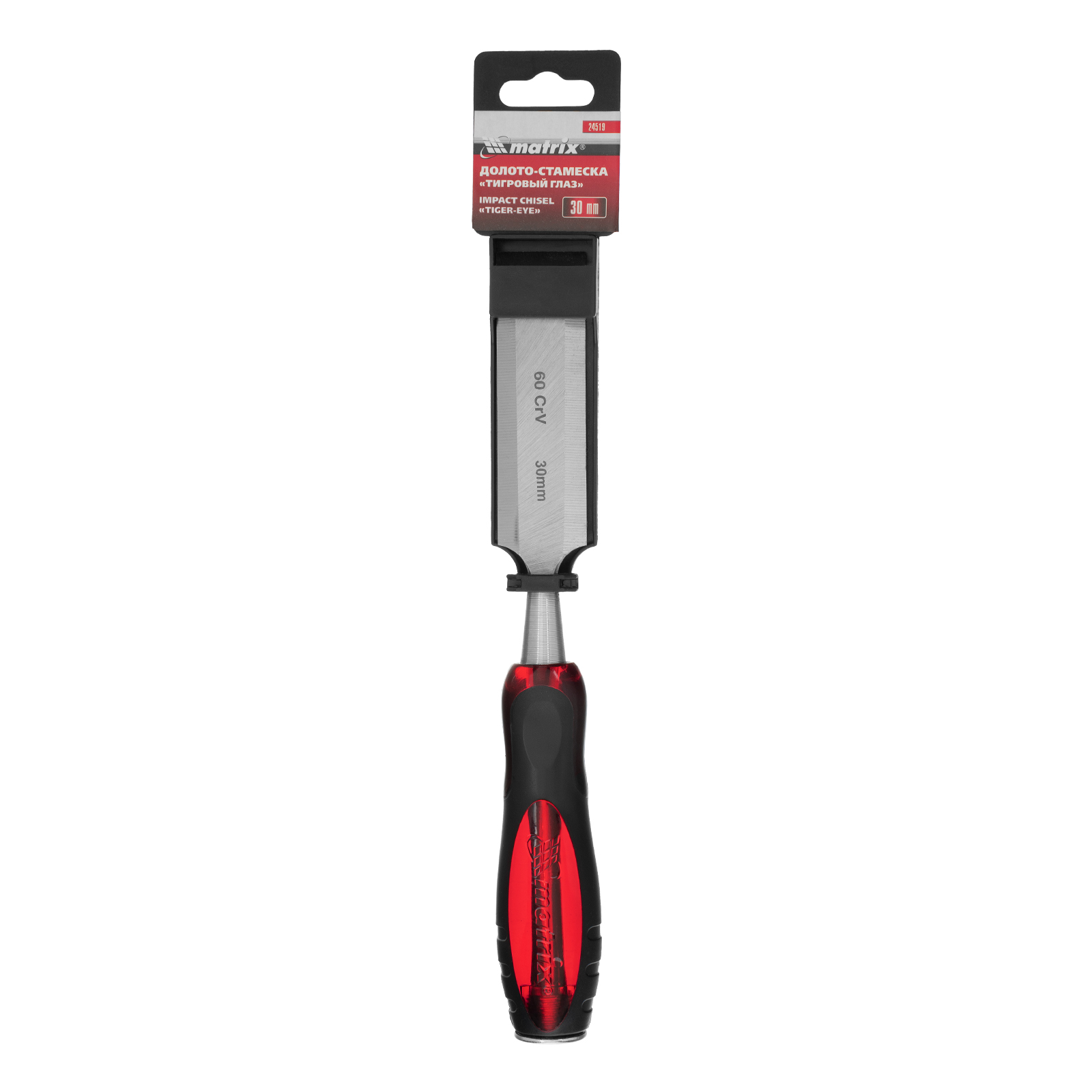 Долото-стамеска Matrix «Тигровый глаз» 24519 с полотном шириной 30 мм и двухкомпонентной обрезиненной рукояткой используется в столярном и плотницком деле, в производстве мебели. Позволяет вырезать углубления, формировать пазы, зачищать шипы и гнезда, снимать фаски. Инструмент выдерживает удары киянкой или молотком, т. к. металлический затыльник защищает его от деформации. Долото относится к профессиональному ручному инструменту, но может применяться и в домашних условиях.