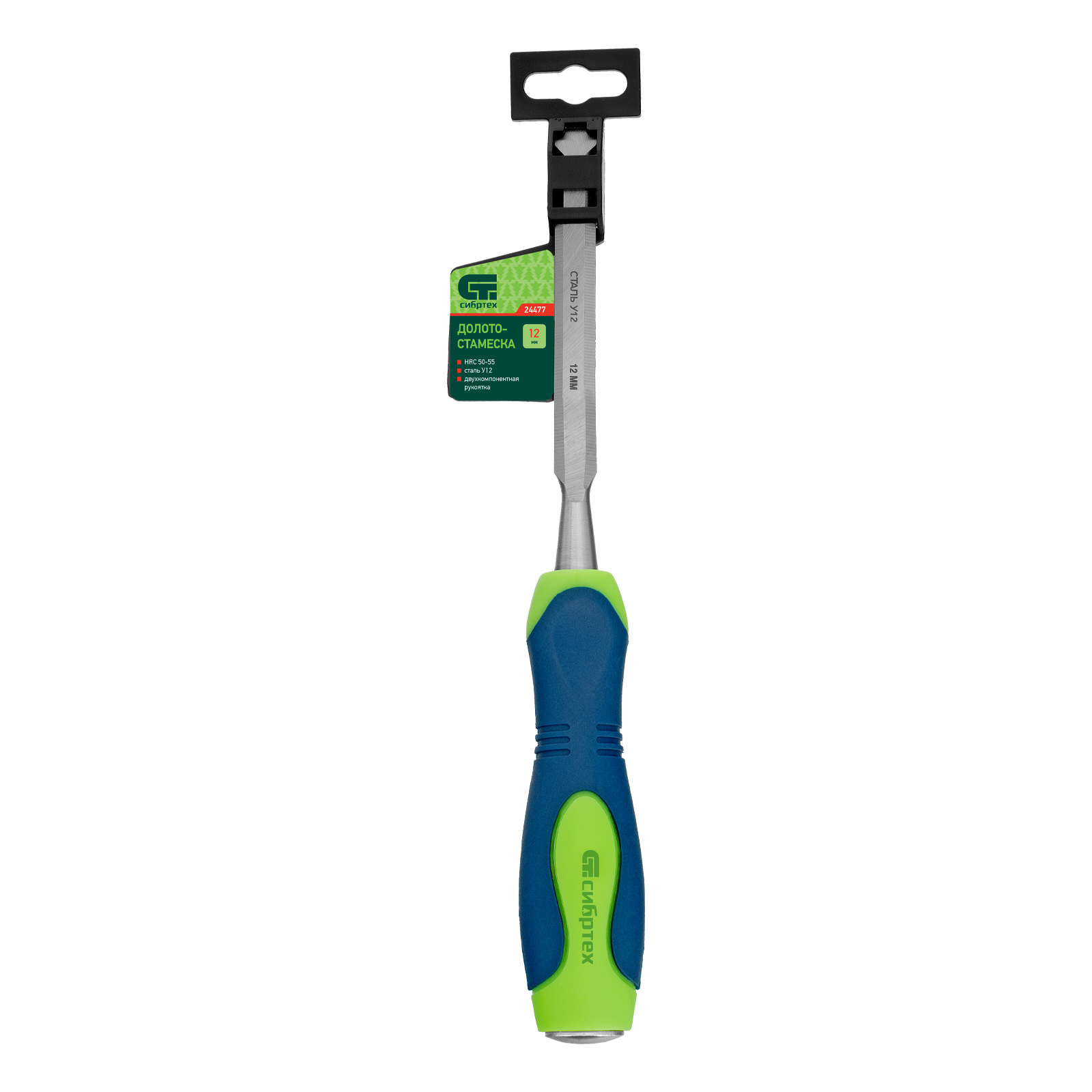 Долото-стамеска Сибртех 24477 с двухкомпонентной рукояткой — ручной инструмент с шириной режущей части 12 мм для столярных и плотницких работ с массивом натурального дерева. Под ударом киянки или небольшого молотка долото-стамеска легко врезается в древесину любых пород, что позволяет получать аккуратные прямоугольные пазы, снимать фаски, зачищать гнезда и т.д.