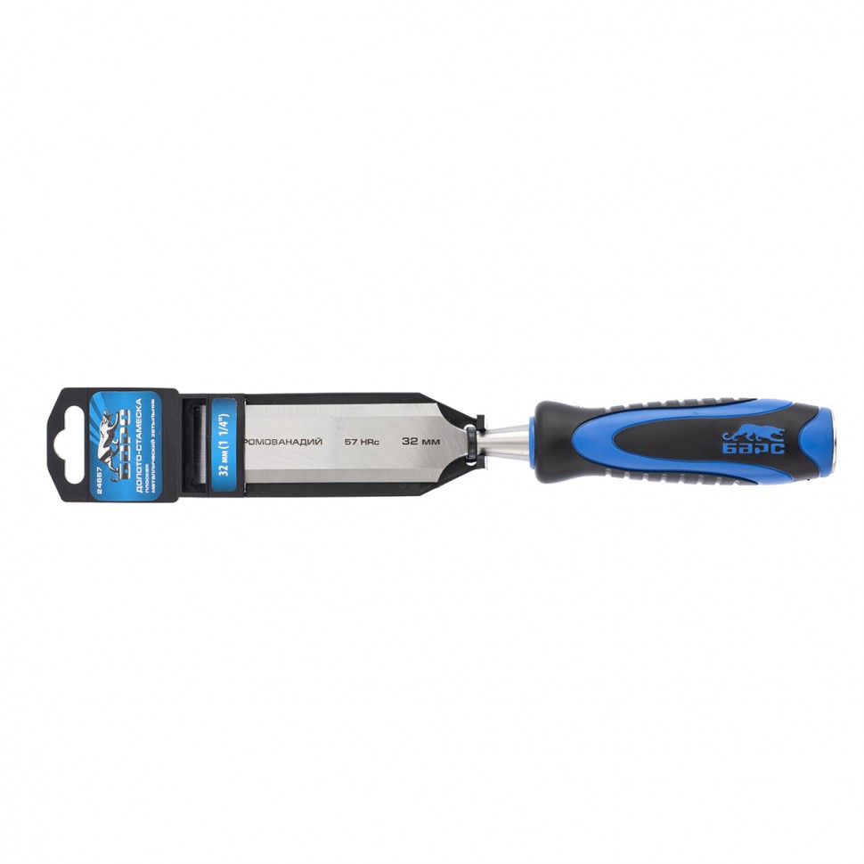Плоское долото-стамеска Барс 24657 с шириной режущей части 32 мм, с двухкомпонентной рукояткой и металлическим затыльником, предназначено для выборки прямоугольных пазов, снятия фасок, обработки шиповых соединений и выполнения других столярно-плотницких работ. Используется для работы с массивом дерева любой твердости. По затыльнику рукоятки можно наносить удары киянкой или небольшим молотком, поэтому инструмент легко погружается в древесину и обеспечивает аккуратный ровный контур среза.