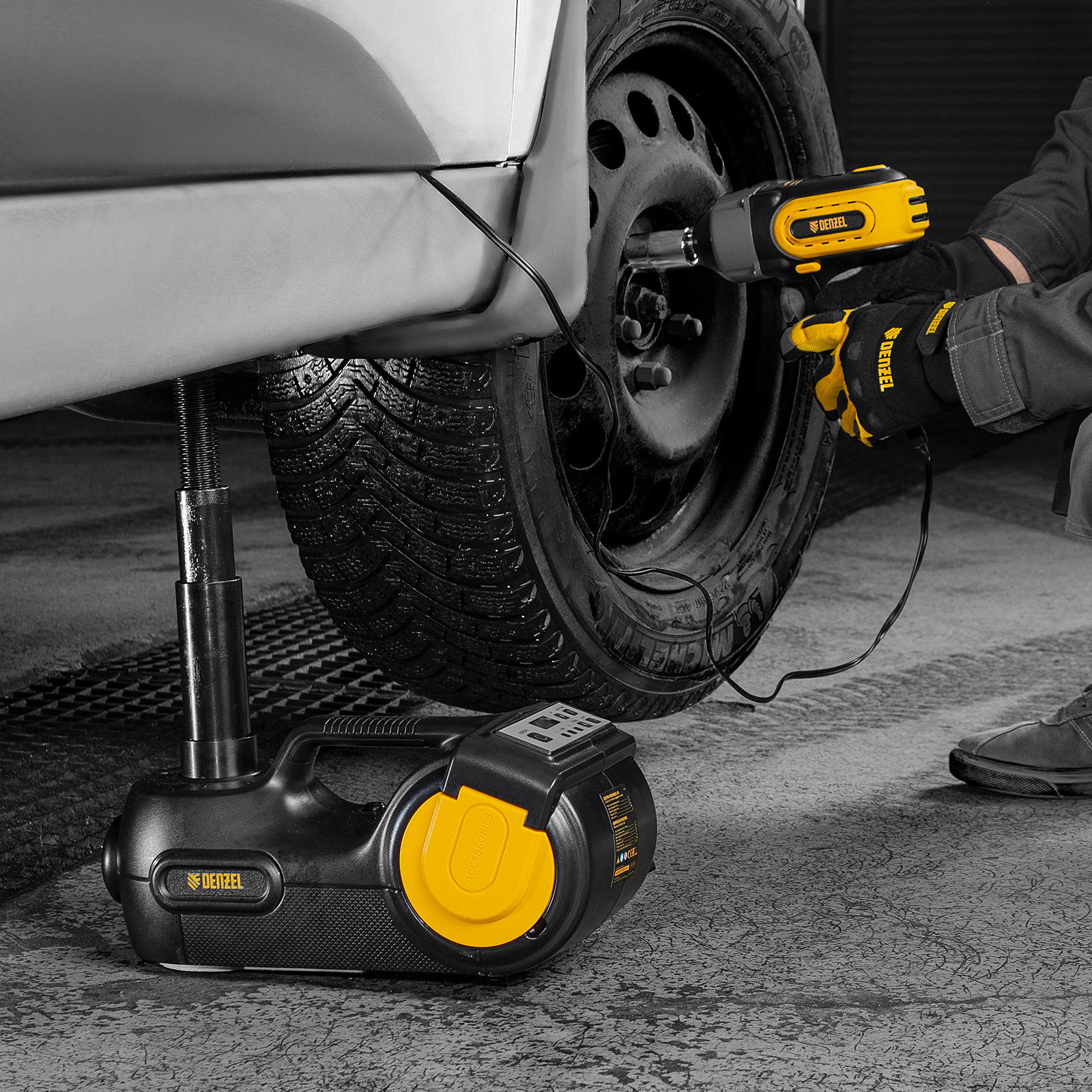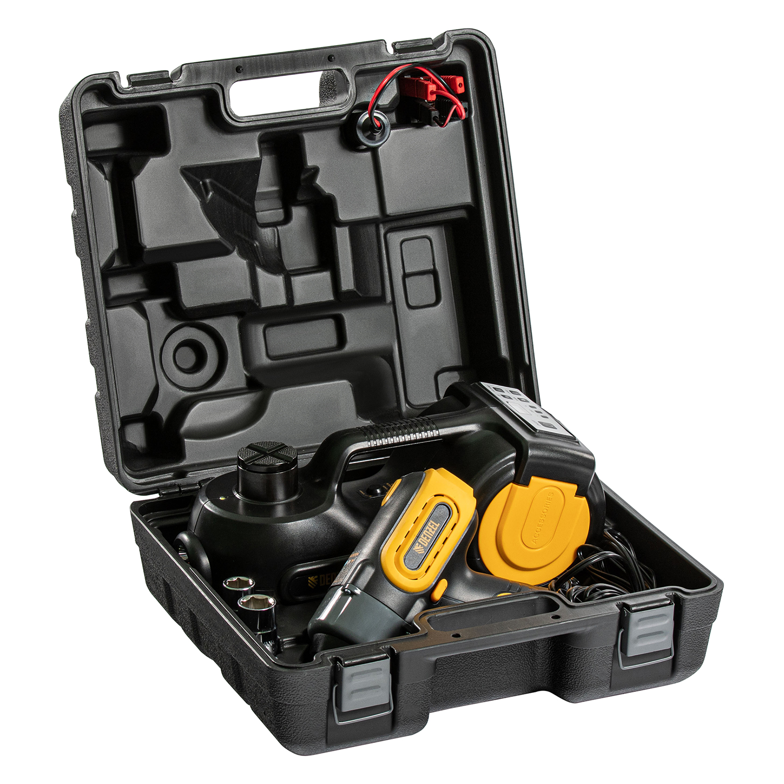 Домкрат электрогидравлический «3 в 1» (1,5 т), 12В, с гайковертом электрическим, в наборе Denzel