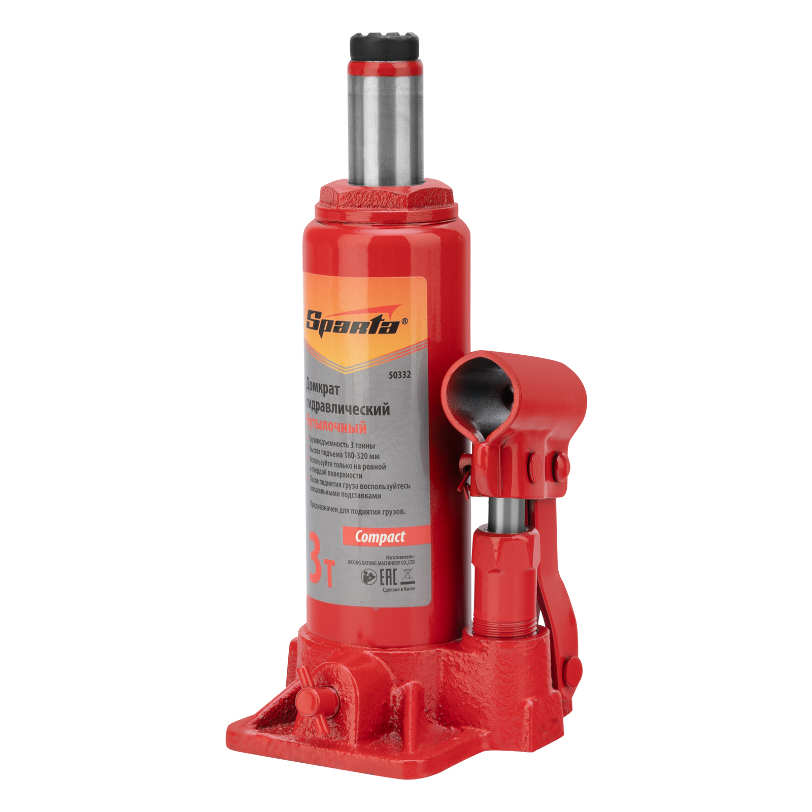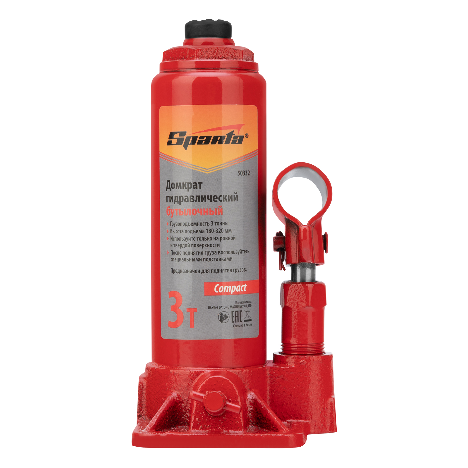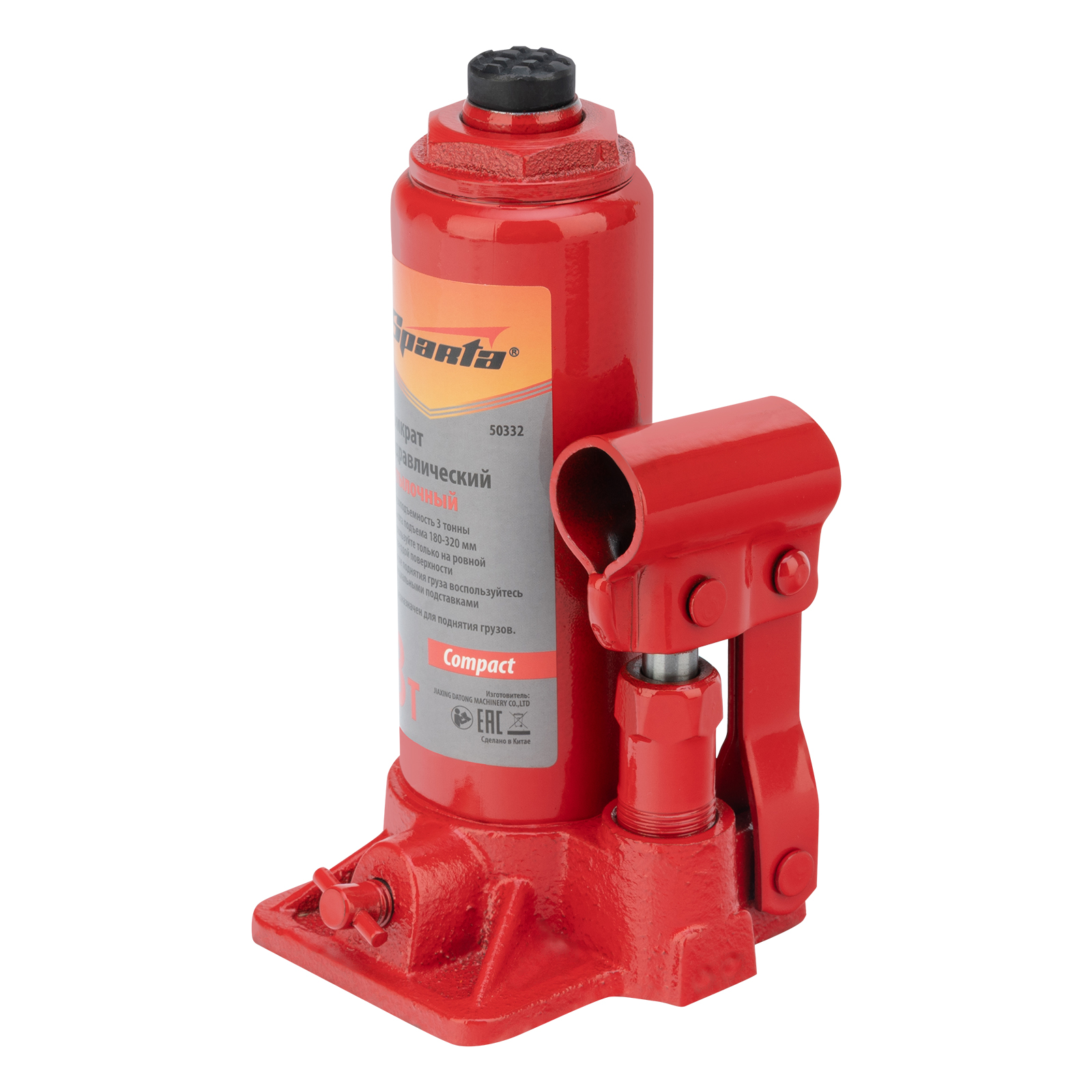 Домкрат гидравлический бутылочный 3т, h подъема 180-320 мм Sparta Compact