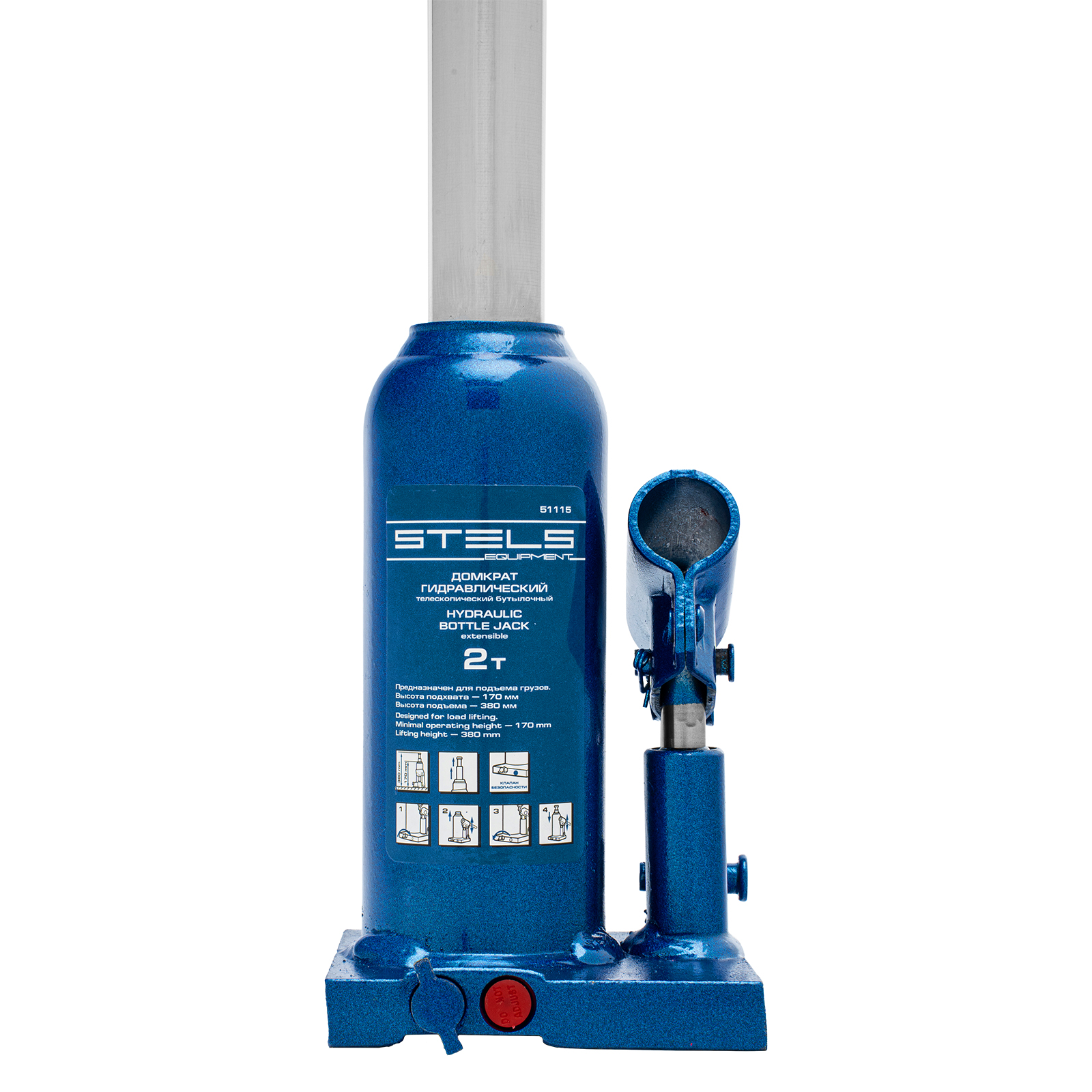 Домкрат гидравлический бутылочный телескопический, 2 т, H подъема 170-380 мм Stels
