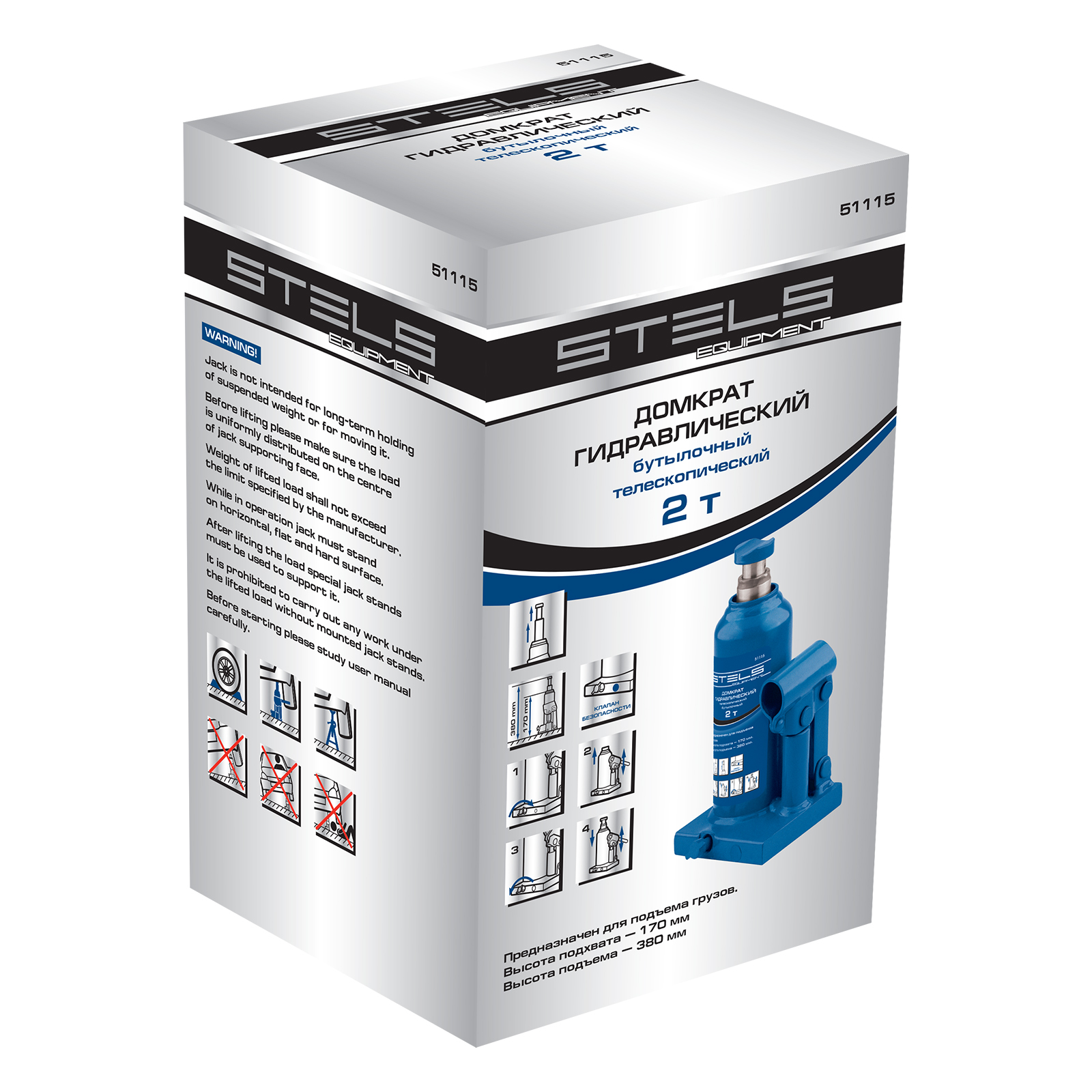 Гидравлический бутылочный телескопический домкрат Stels 51115 используется для поднятия грузов весом до 2 т с на высоту 170-380 мм. Не требует больших усилий и оптимален для автомобилей с большим клиренсом. Домкрат можно использовать в гараже для самостоятельного ремонта машины или в автосервисе для решения профессиональных задач.