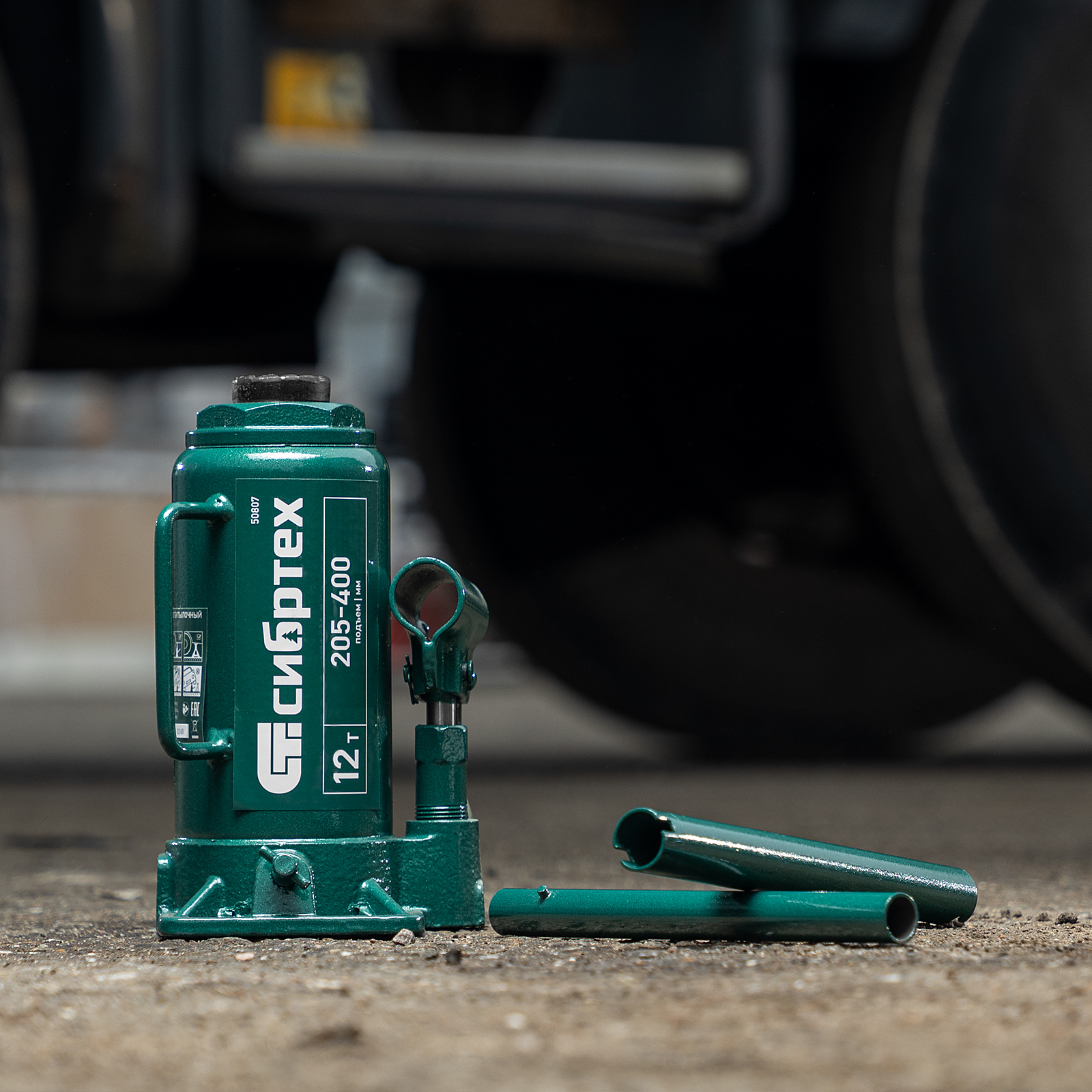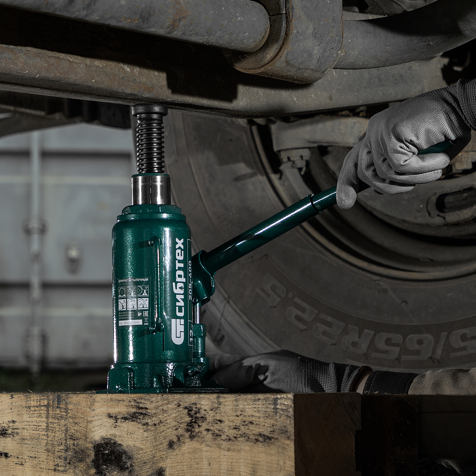 Домкрат гидравлический бутылочный Сибртех 50807 предназначен для подъема грузов массой до 12 т на высоту от 205 до 400 мм. Не требует больших усилий от пользователя и значительно облегчает рабочий процесс. Домкрат будет полезен при проведении техобслуживания машины в автосервисе или гараже.