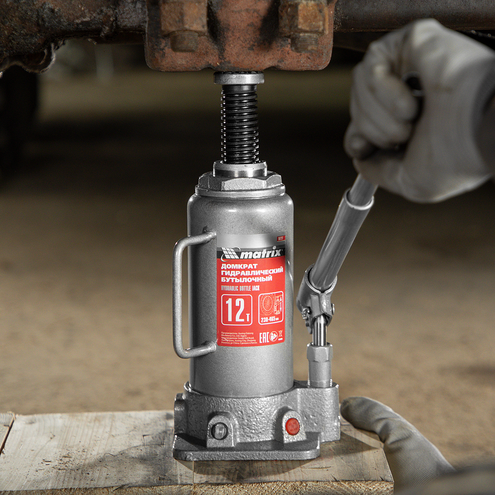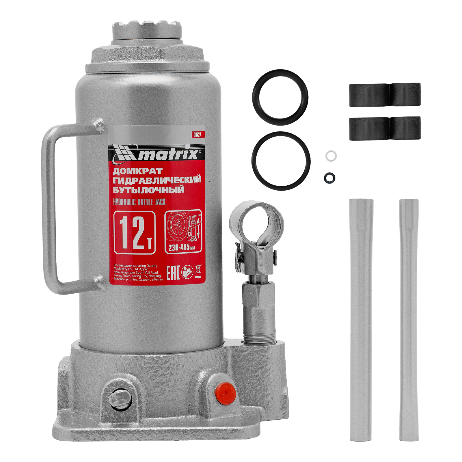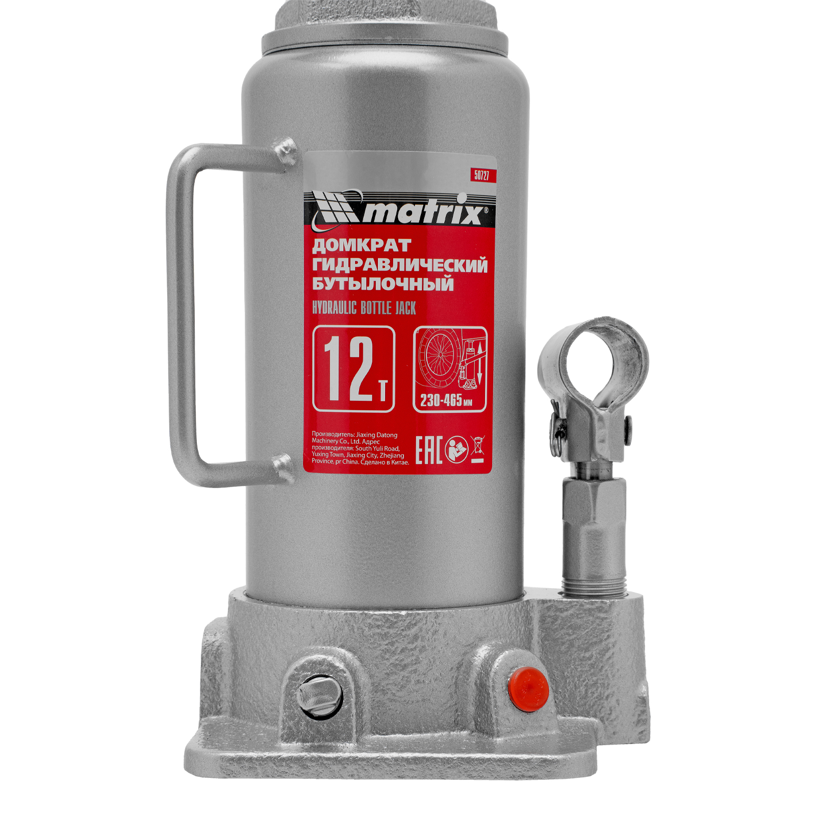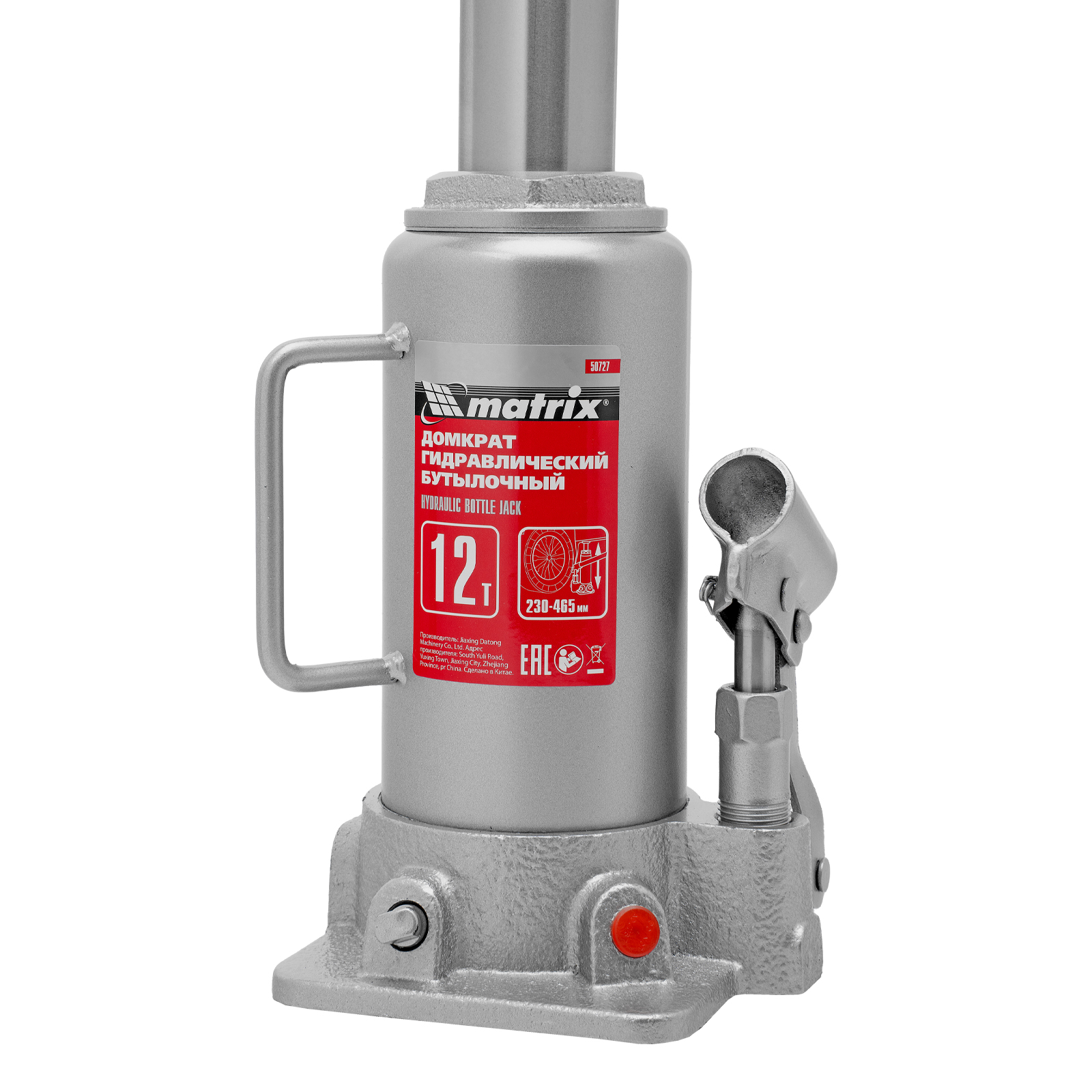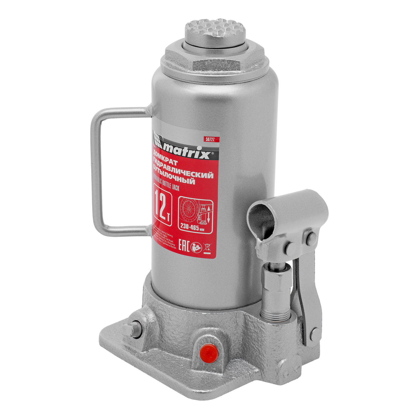 Домкрат гидравлический бутылочный, 12 т, высота подъема 230-465 мм Matrix в Уфе
