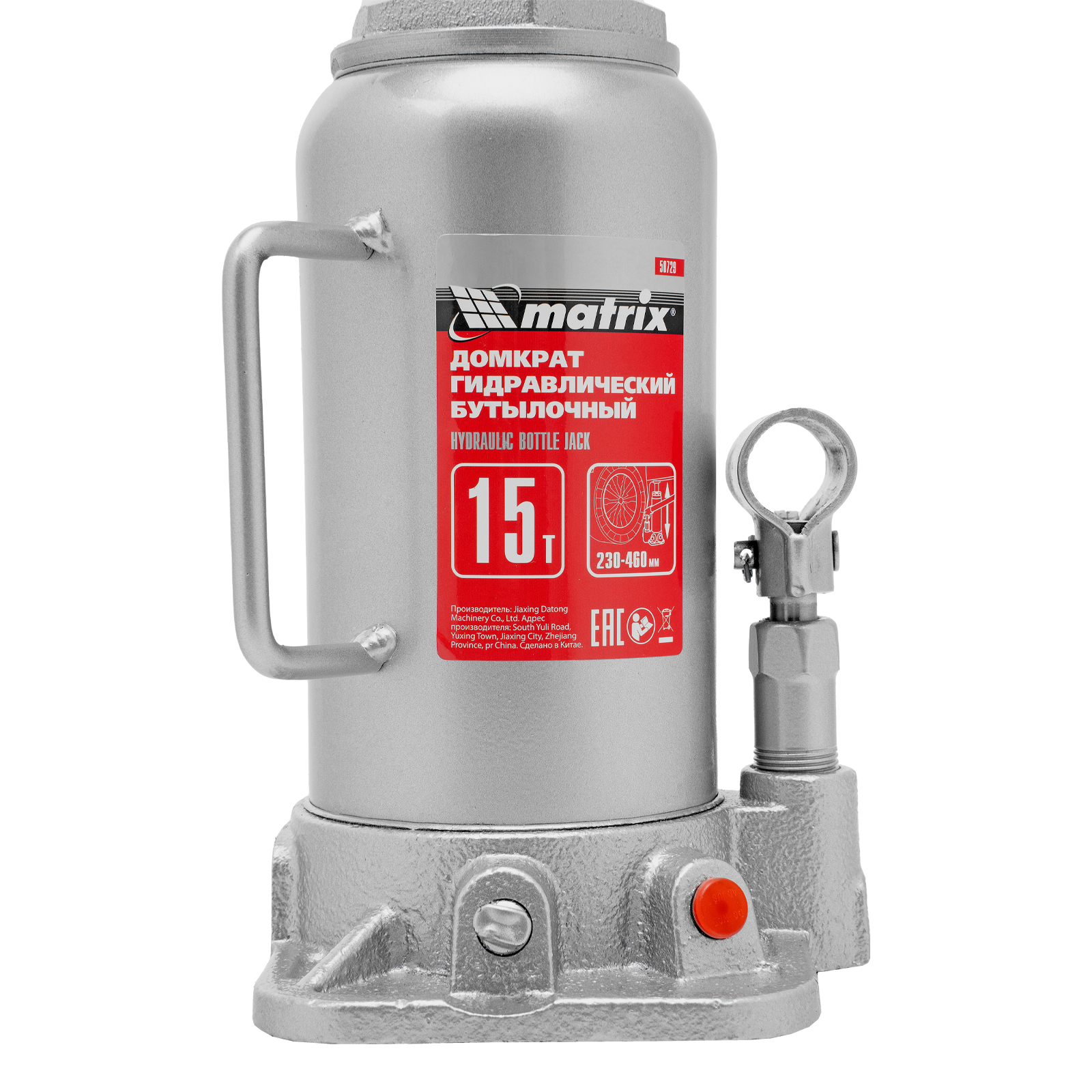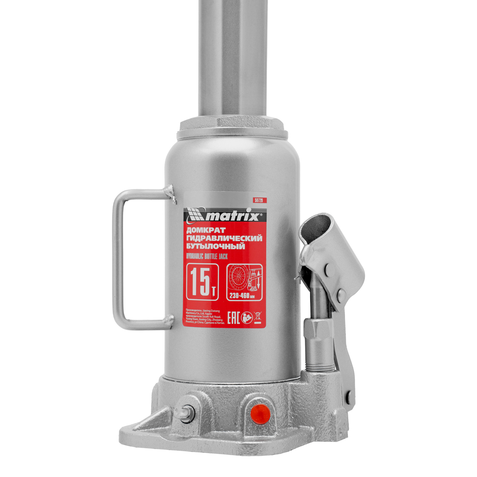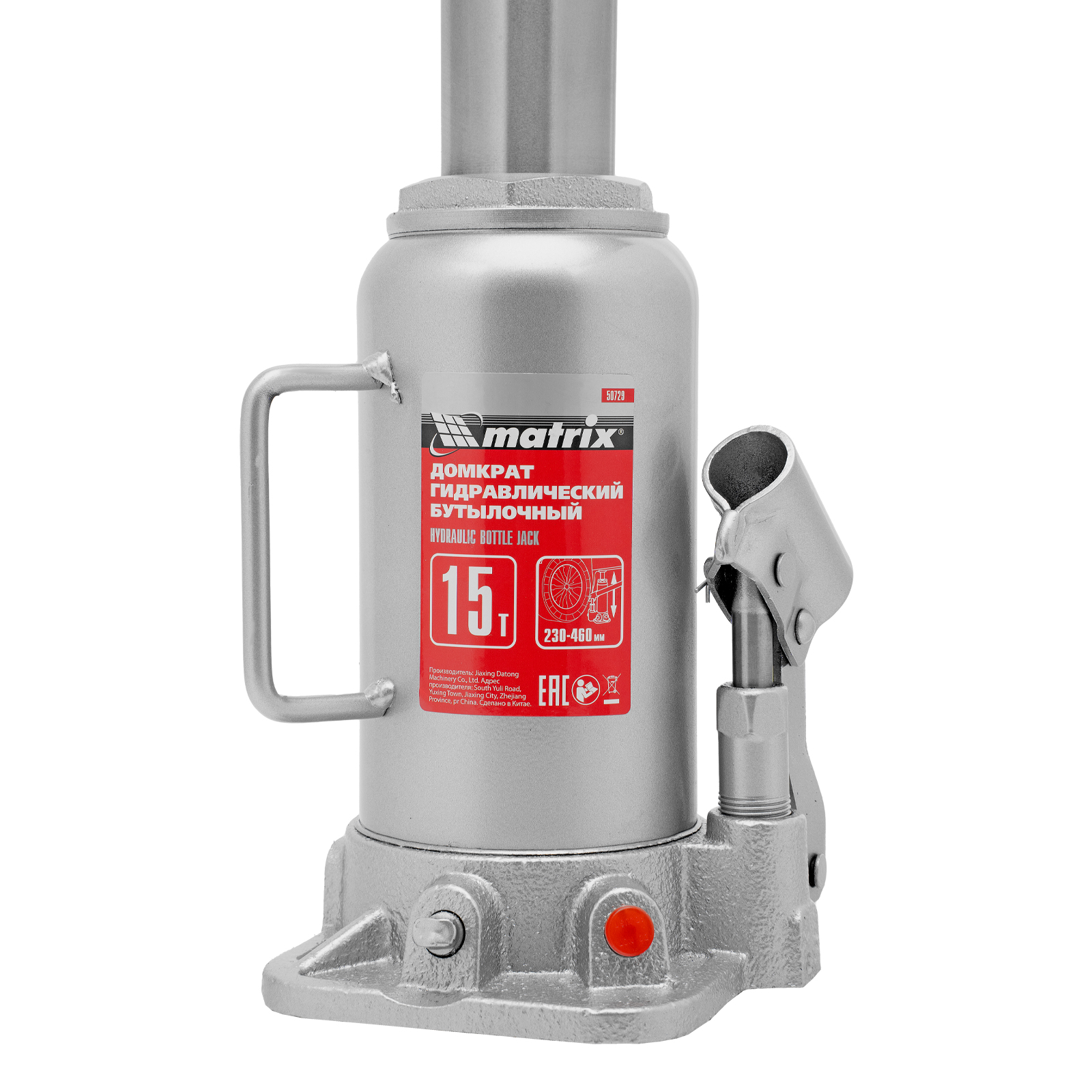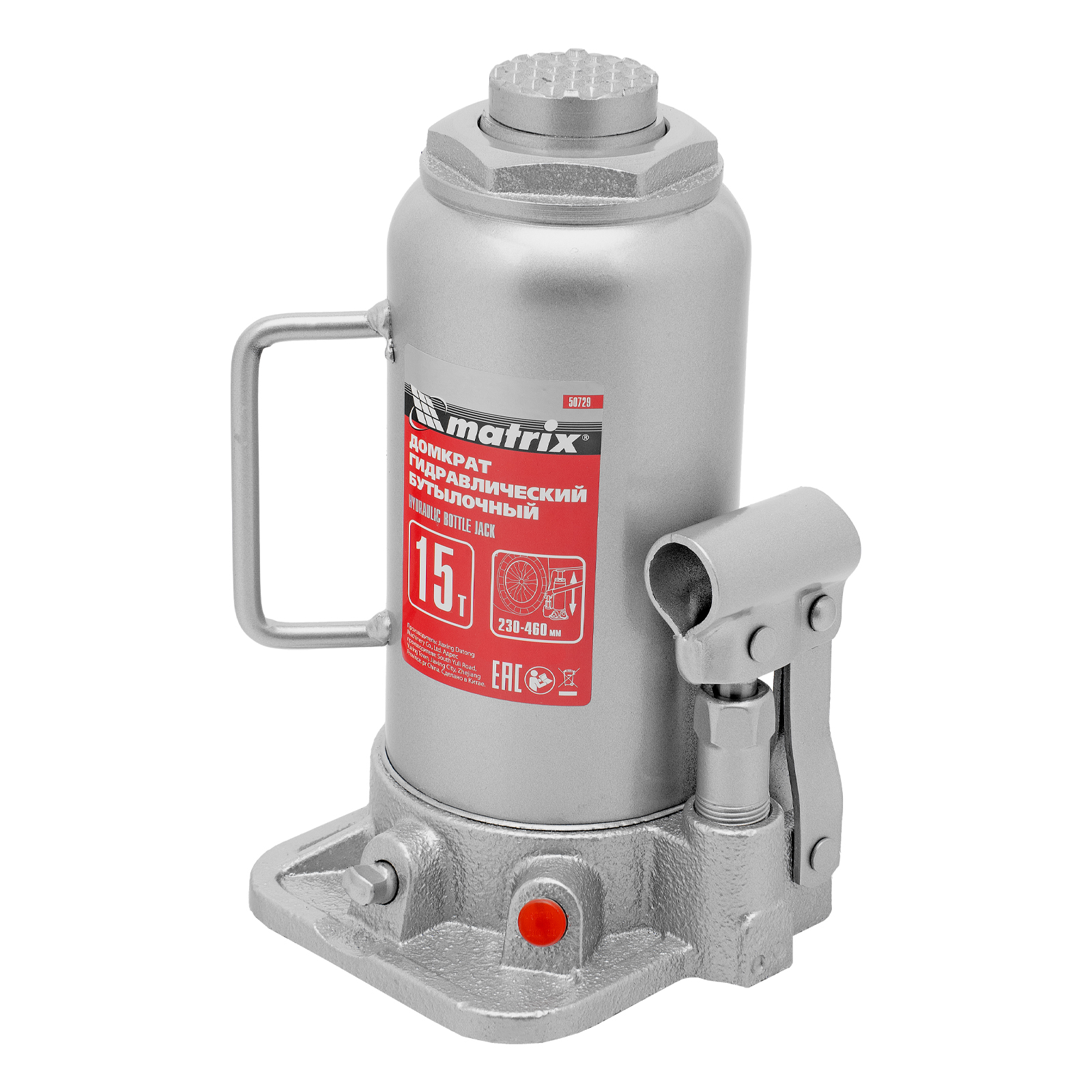 Домкрат гидравлический бутылочный, 15 т, высота подъема 230-460 мм Matrix в Уфе