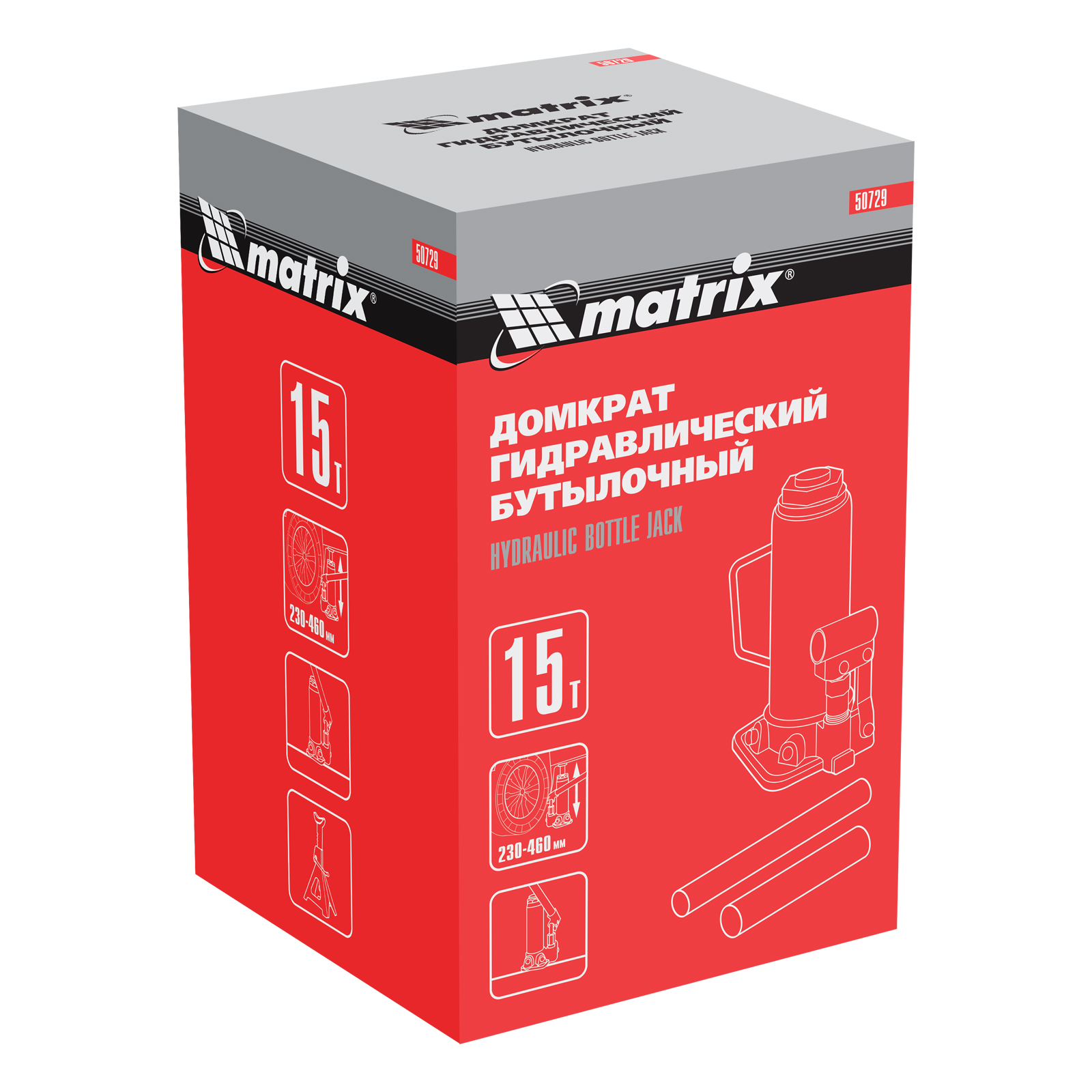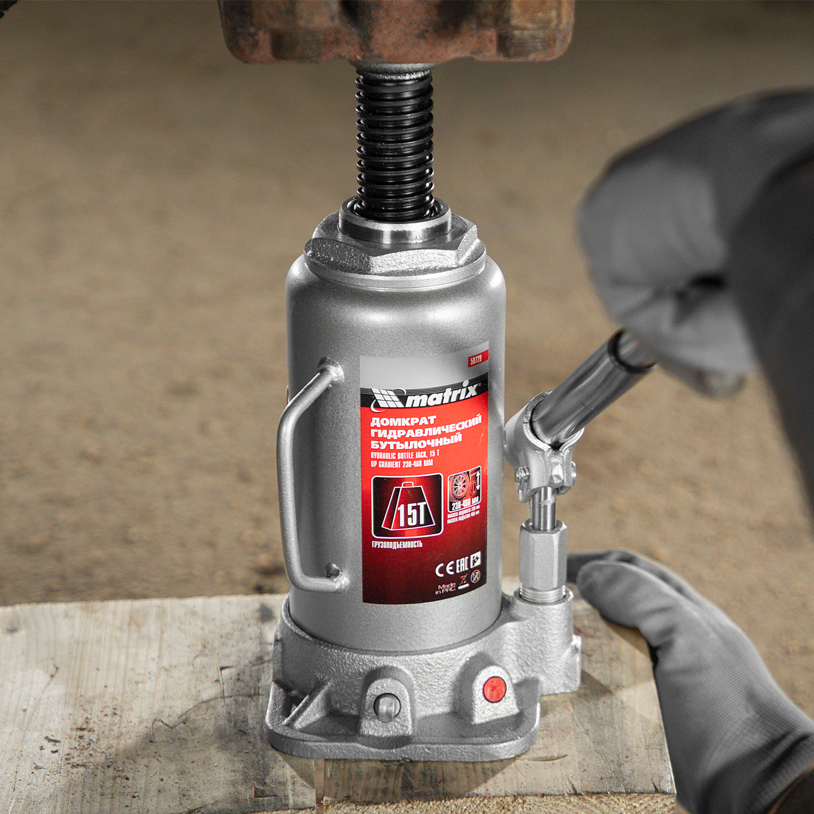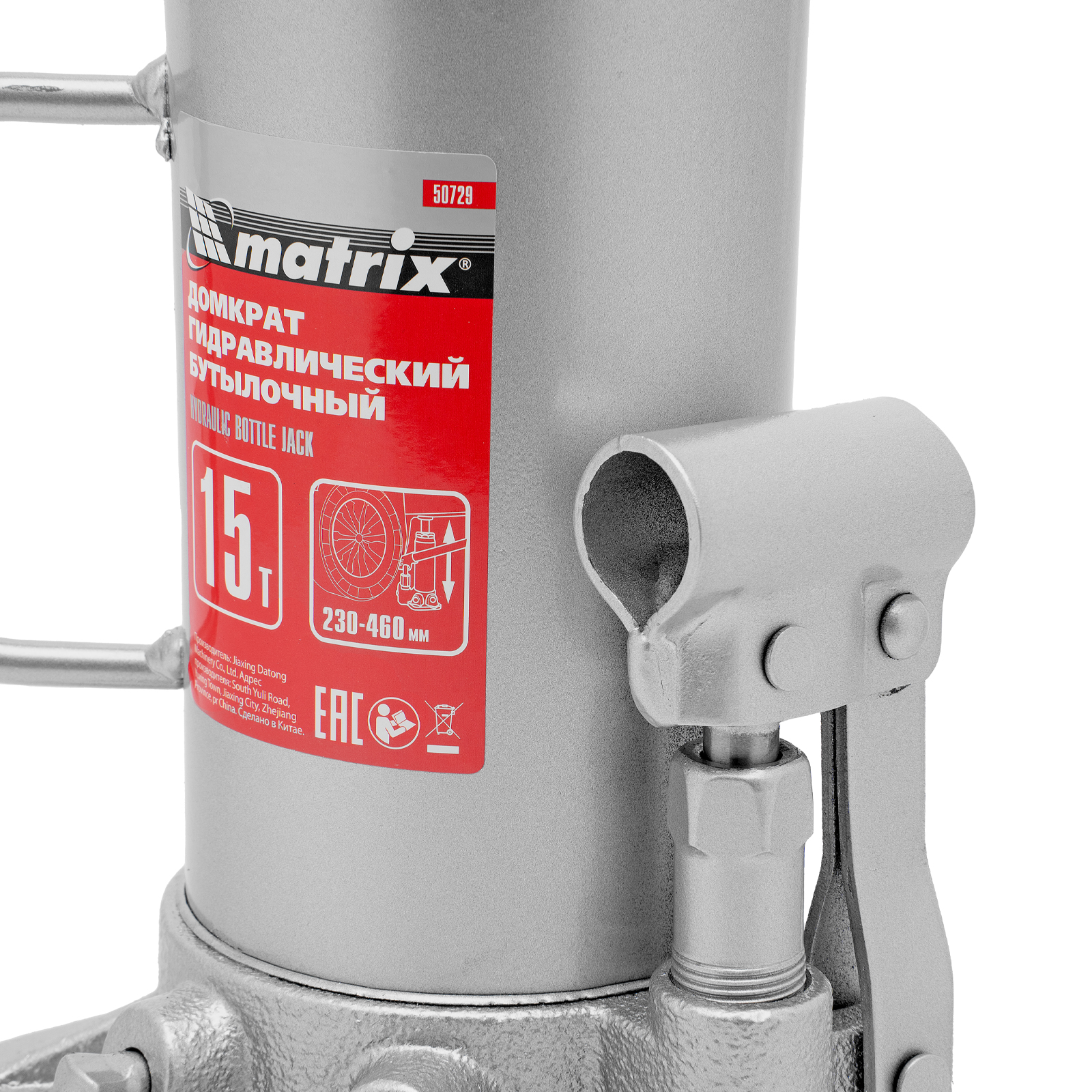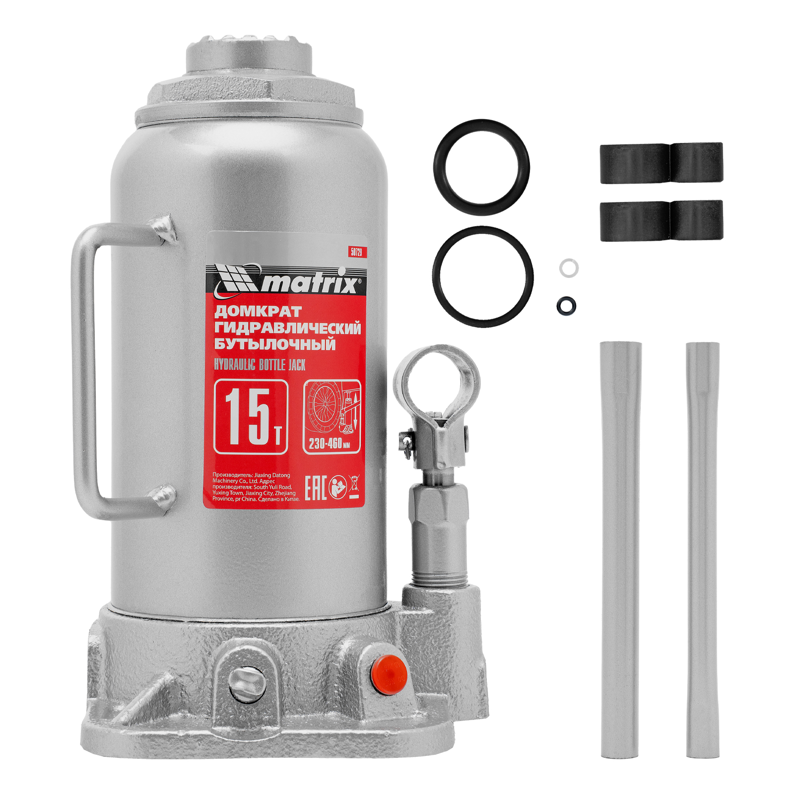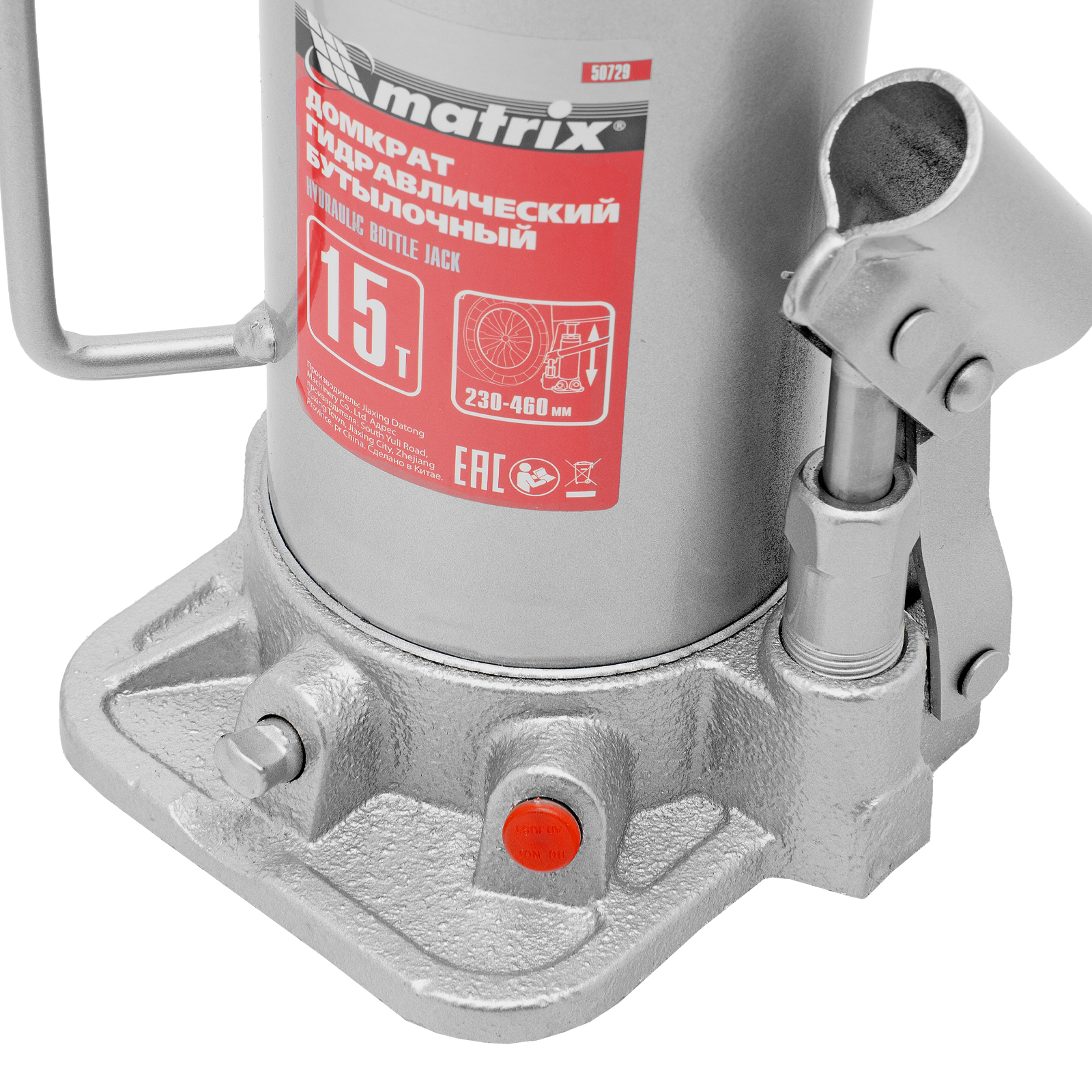 Домкрат гидравлический бутылочный, 15 т, высота подъема 230-460 мм Matrix в Уфе