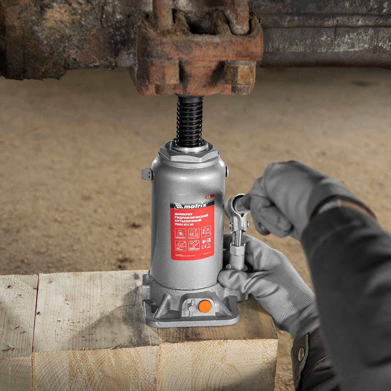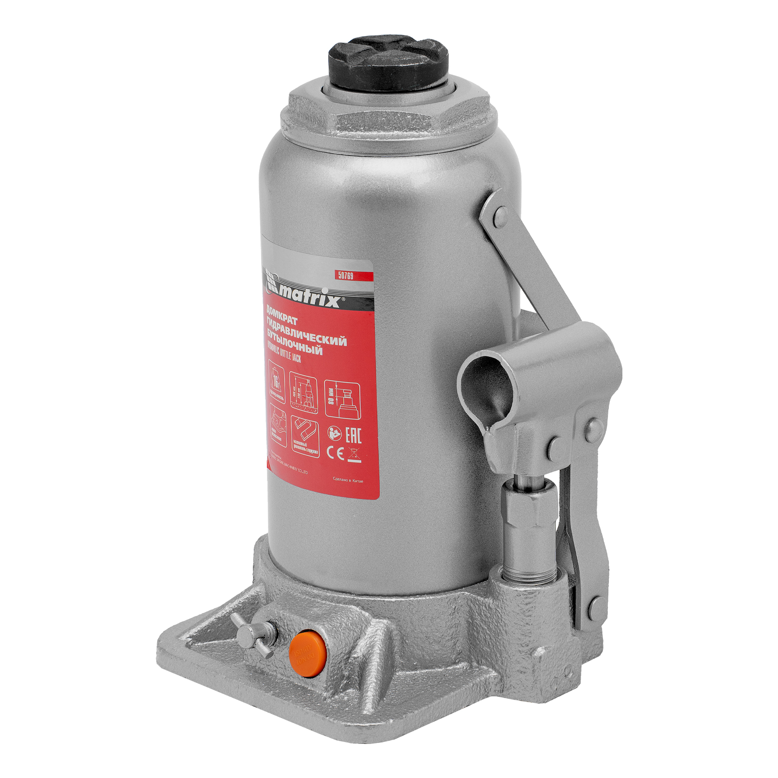Домкрат гидравлический бутылочный, 16 т, h подъема 230-460 мм Matrix