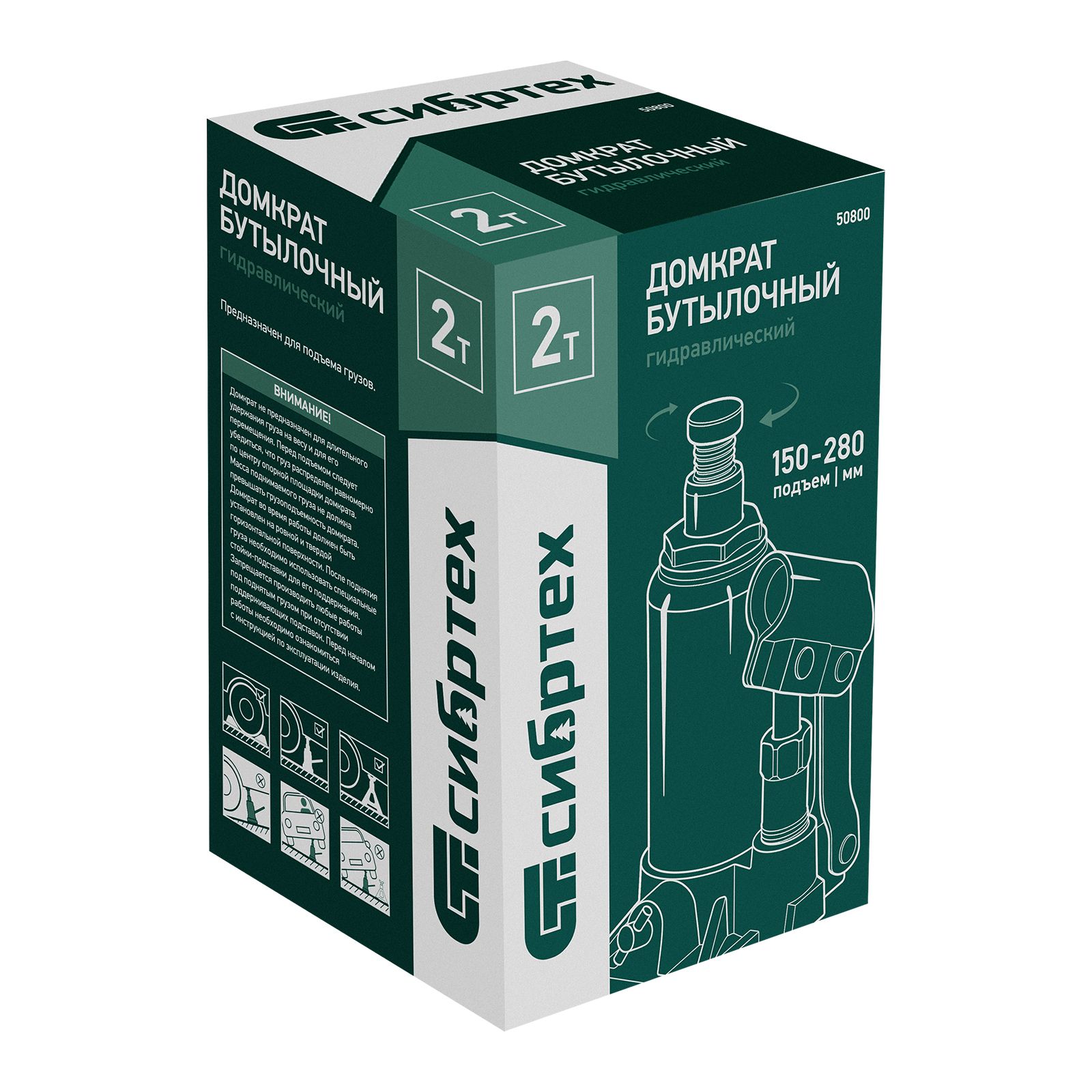 Домкрат гидравлический бутылочный, 2 т, 150-280 мм Сибртех