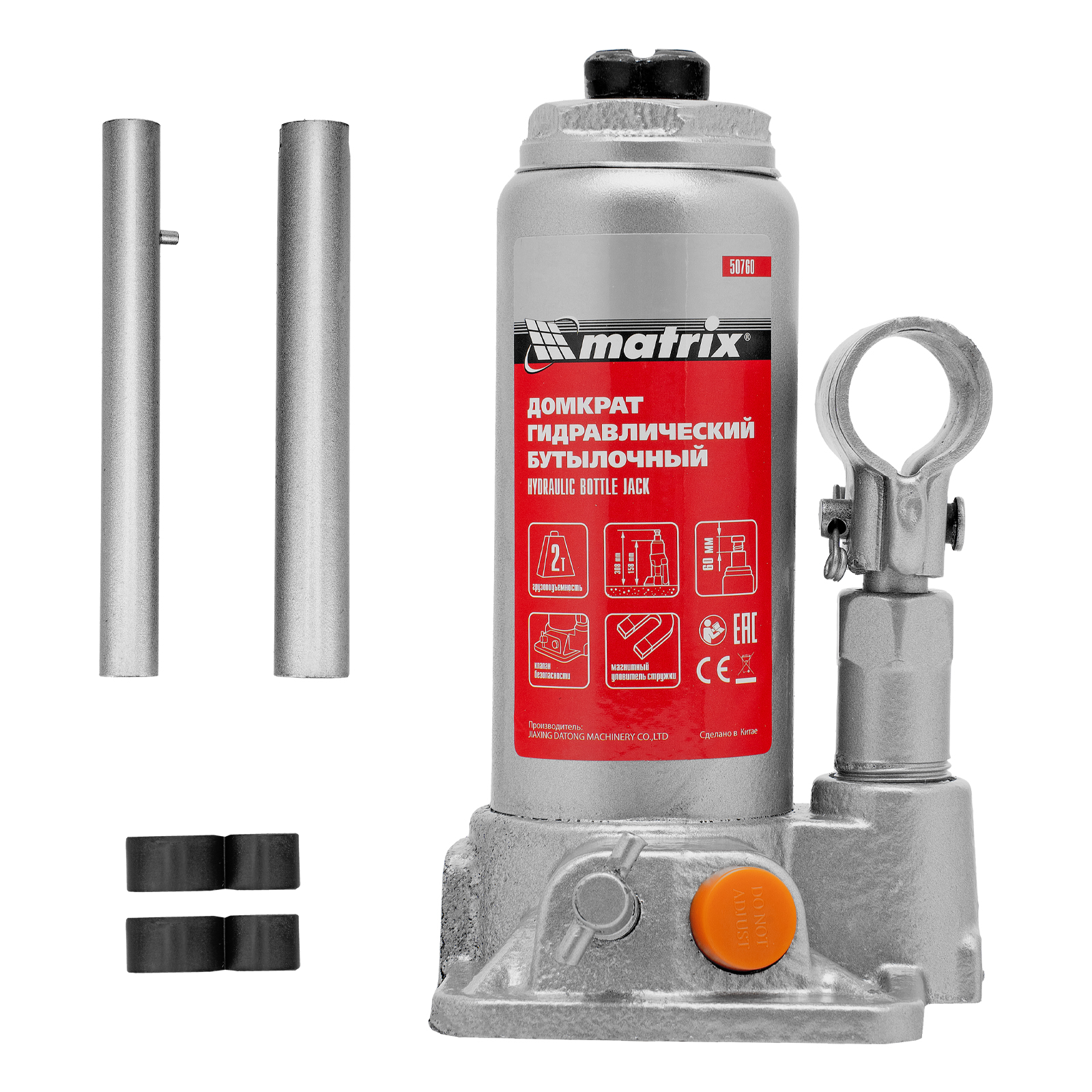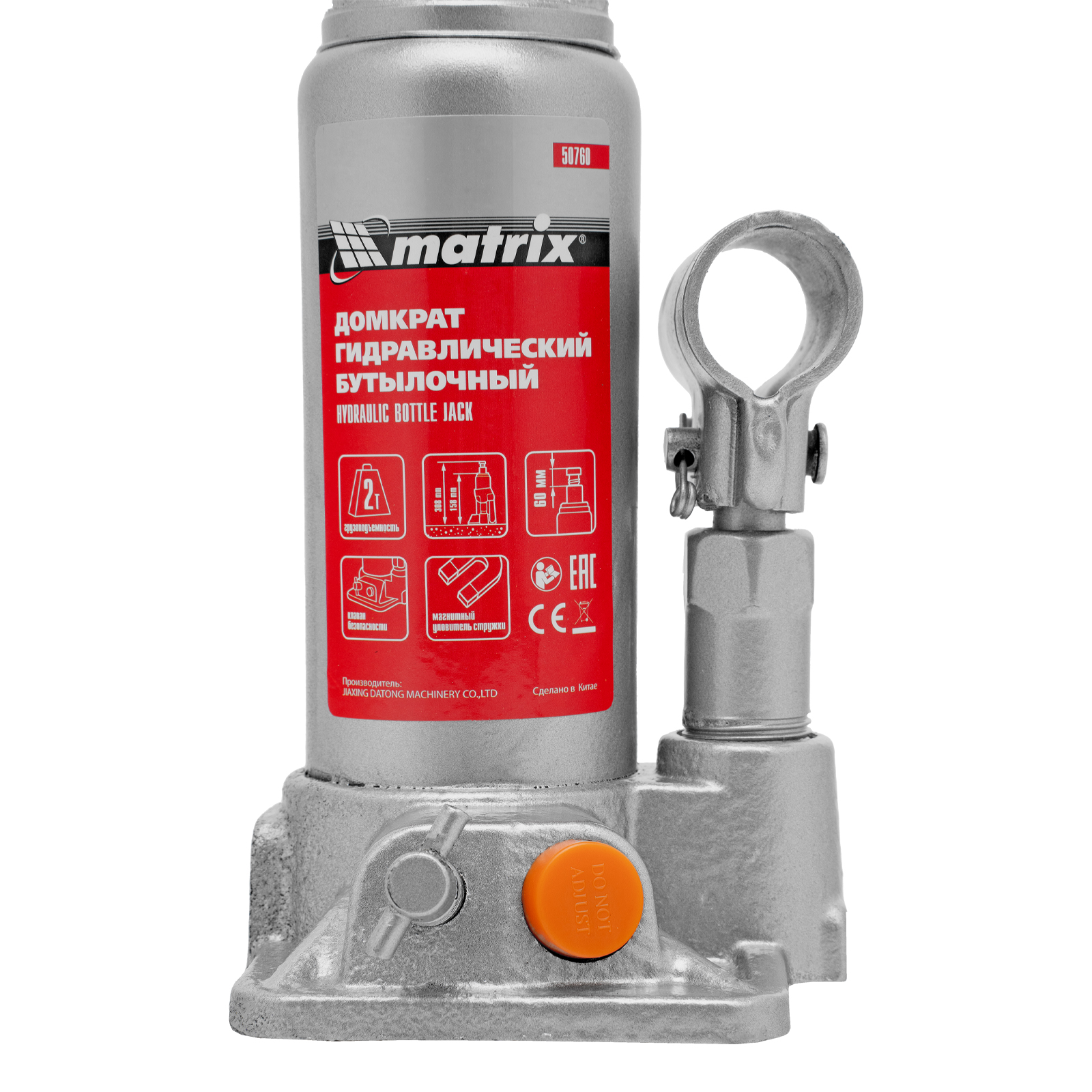 Домкрат гидравлический бутылочный, 2 т, h подъема 158-308 мм Matrix в Уфе