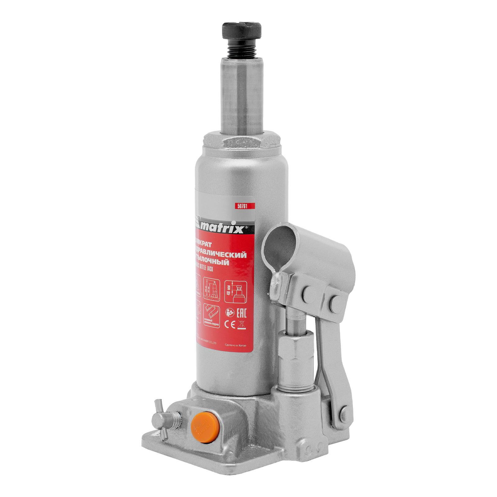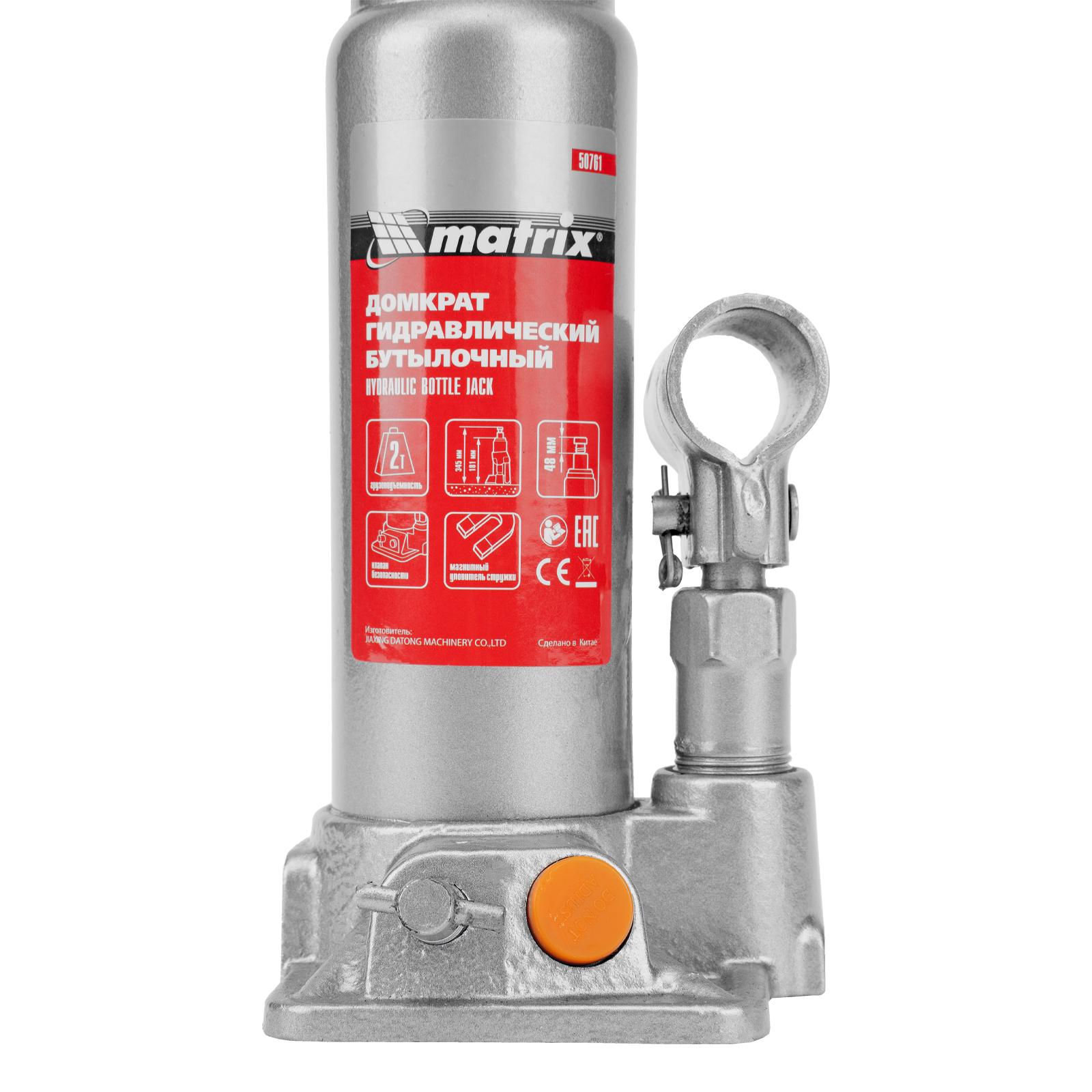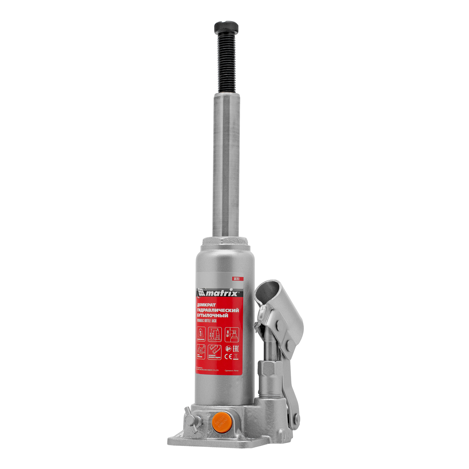 Домкрат гидравлический бутылочный, 2 т, h подъема 181-345 мм Matrix в Уфе