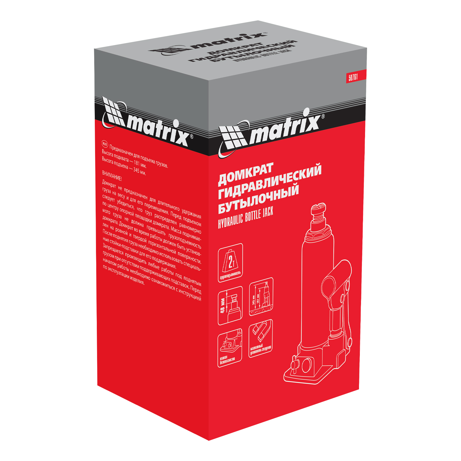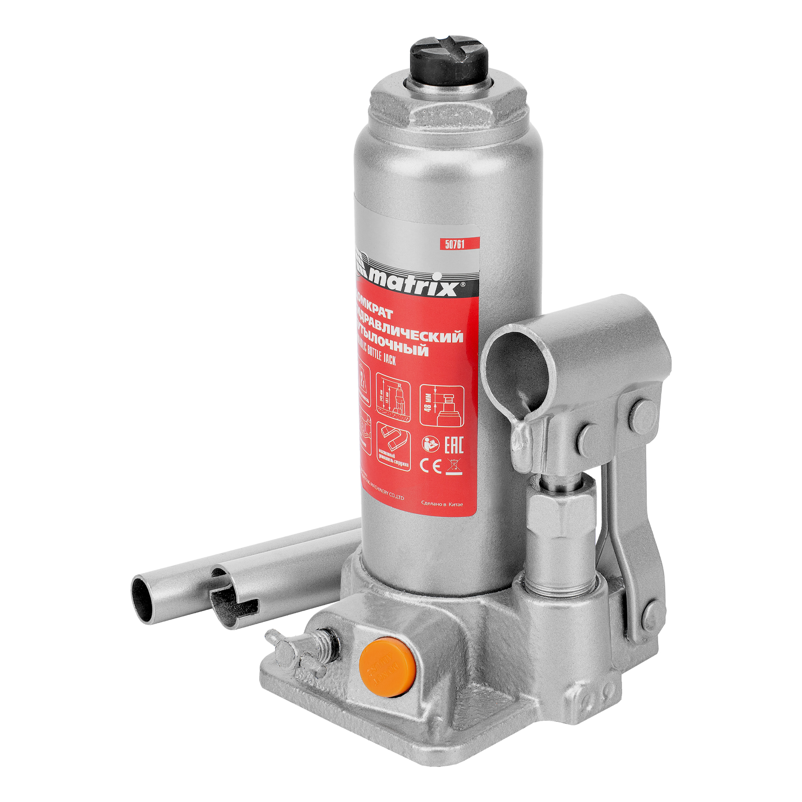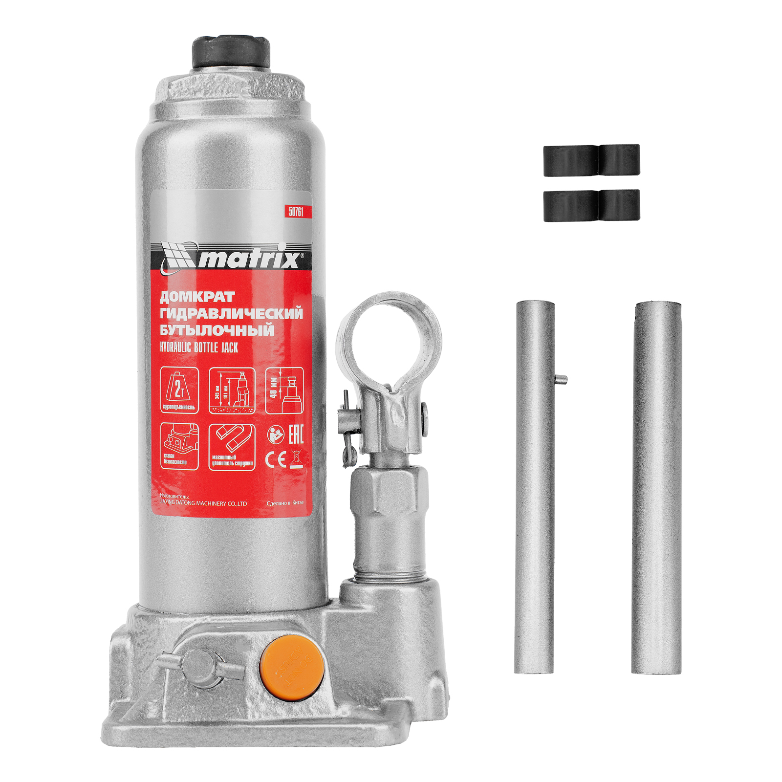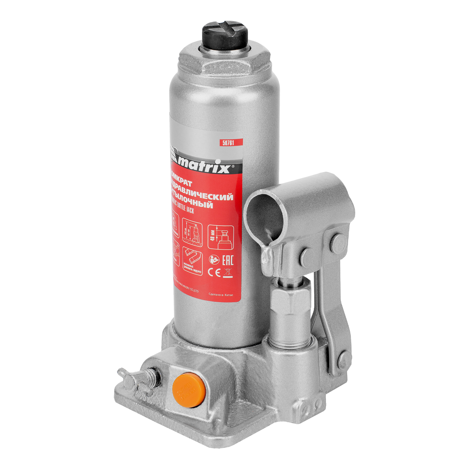 Домкрат гидравлический бутылочный, 2 т, h подъема 181-345 мм Matrix в Уфе