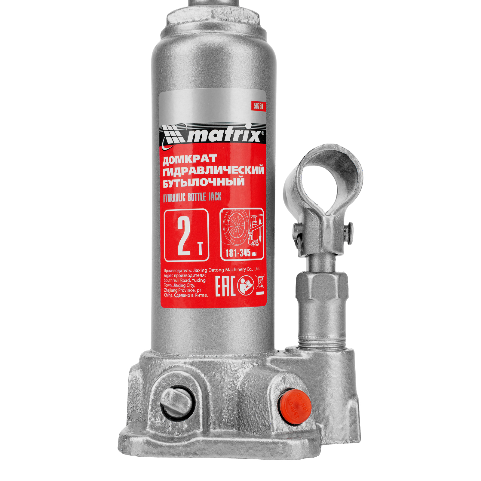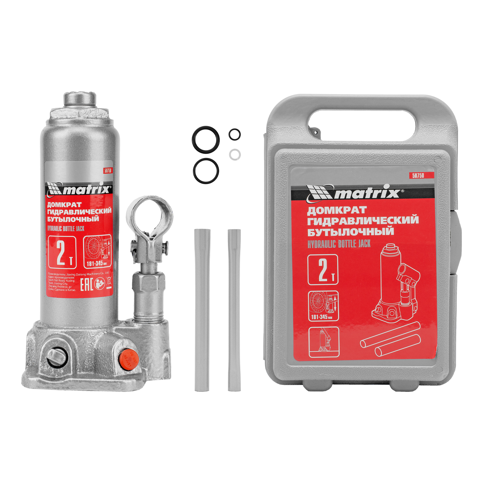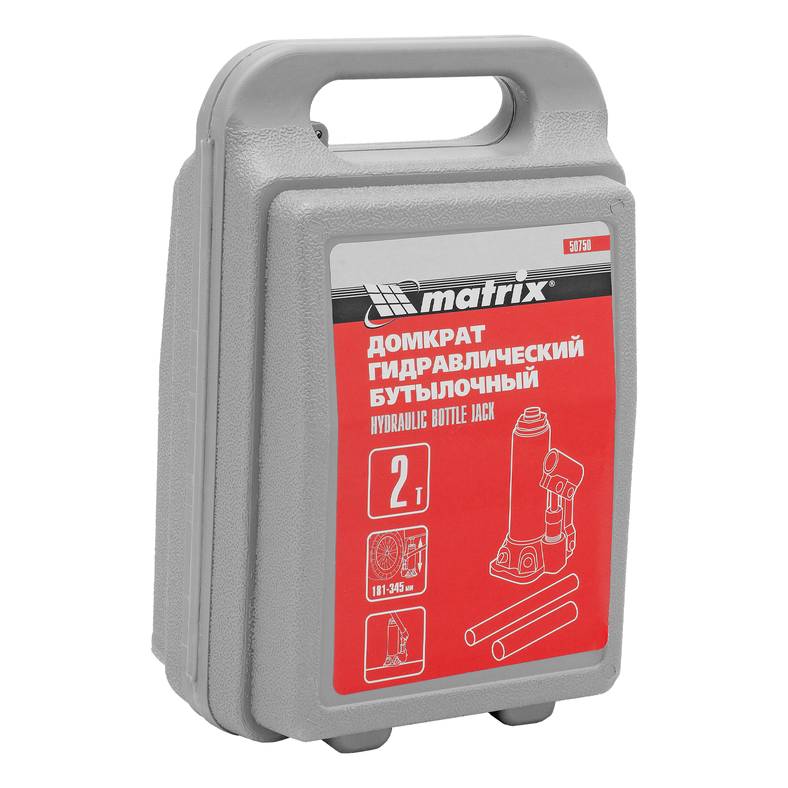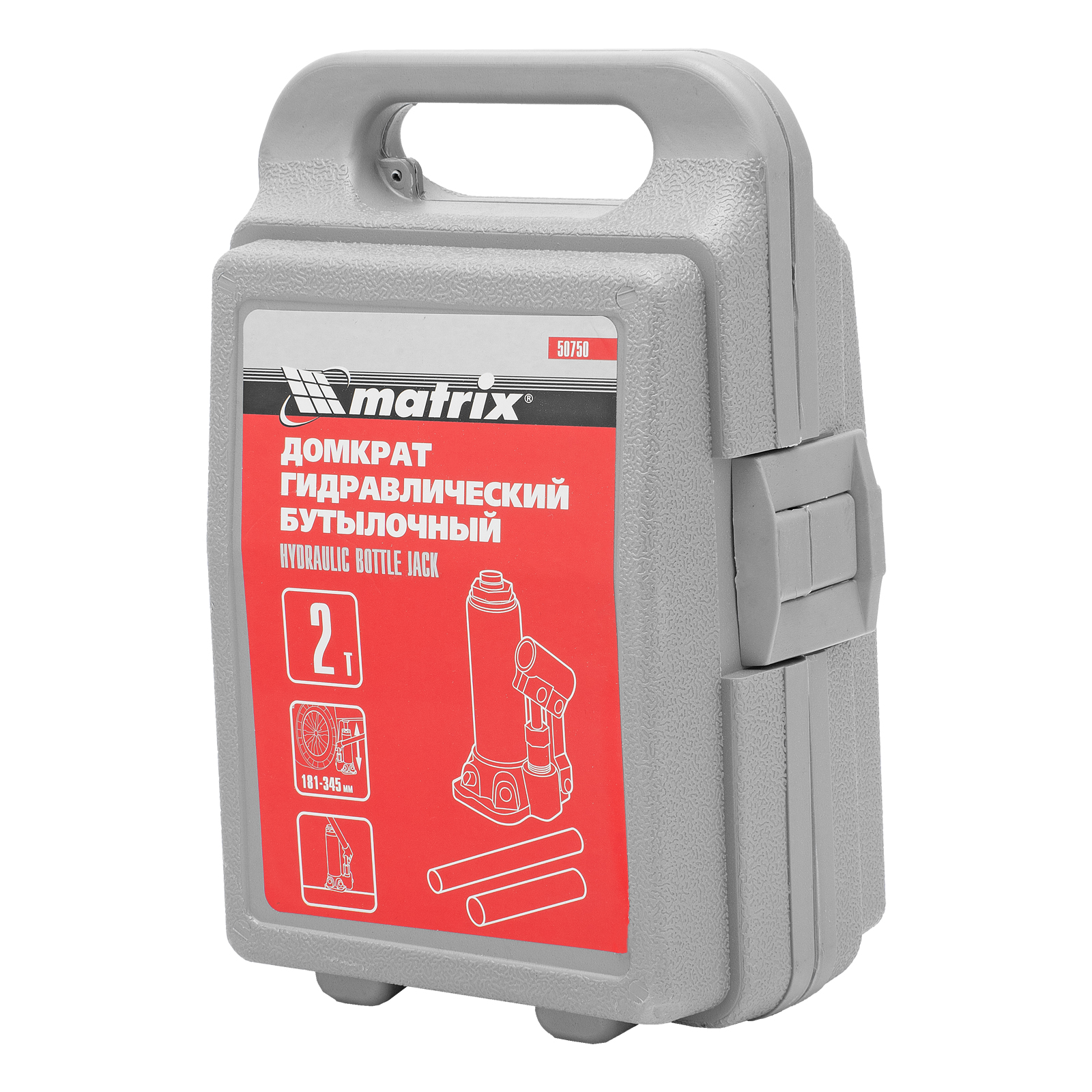 Домкрат гидравлический бутылочный, 2 т, высота подъема 181-345 мм, в пластиковый кейсе Matrix в Уфе