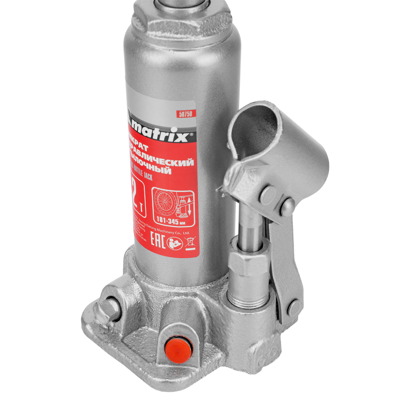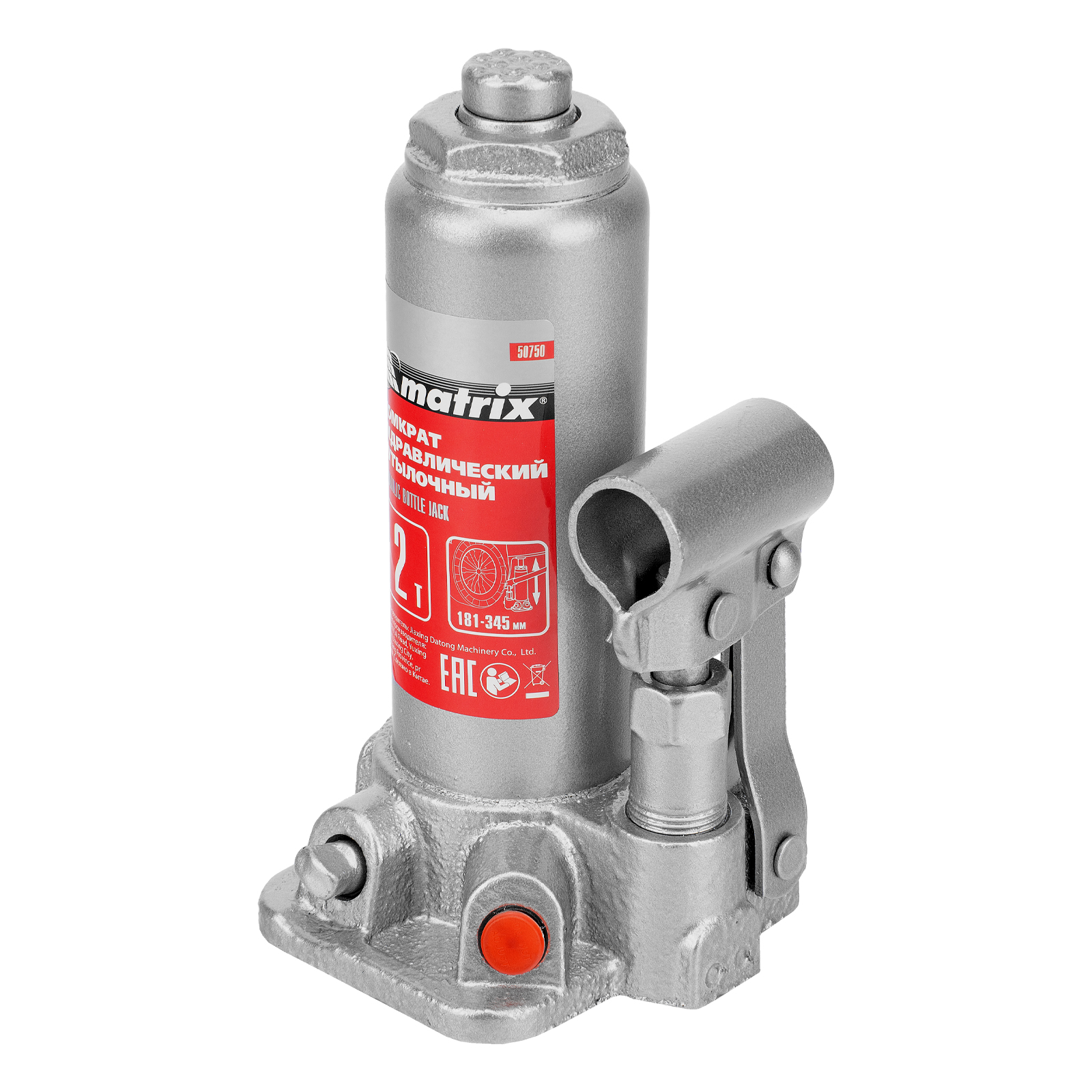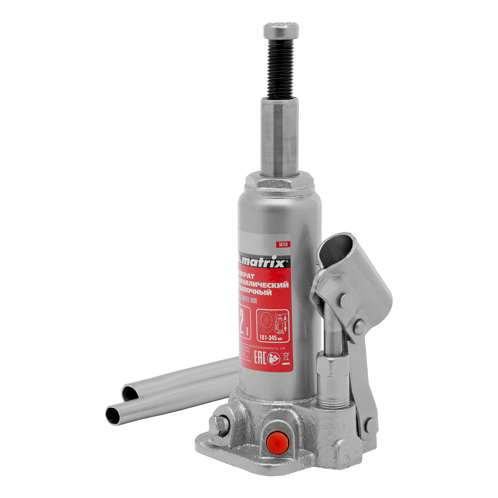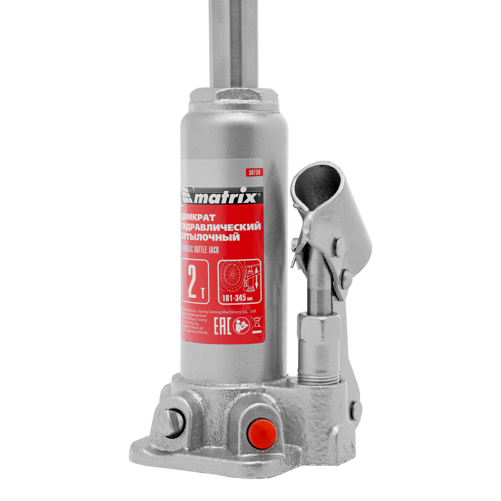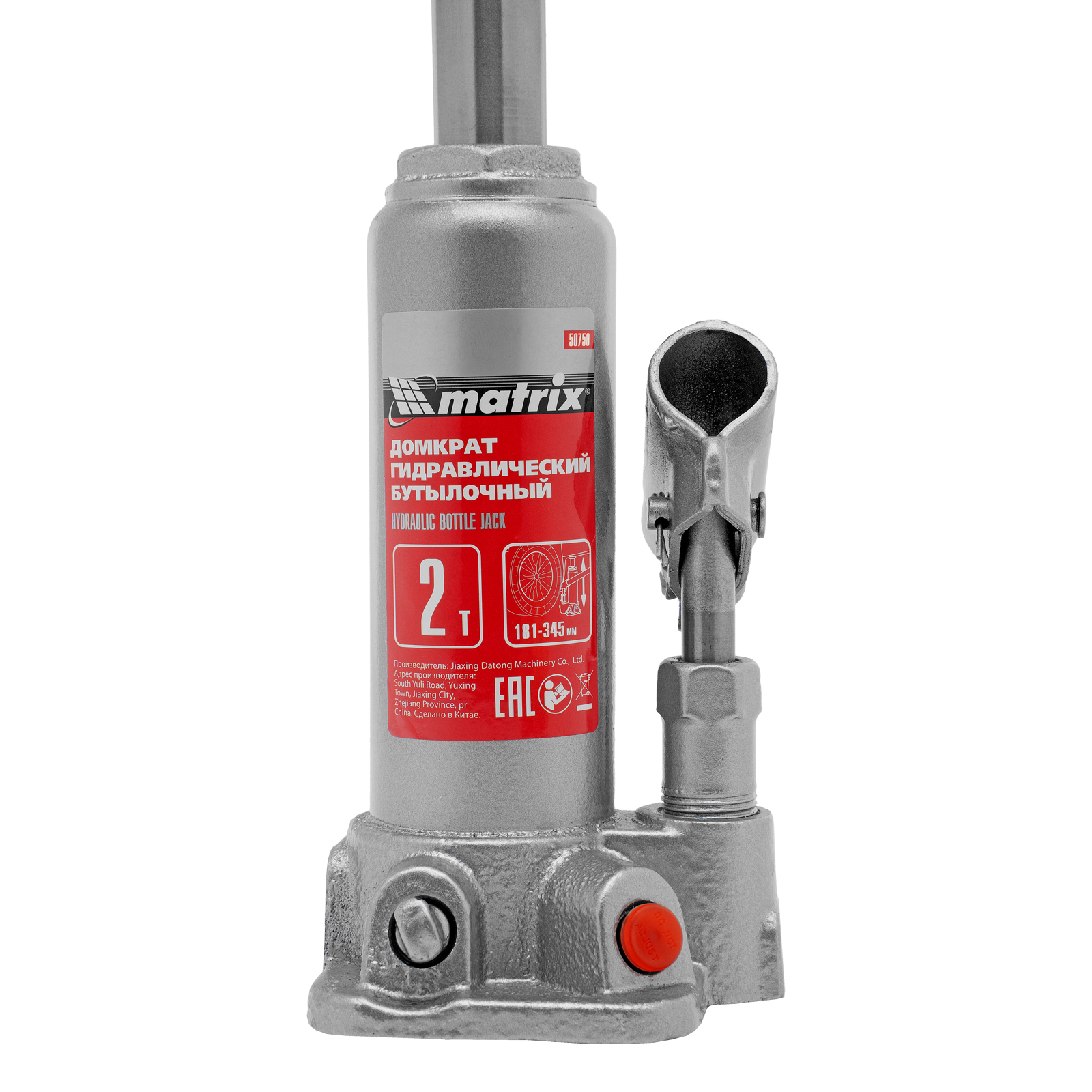 Домкрат гидравлический бутылочный, 2 т, высота подъема 181-345 мм, в пластиковый кейсе Matrix в Уфе